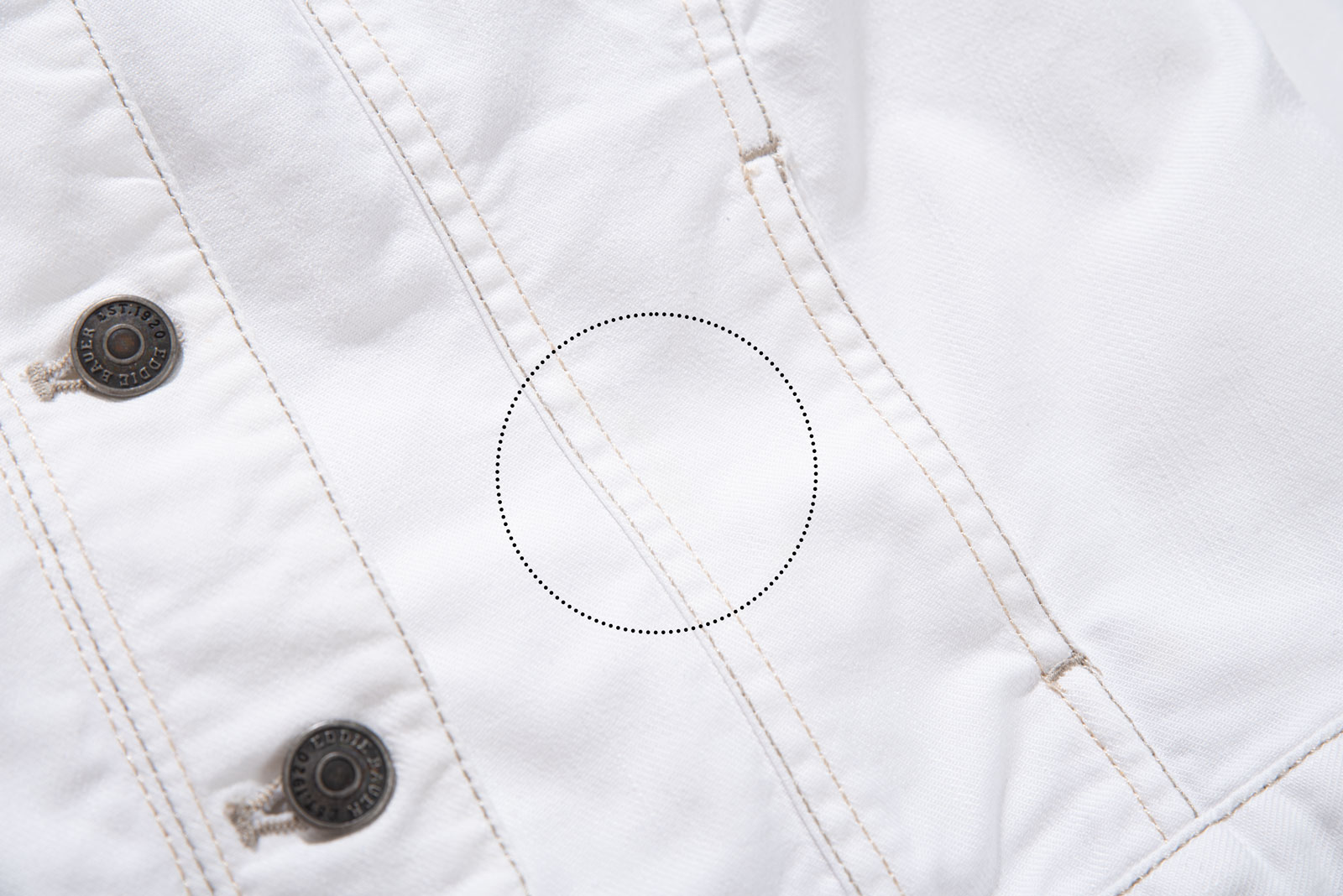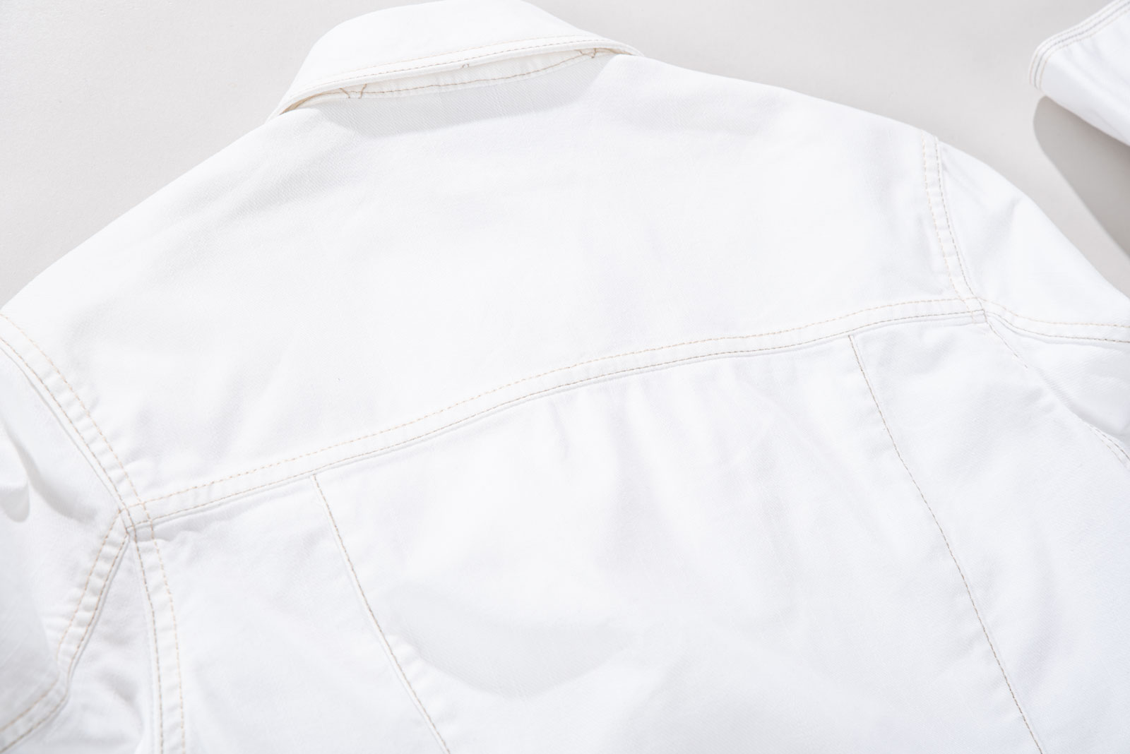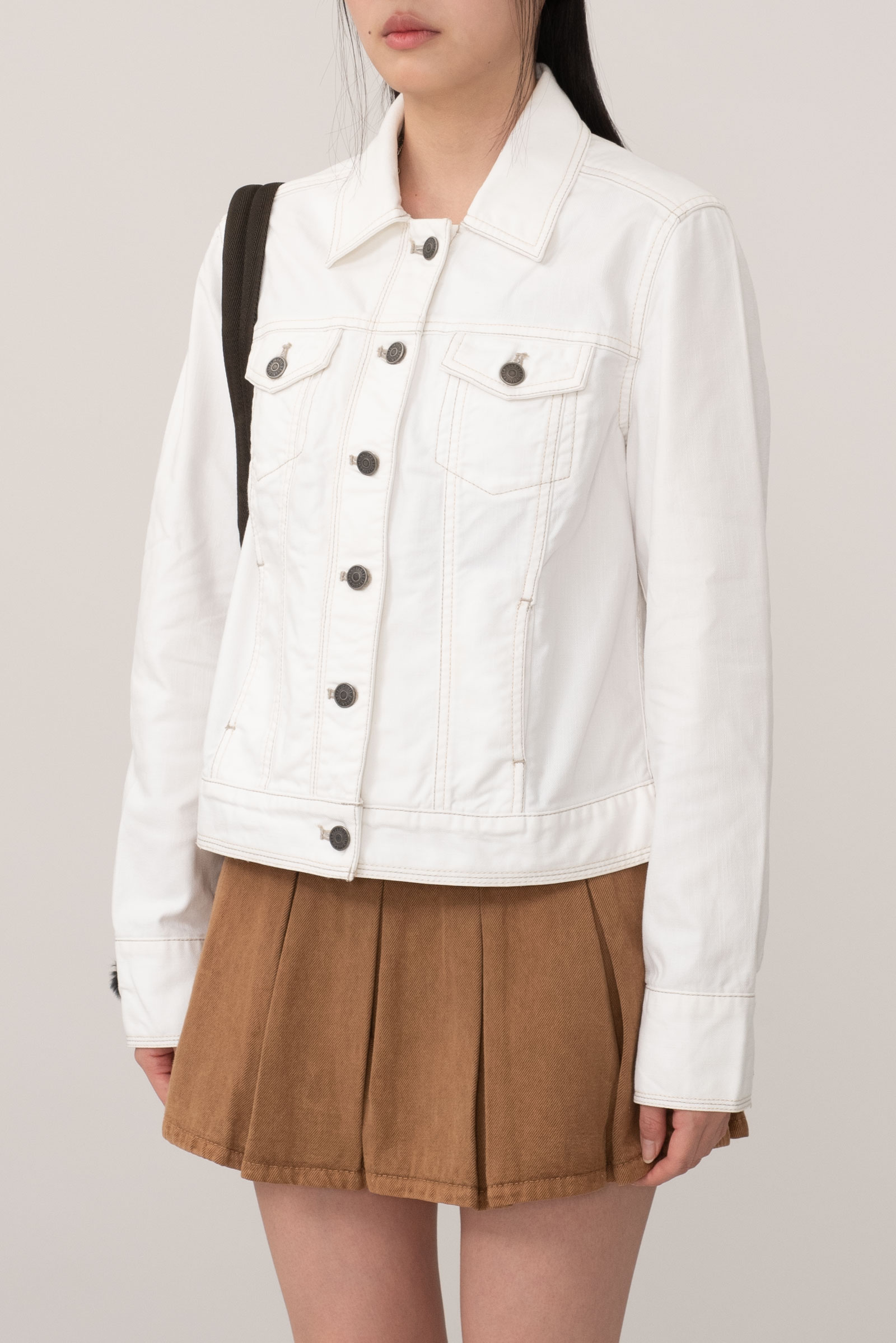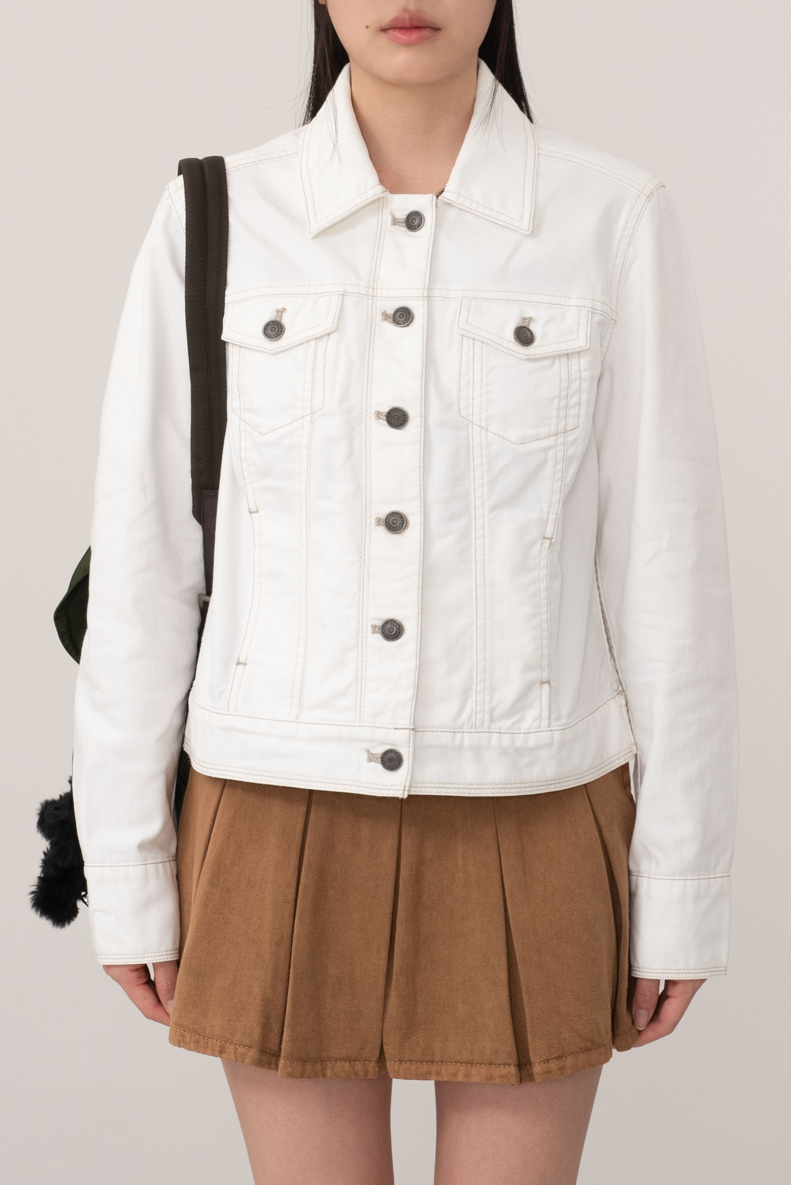 오늘 보여드리는 피스는 화이트 컬러 데님 재킷으로 다양하게 착용되는 제품이에요.