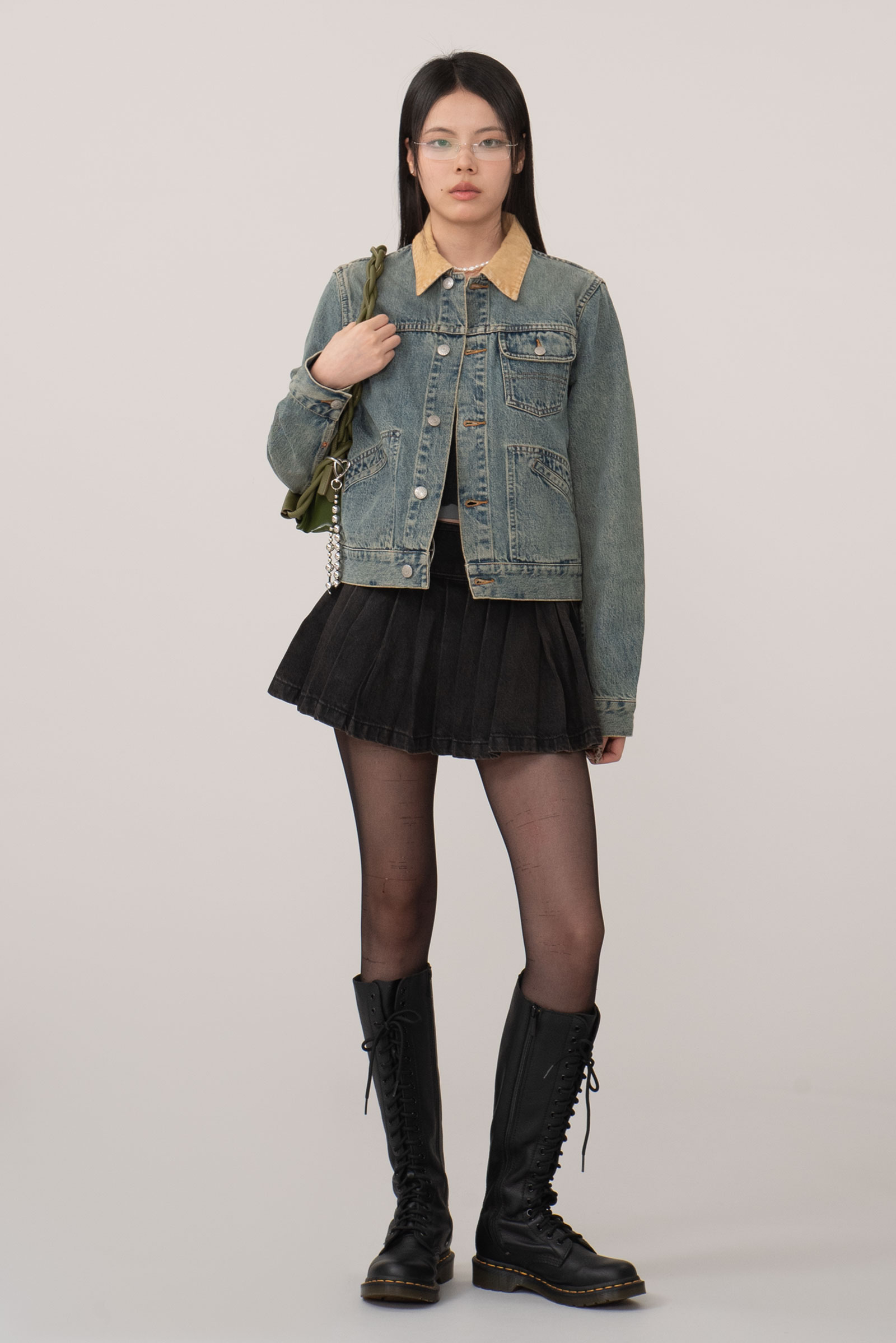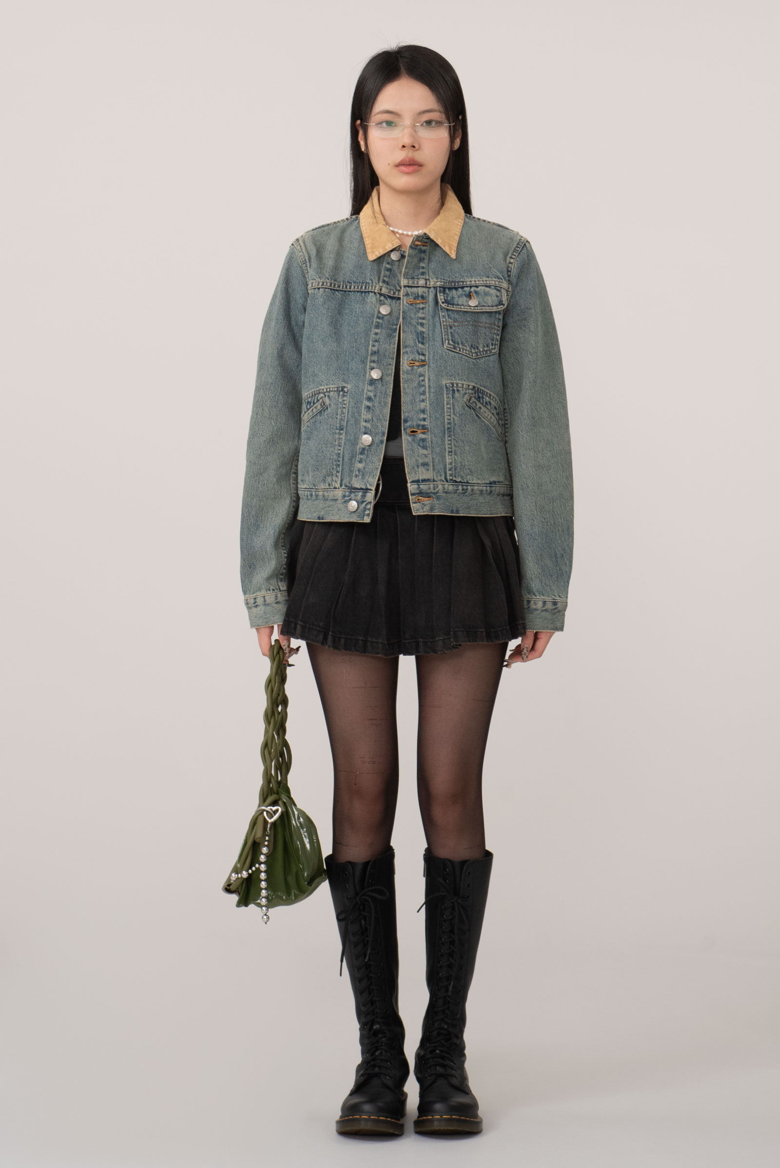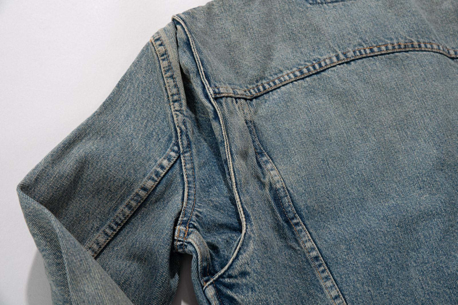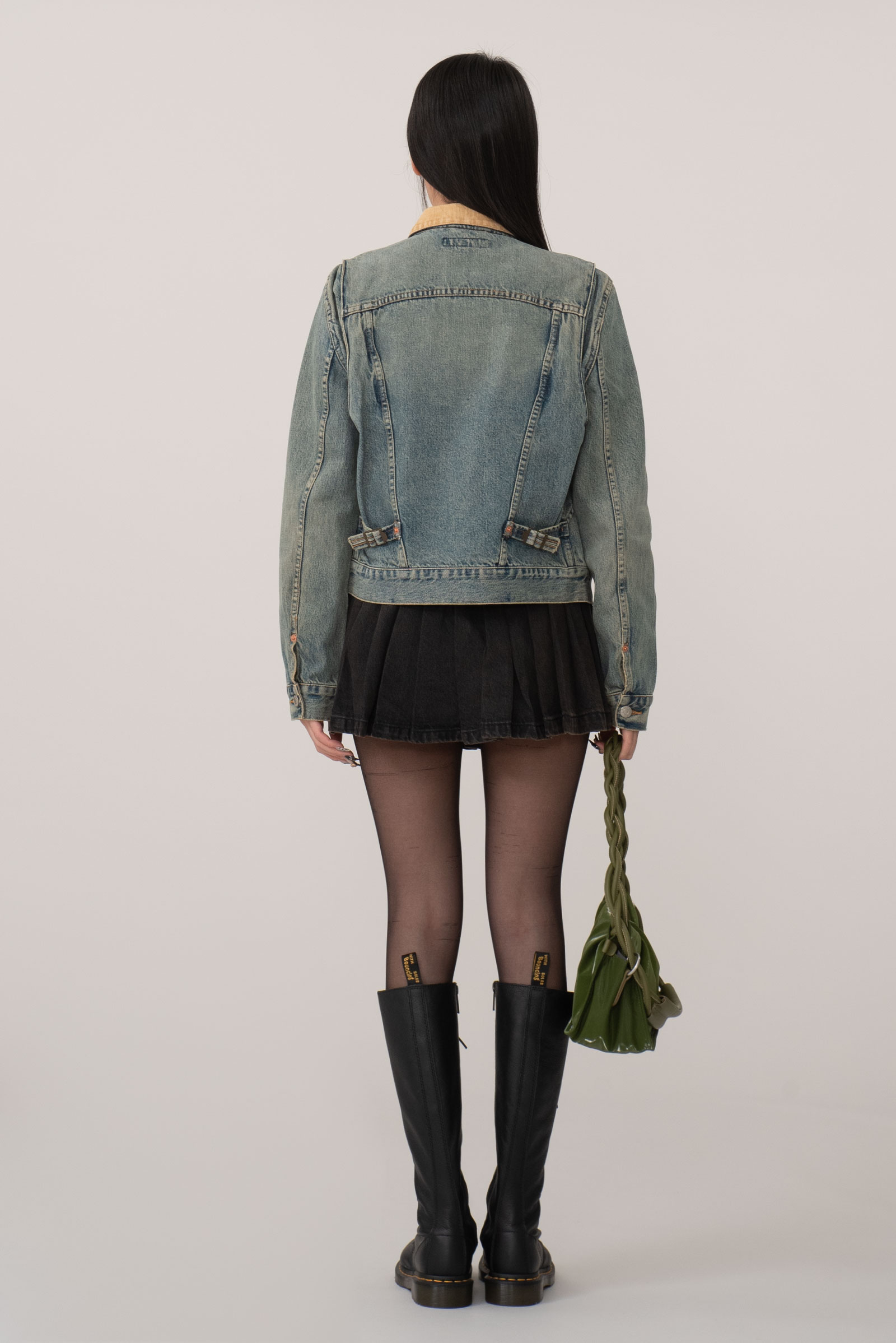 그을린 듯 에이징 된 컬러와 코듀로이 소재의 카라, 허리의 사이드 어저스트 등 재미있는 디테일이 눈에 띄며 1st 타입에 웨스턴 요소를 가미한 피스네요.