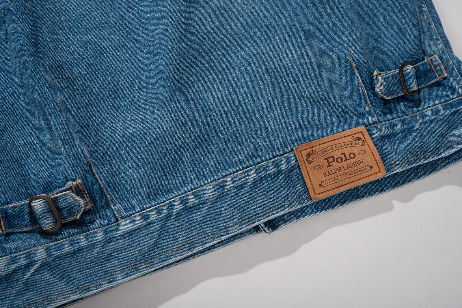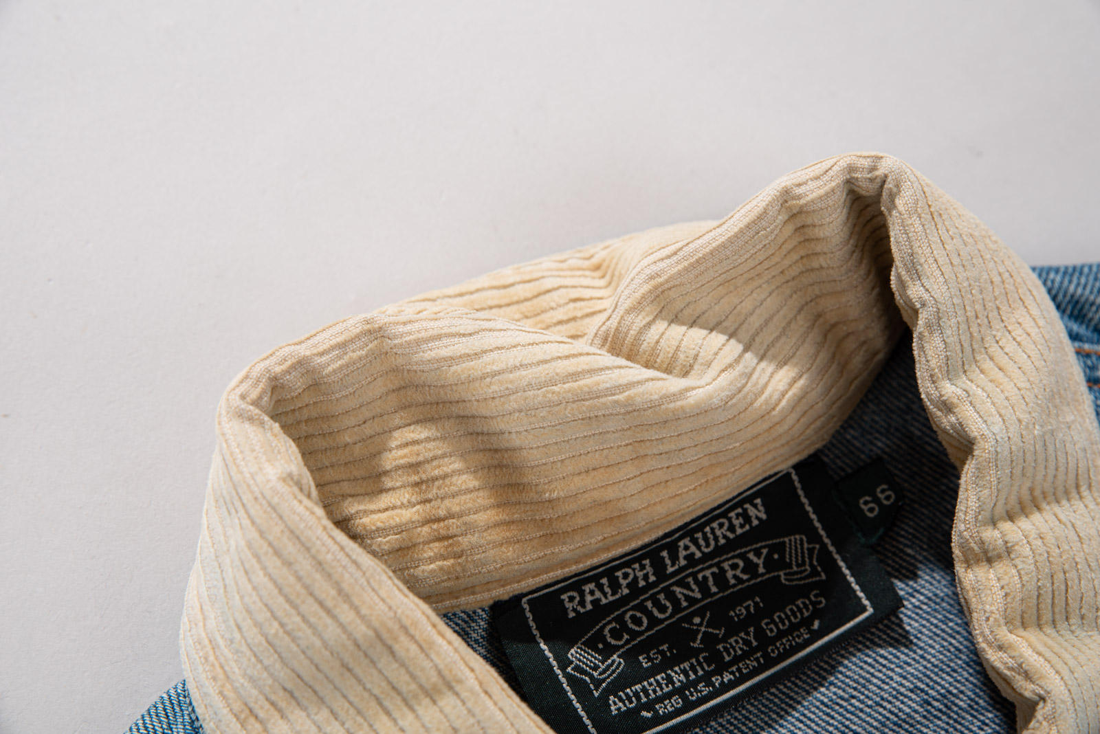 사진으로도 느껴지듯이 두툼하고 밀도 있는 데님 원단에 러프한 터치감, 워크 재킷의 특징인 코듀로이 카라와 가슴, 복부의 다양한 주머니, 후면의 사이즈 어저스트와 랄프로렌의 아이덴티티를 느낄 수 있는 가죽 택 등 입으며 즐길 거리가 다양한 재킷이랍니다.