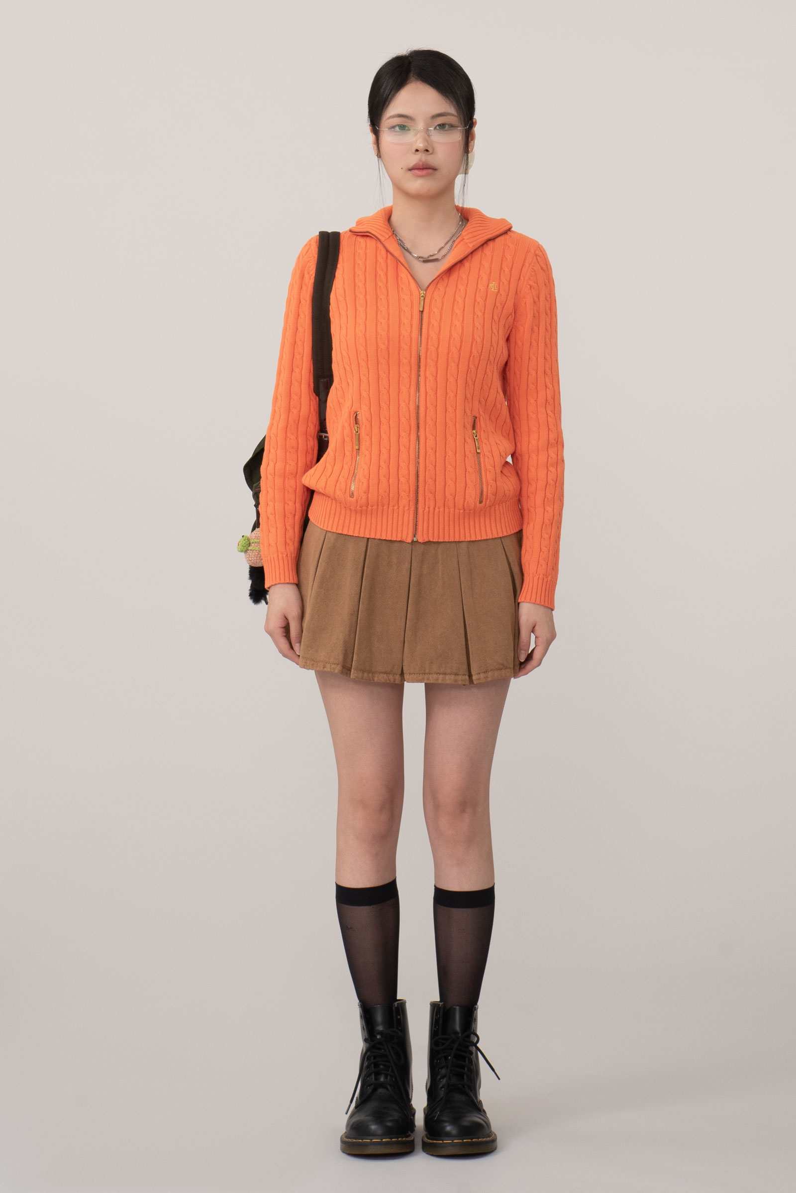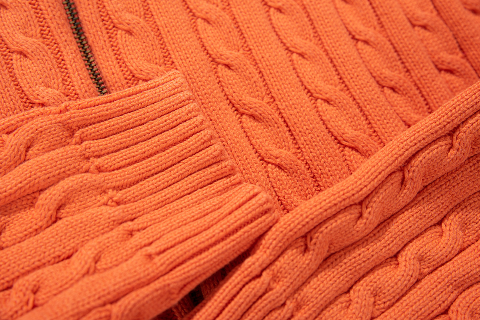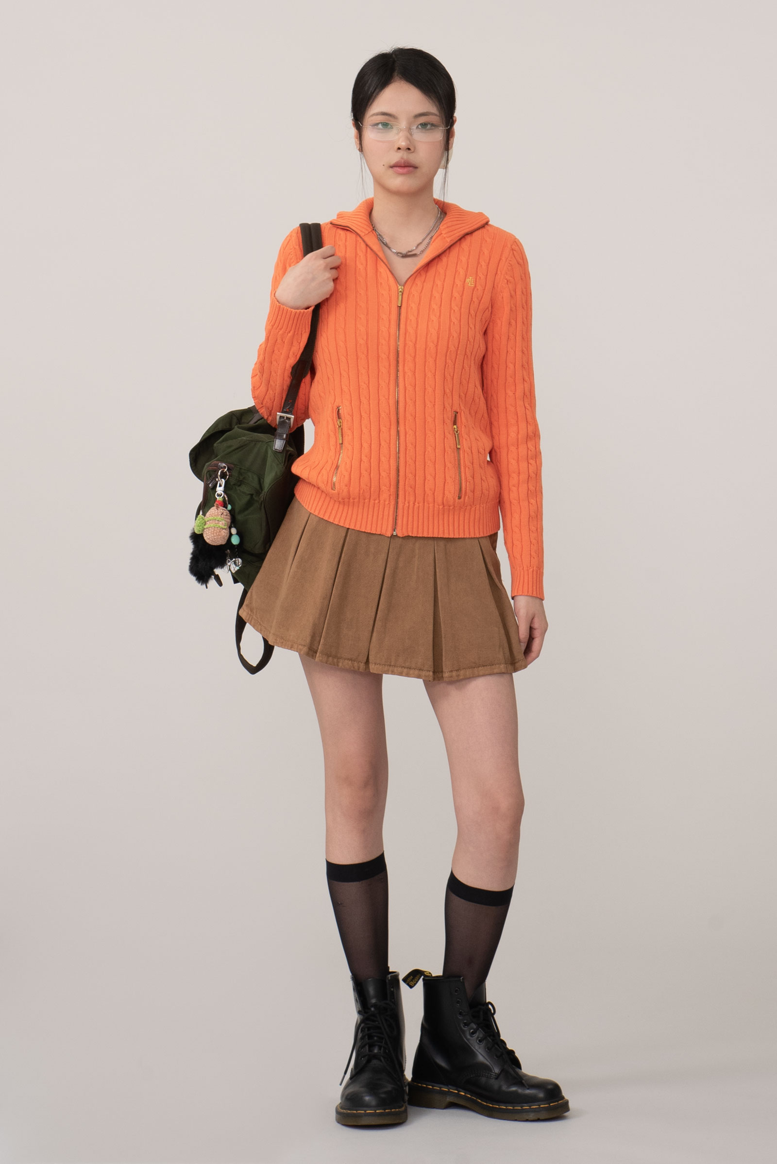탄탄한 코튼으로 짜여진 케이블 패턴과 전면의 자수가 눈에 띄네요.