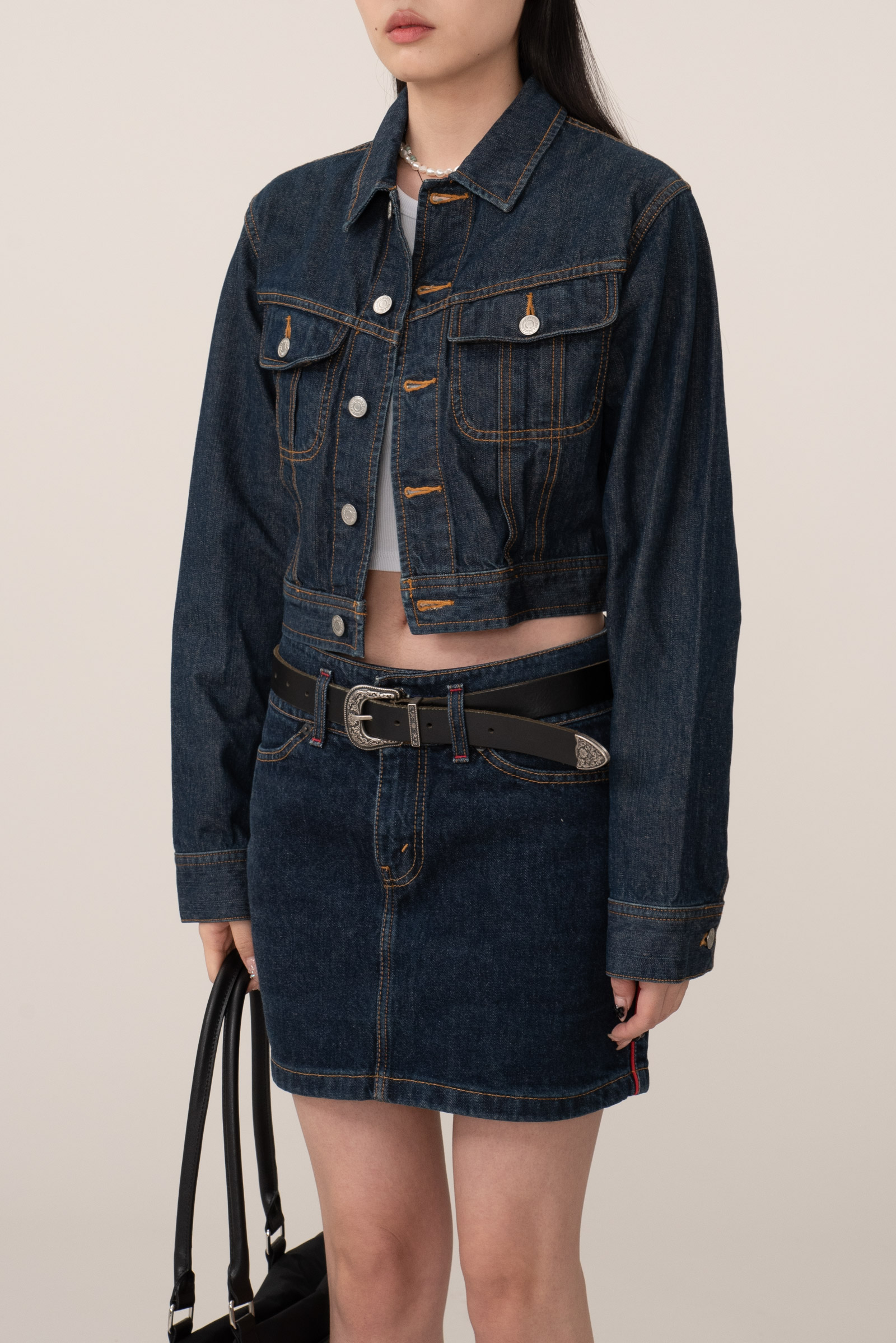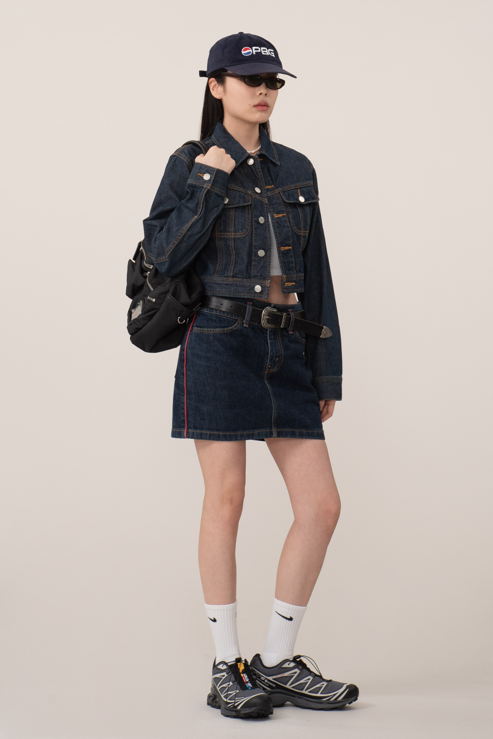 여유있는 소매와 대비되는 숏한 크롭 기장, 전면의 귀여운 가슴 포켓과 후면 가죽 탭까지.