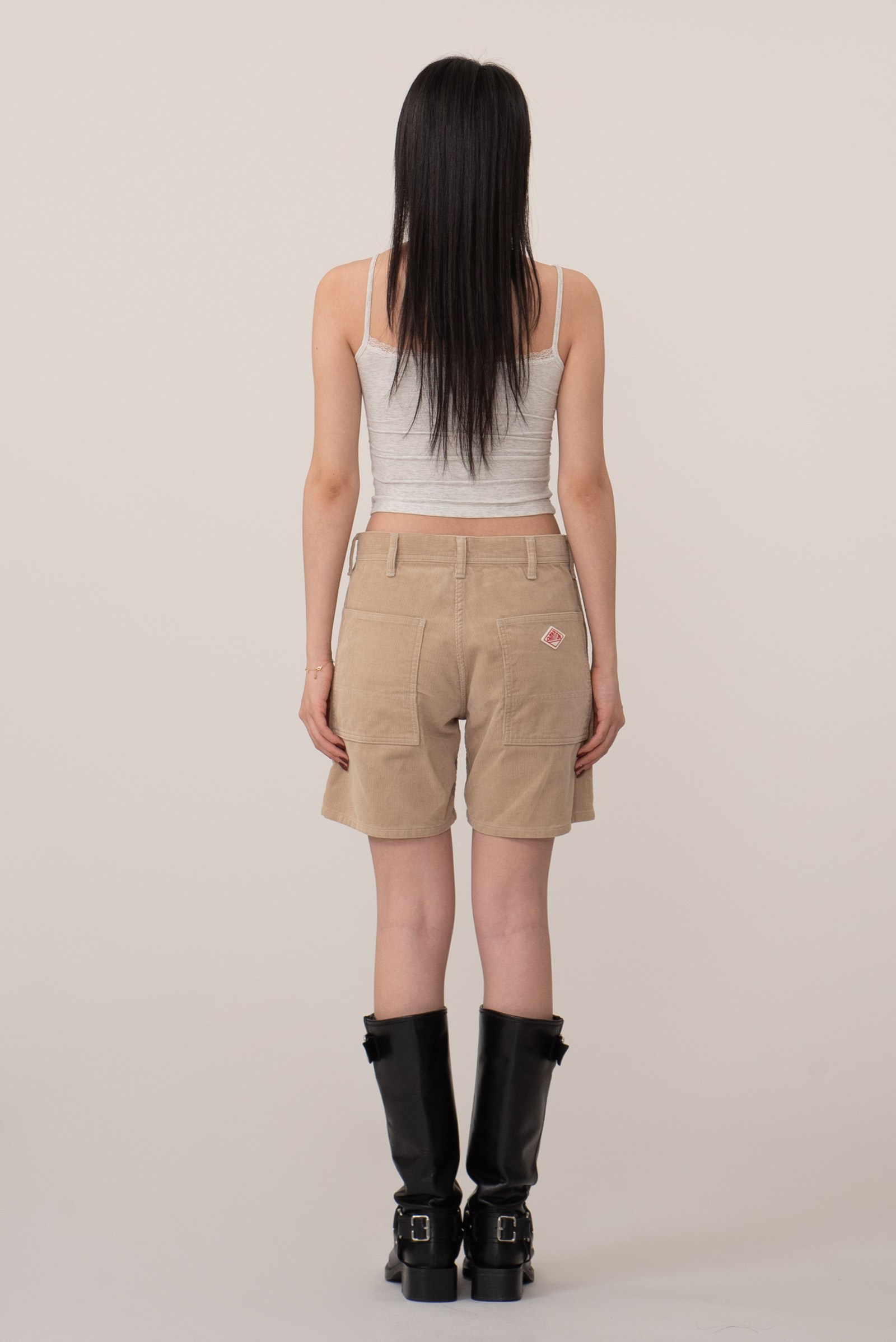 가을, 겨울 시즌 착용하기 좋은 골덴 소재 반바지인데 일본에서 제작, 잔잔한 골의 골덴이 가진 특유의 따뜻한 질감과 베이지 컬러가 자연스럽게 어우러진 피스랍니다.