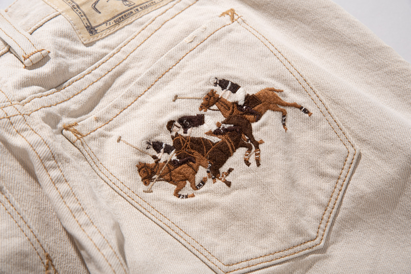 백 포켓의 커다란 자수, RL 각인 리벳 등 브랜드 특유의 디테일이 더해져 클래식하면서도 고급스러운 미국식 헤리티지를 보여주는 아이템이랍니다.