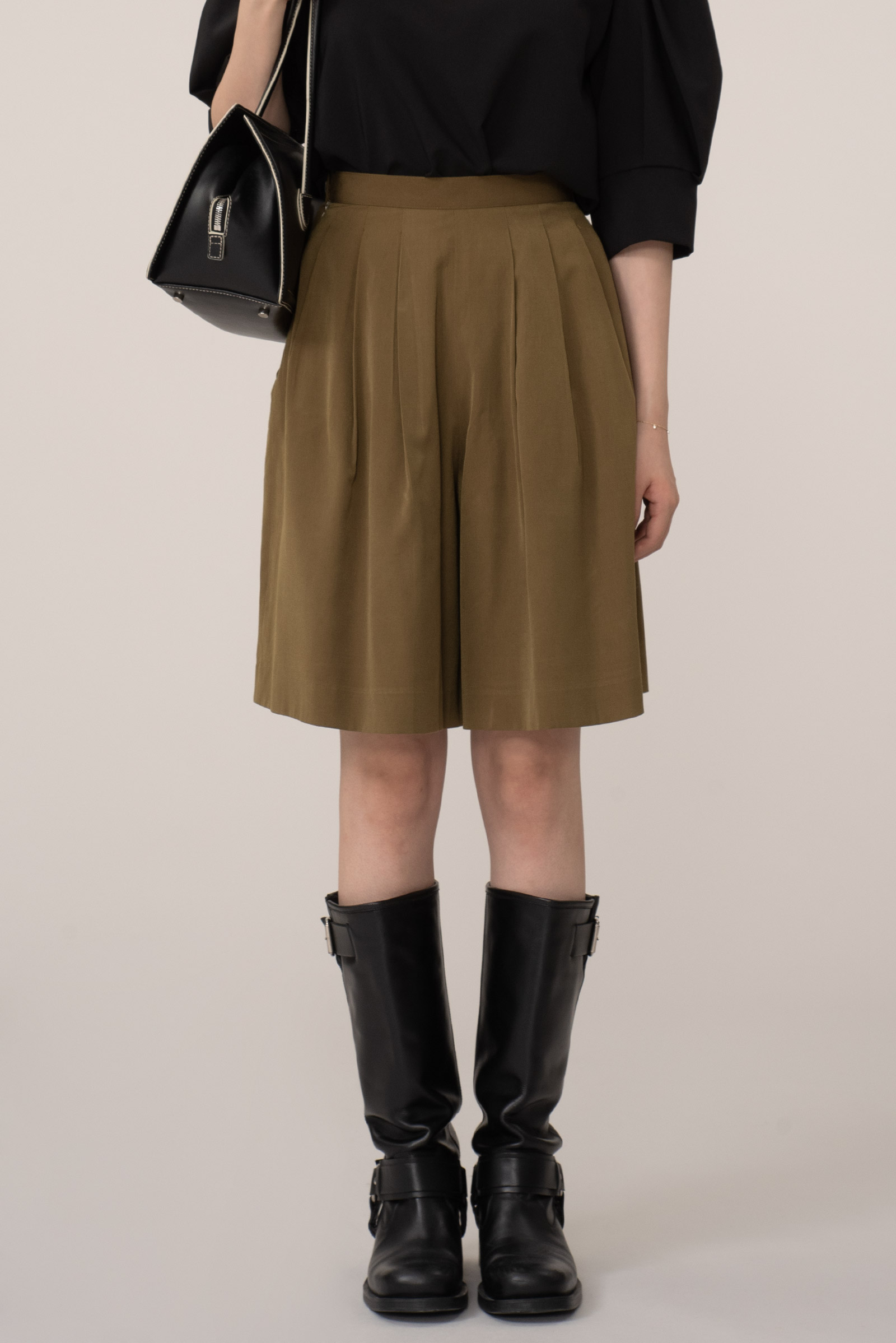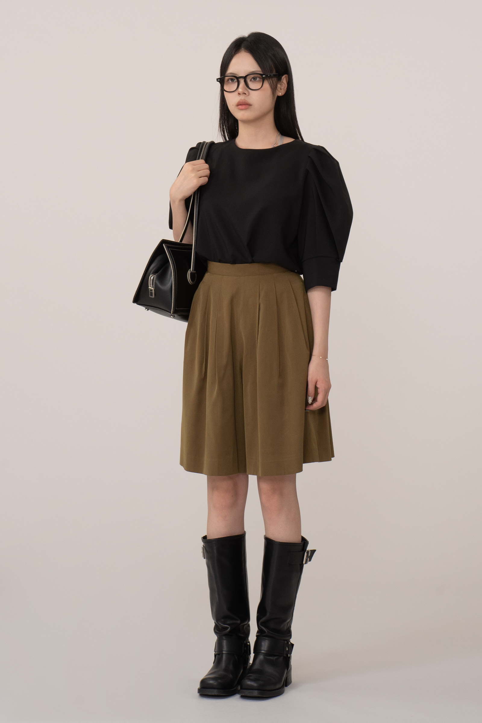 밑위가 넉넉한 하이웨이스트 디자인, 가벼운 소재로 편안한 착용감과 투턱 주름이 매력적인 피스랍니다.
