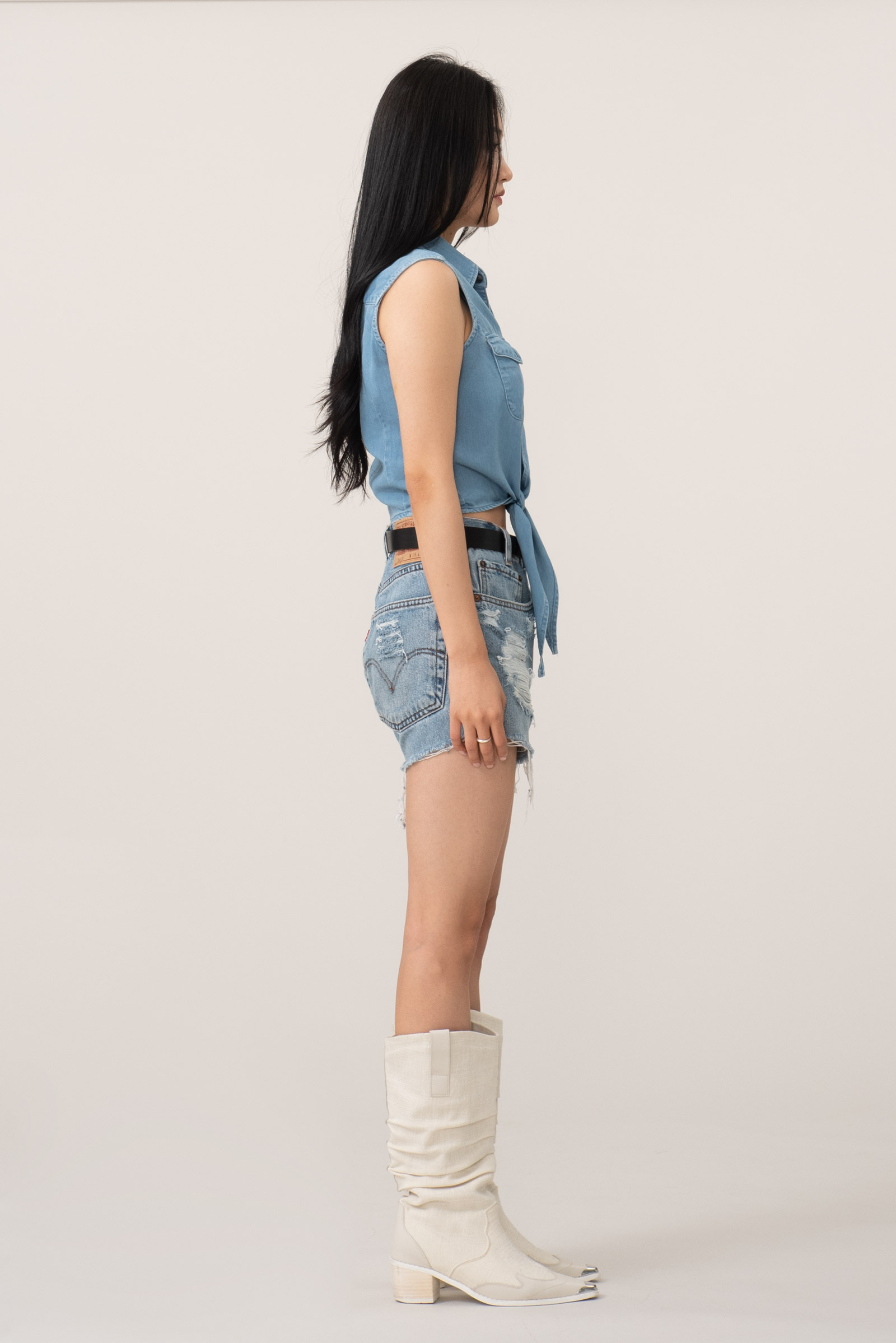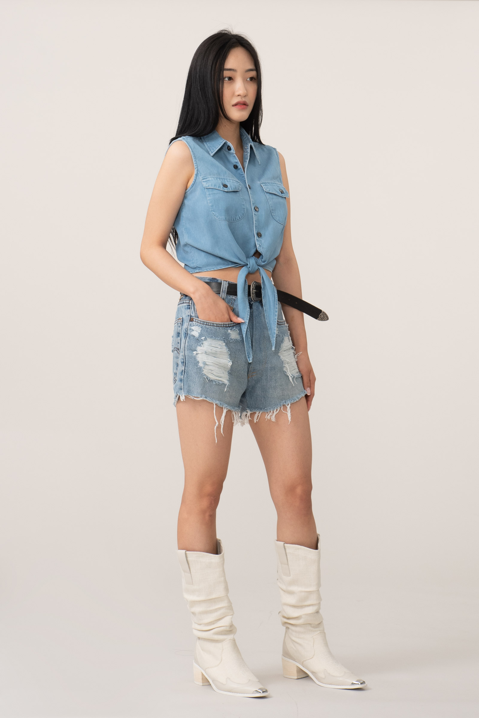 밑단을 묶어 연출하는 제품이라 비치웨어로도 좋고 여러모로 쓰임이 다양합니다.