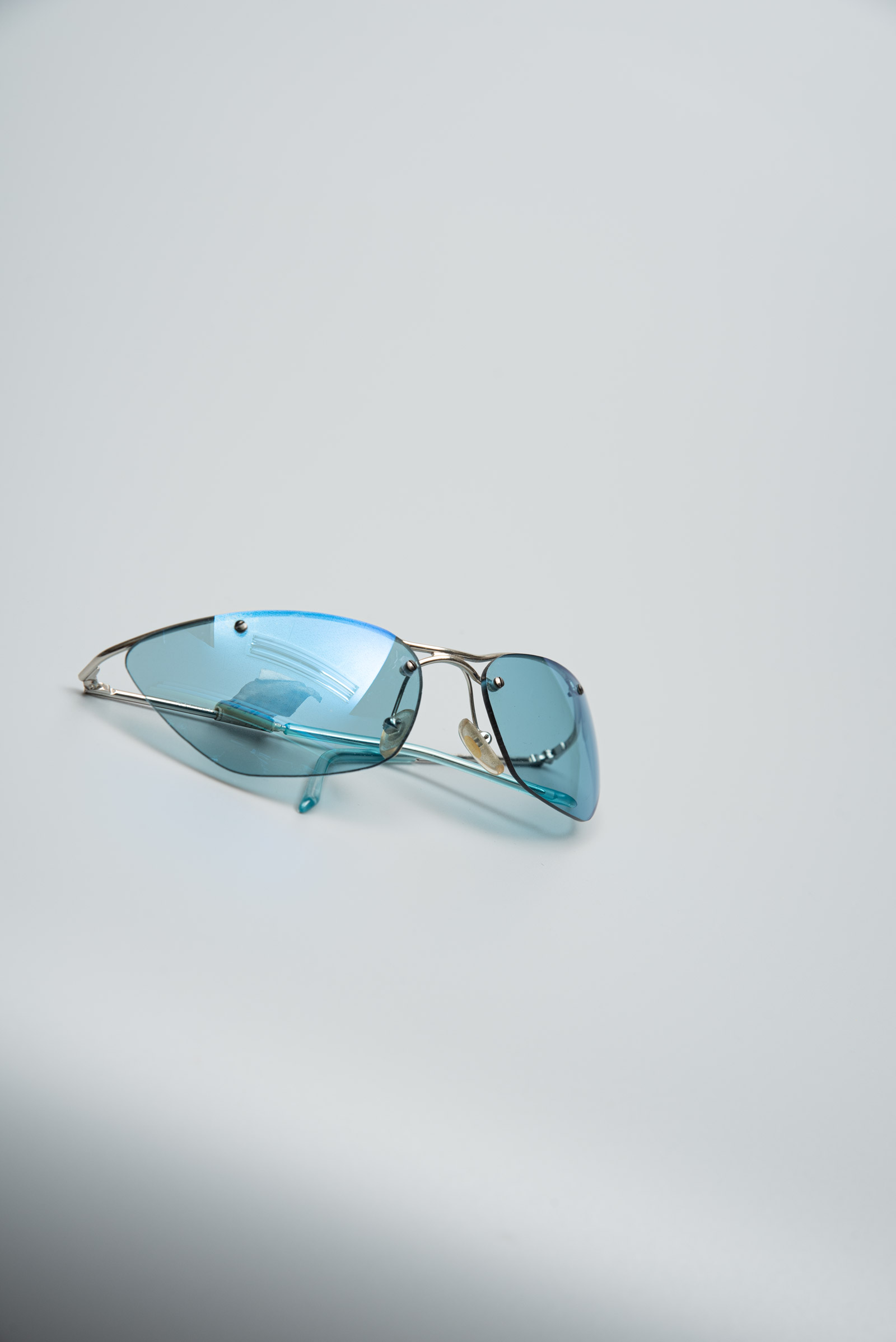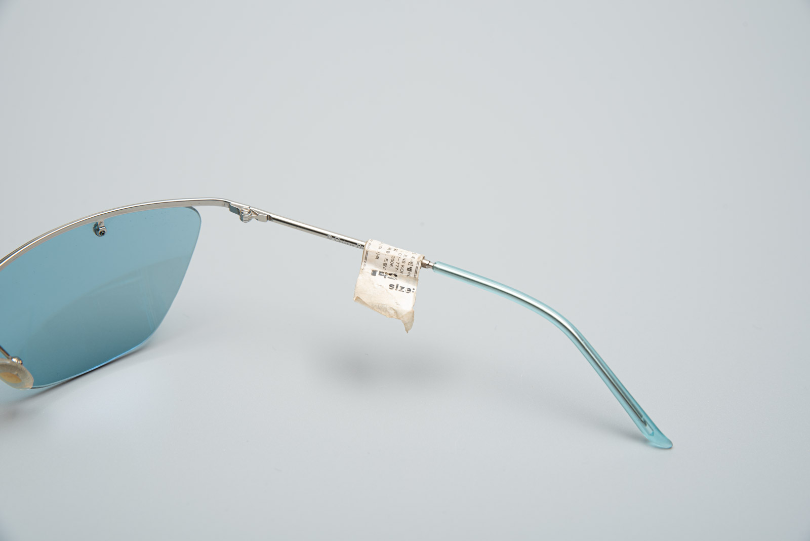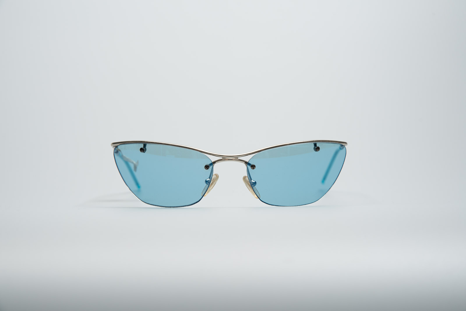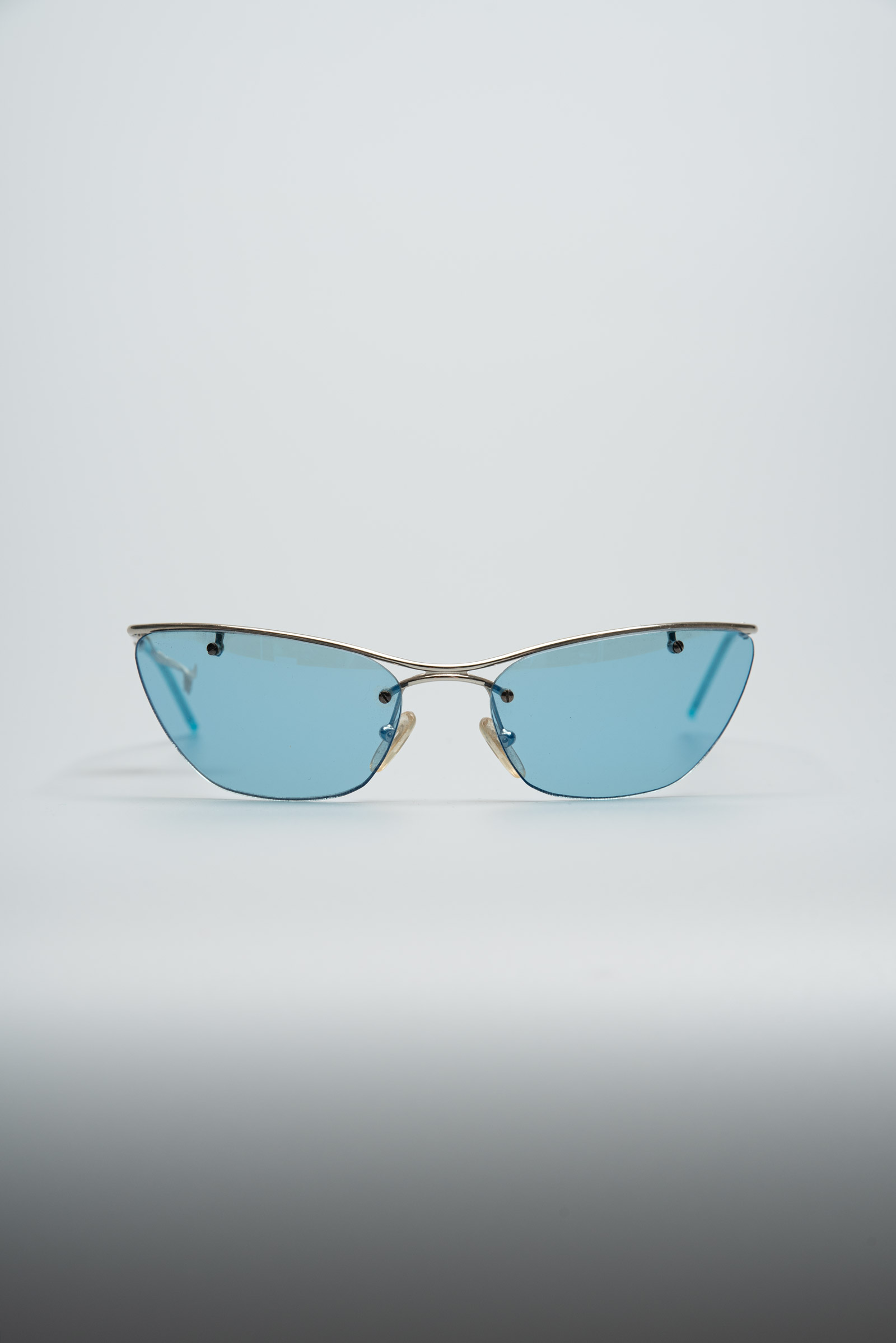 실버 컬러의 프레임이 윗부분만 있는 무테 렌즈와 컬러감이 일품이네요.