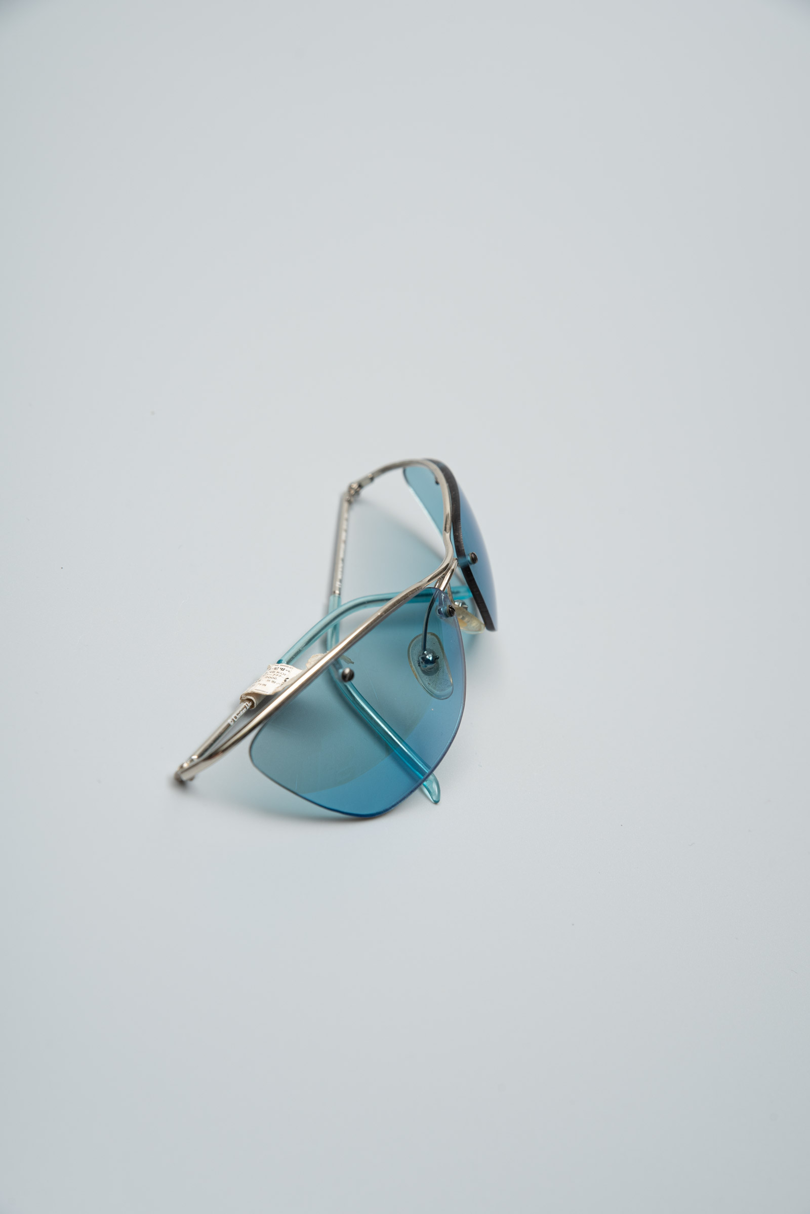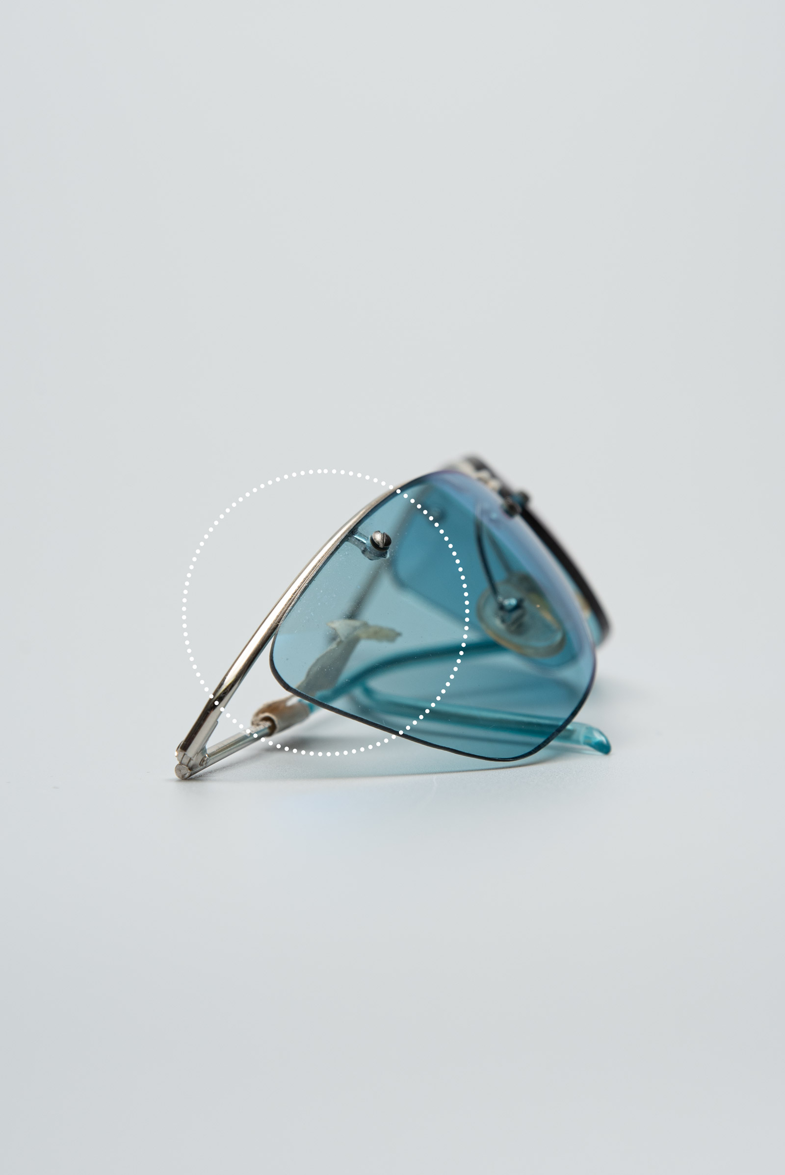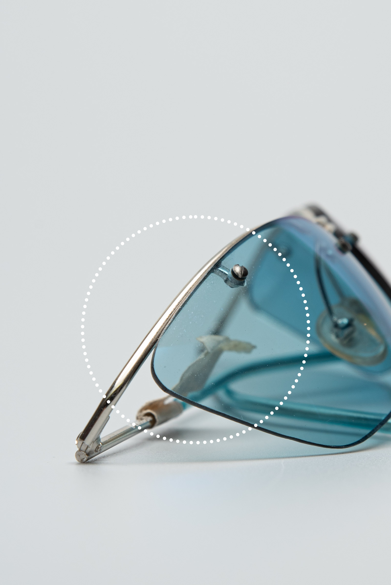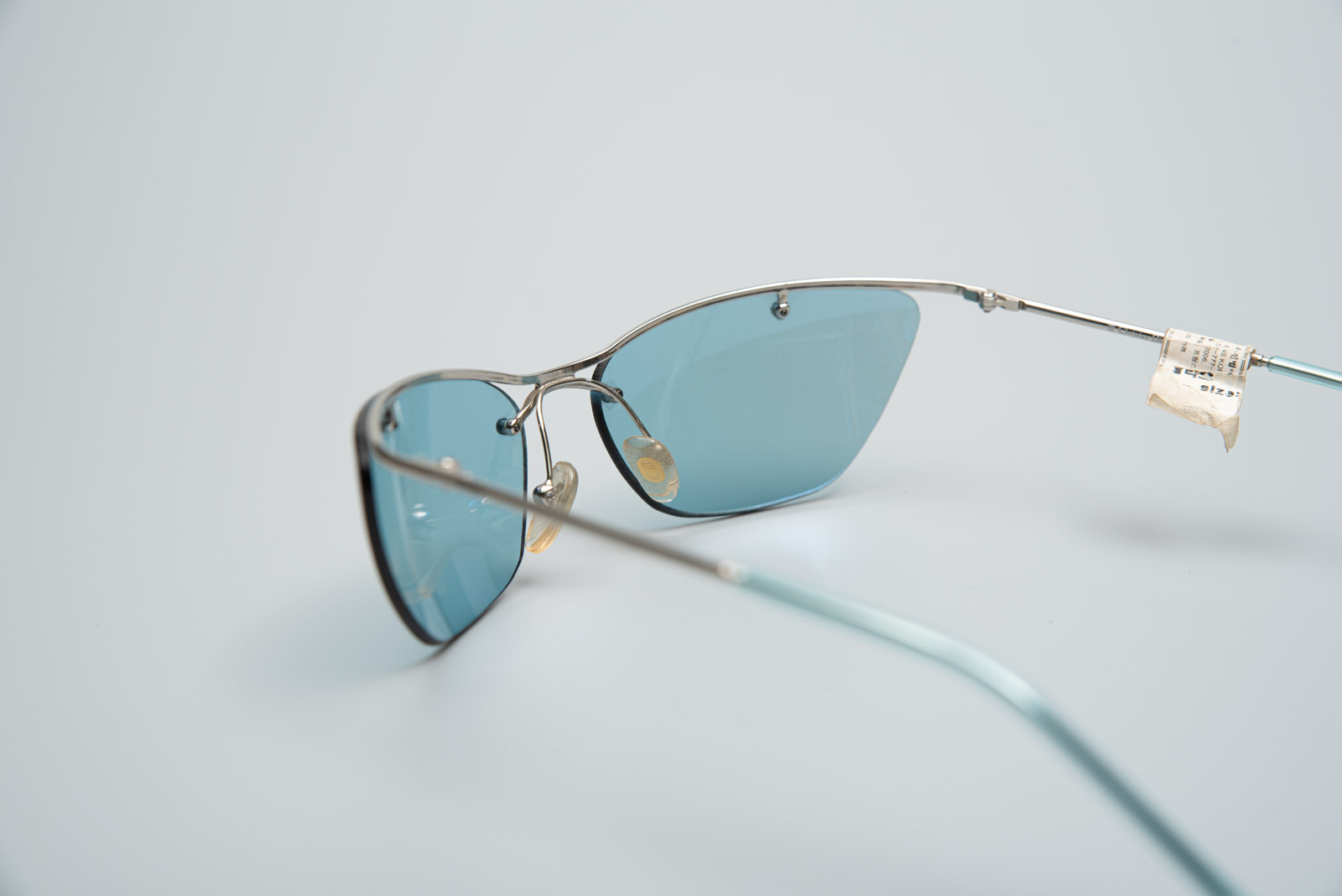 실버 컬러의 프레임이 윗부분만 있는 무테 렌즈와 컬러감이 일품이네요.