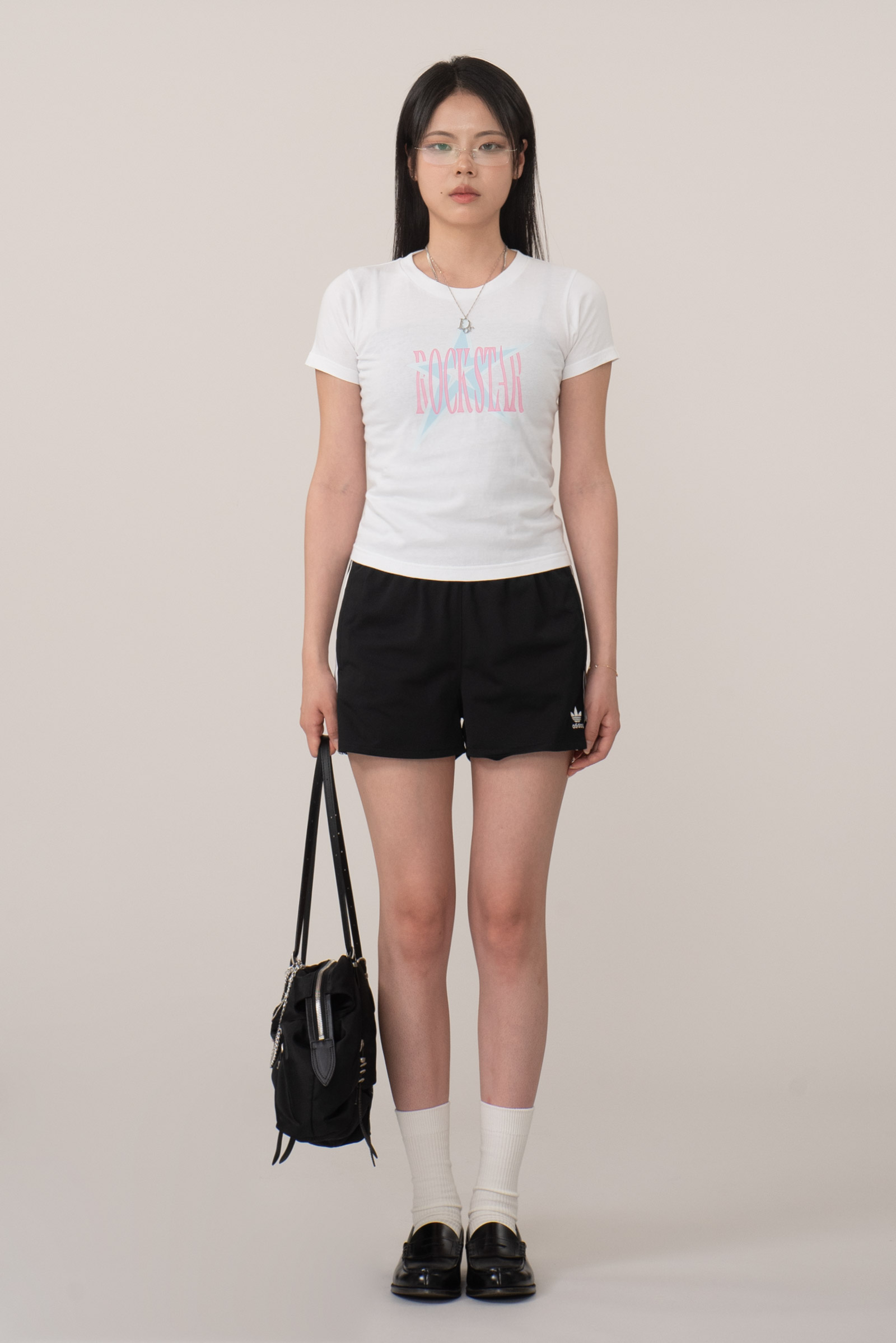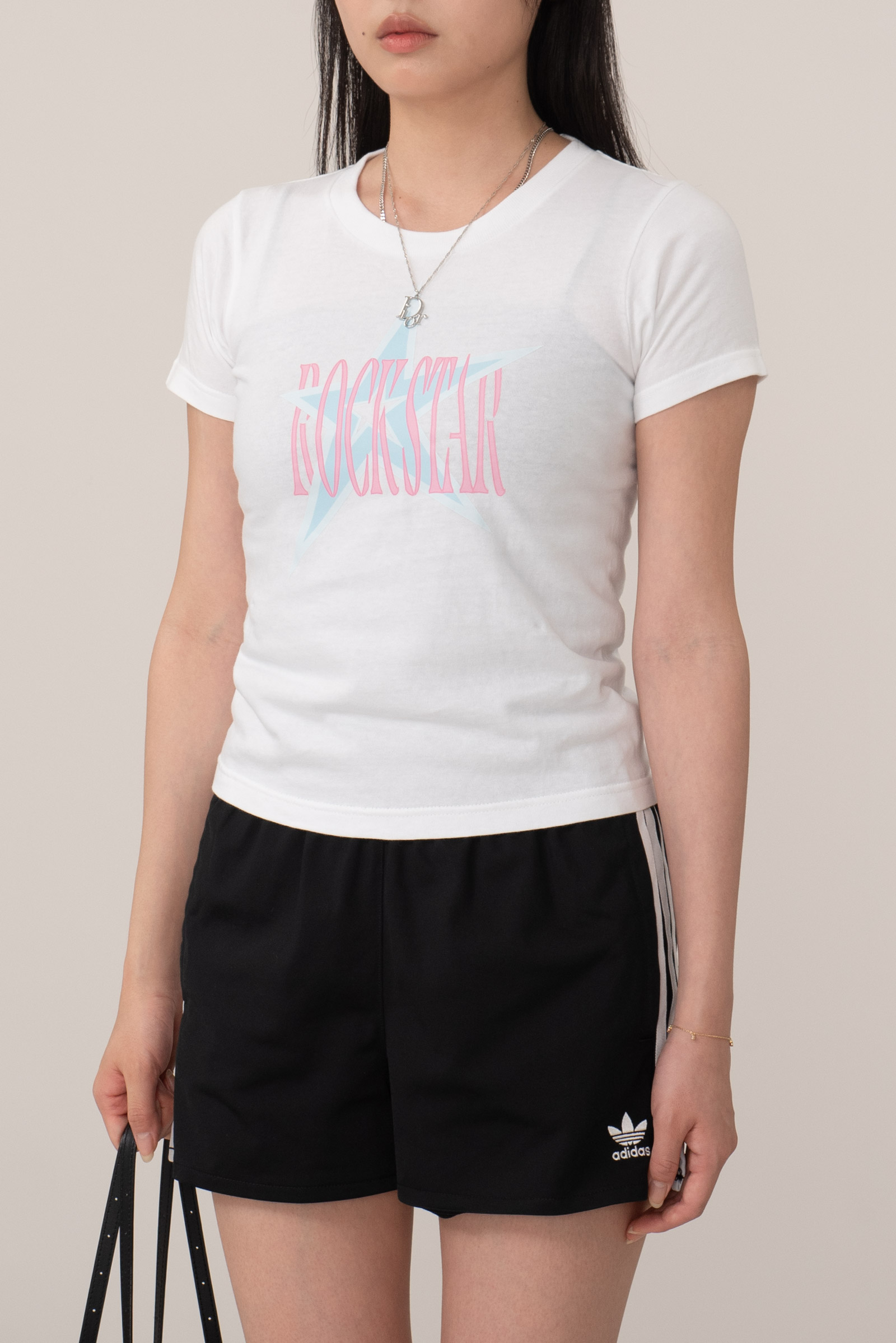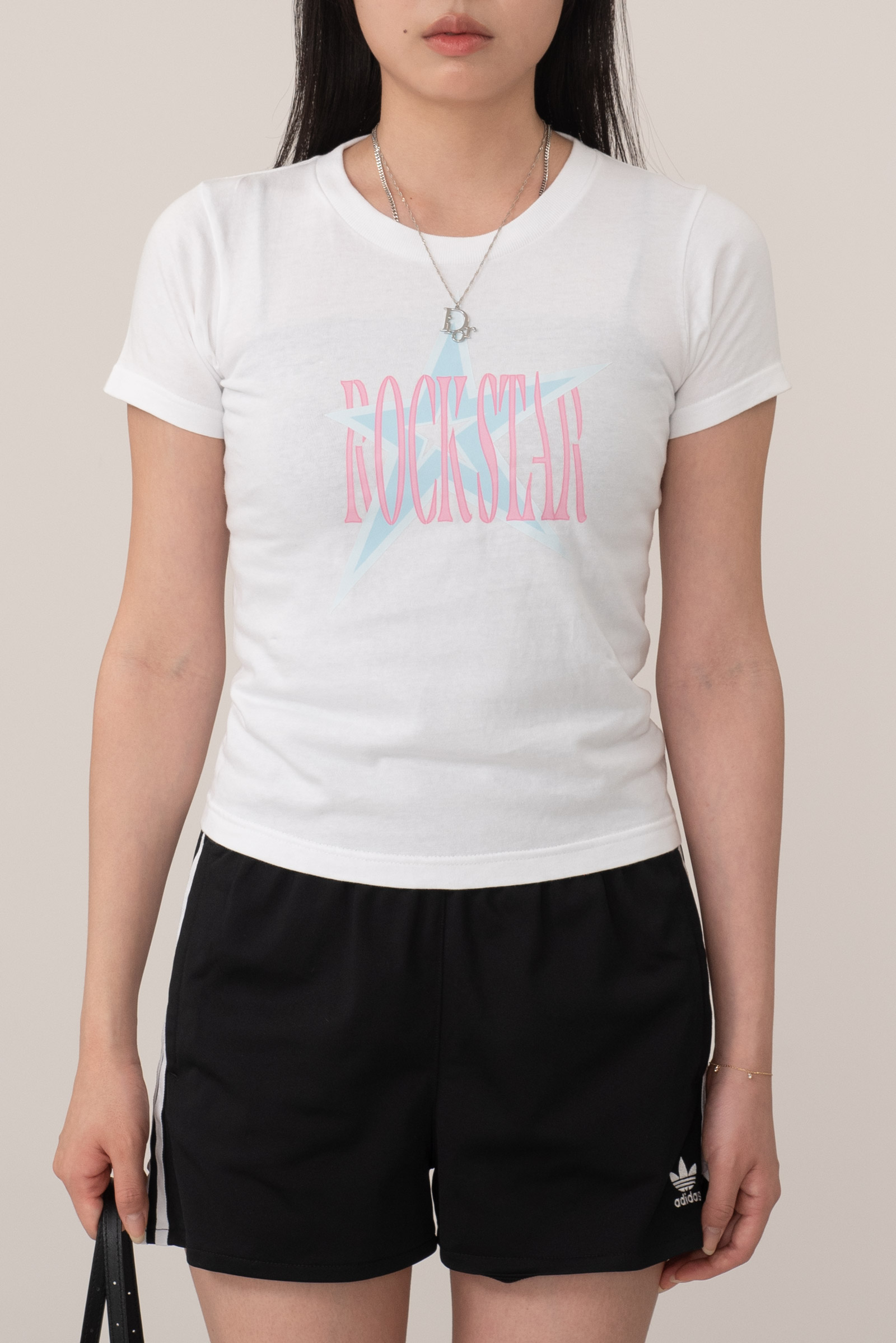 배꼽을 가리는 세미 크롭, 딱 살 많은 팔뚝에서 끝나는 소매 실루엣이라 보정 효과도 있고요.