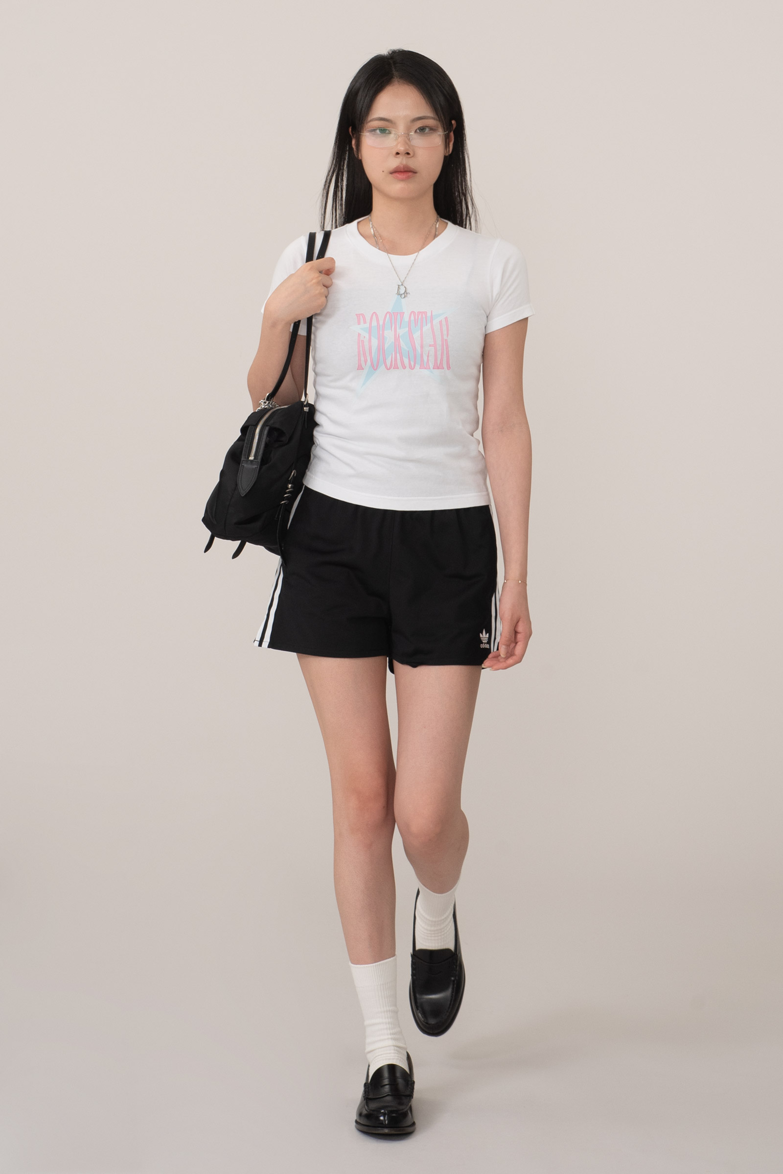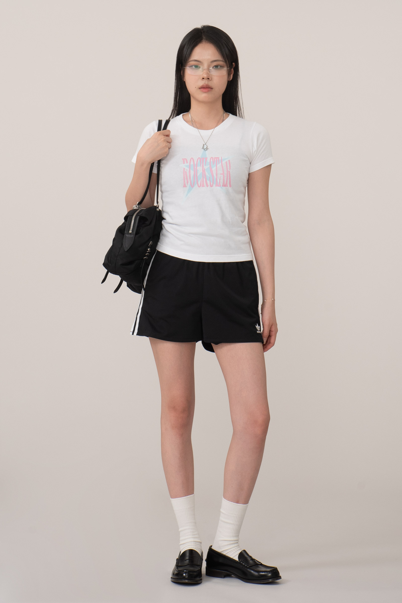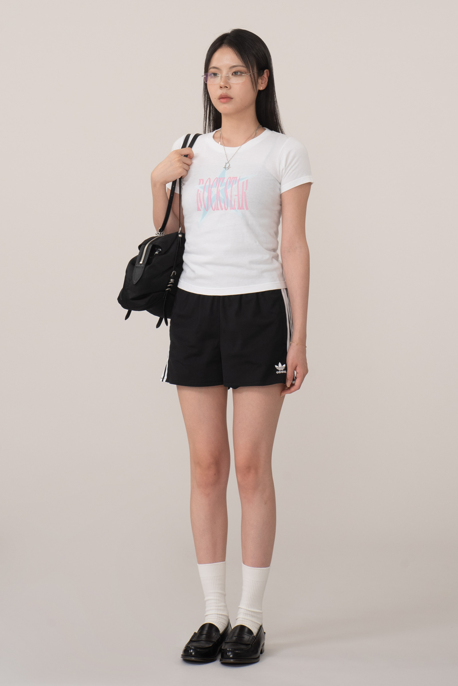 배꼽을 가리는 세미 크롭, 딱 살 많은 팔뚝에서 끝나는 소매 실루엣이라 보정 효과도 있고요.
