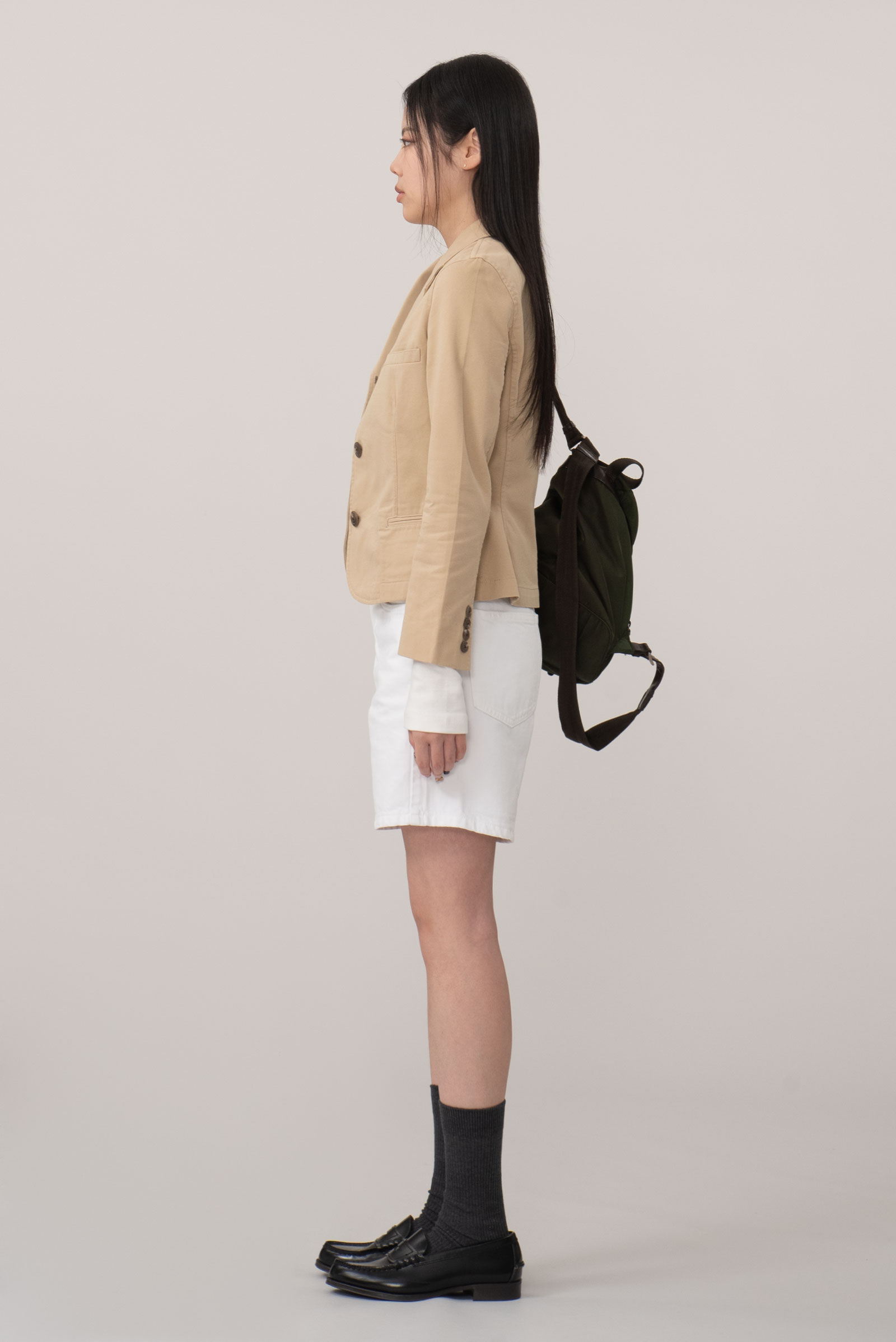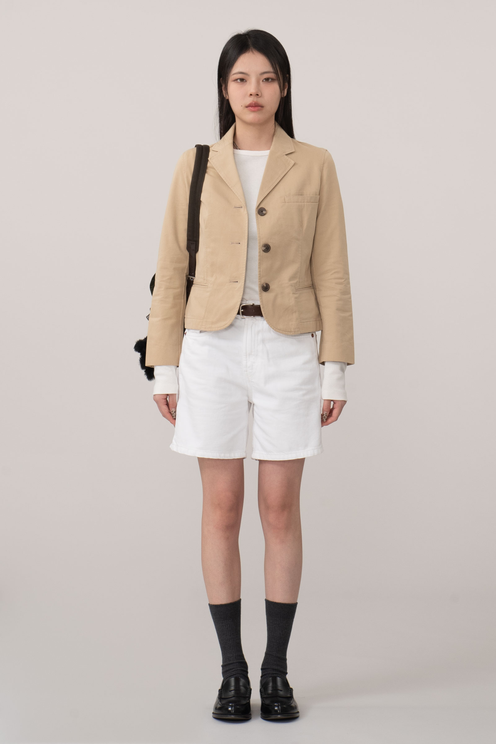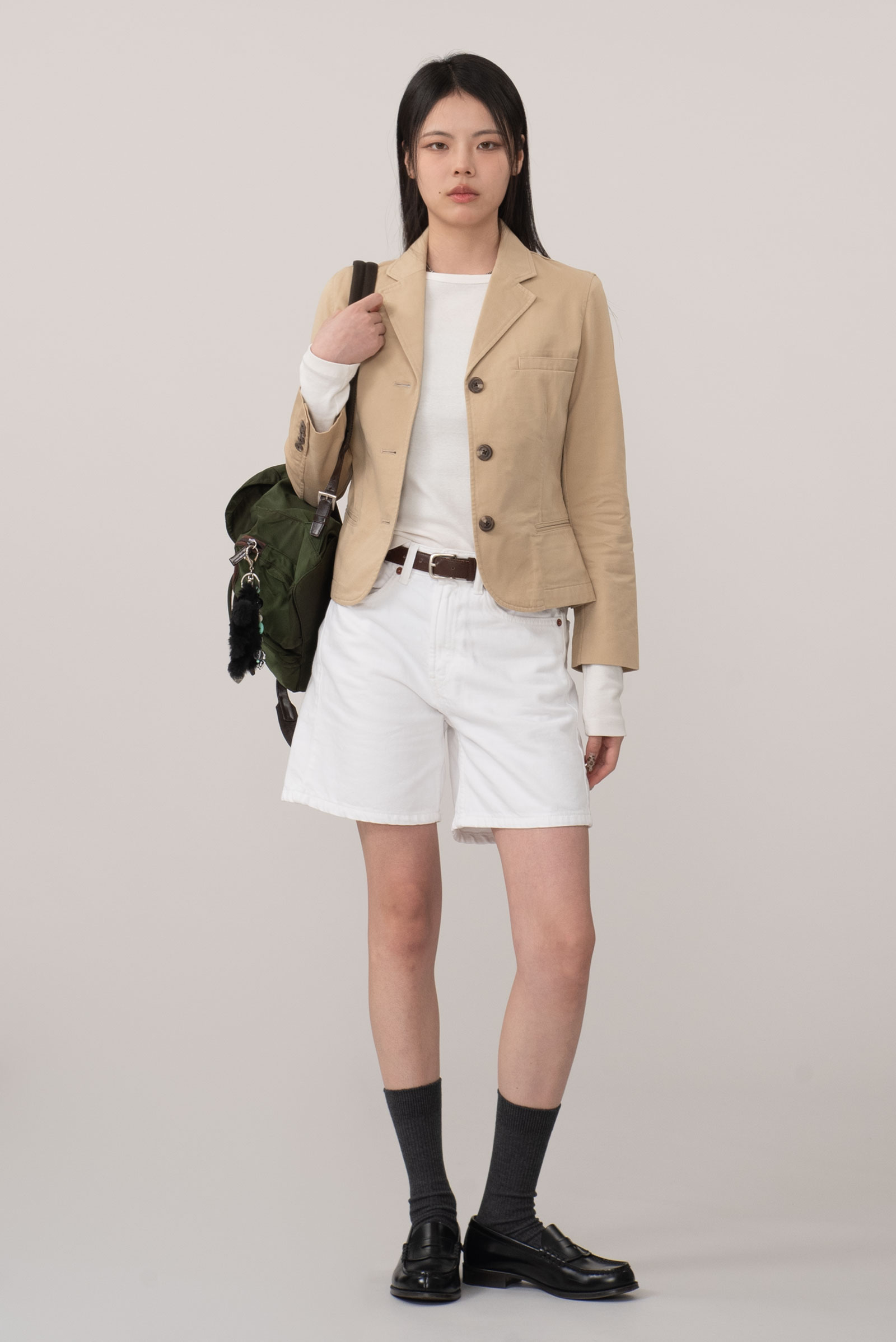 베이지 컬러에 크게 눈에 띄는 구석 없이 클래식하고 심플한 실루엣, 전반적인 밸런스에서 약간은 숏한 기장감으로 다리가 길어 보이는 효과가 있답니다.