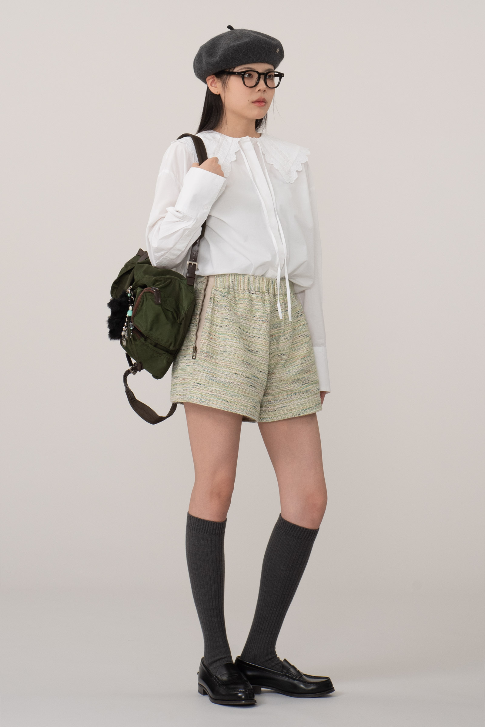 ▫comment - 은은한 반짝이 실사가 들어간 랑방 트위드 반바지입니다.