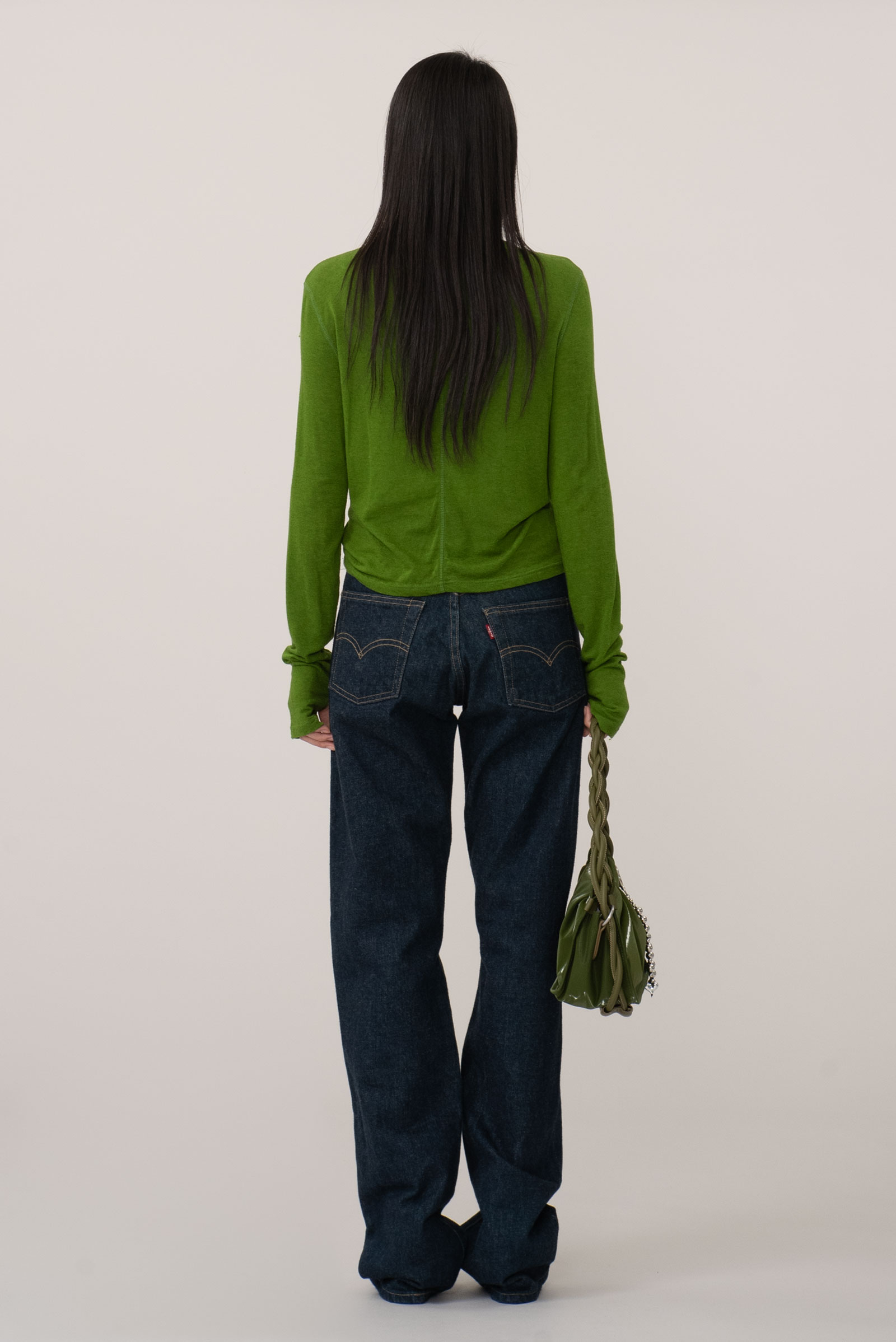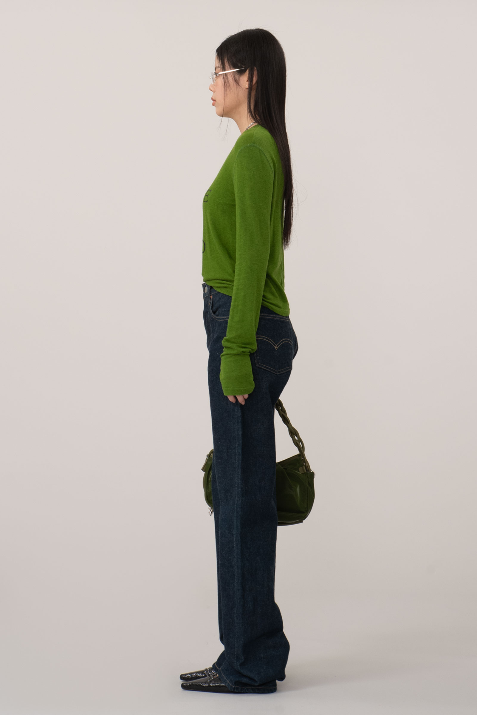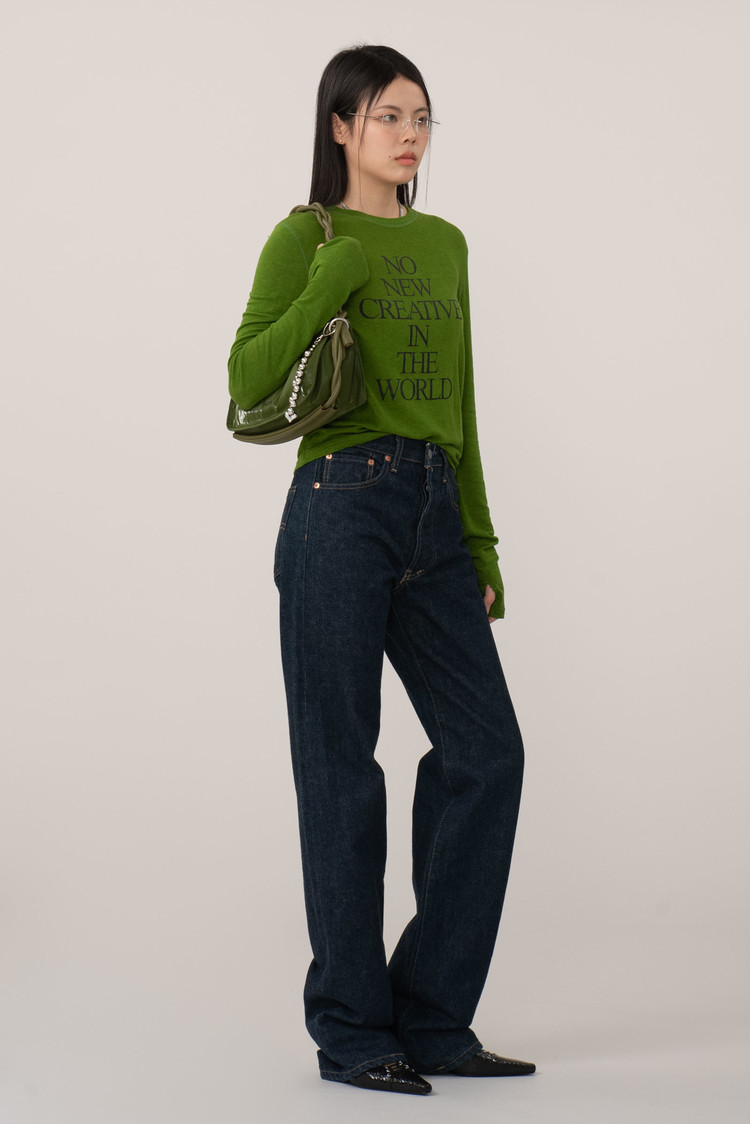 워싱 없는 진청 컬러에 밑단 닳음도 없네요.