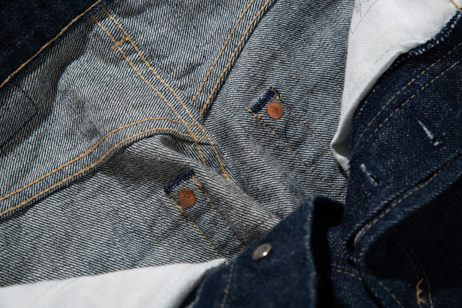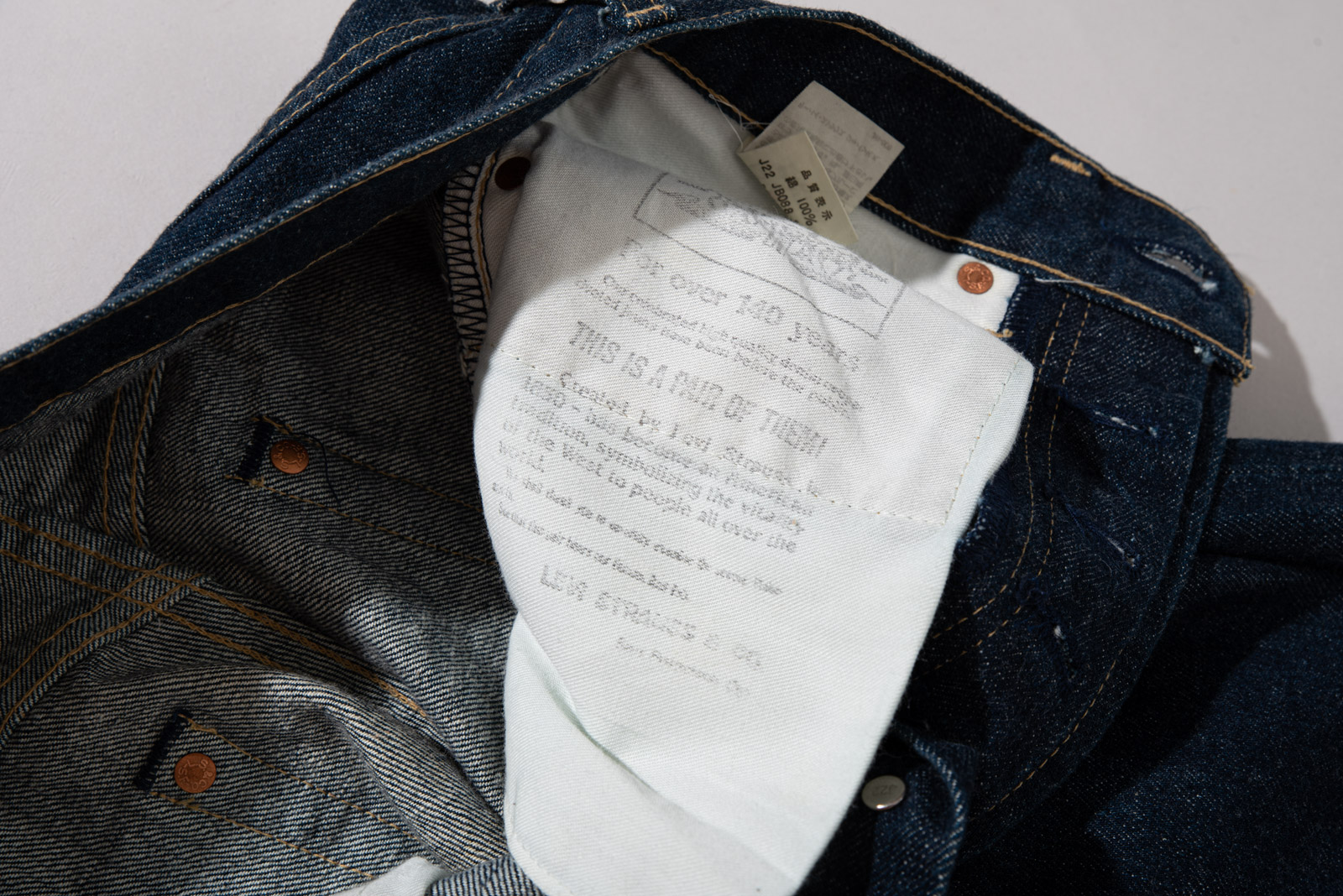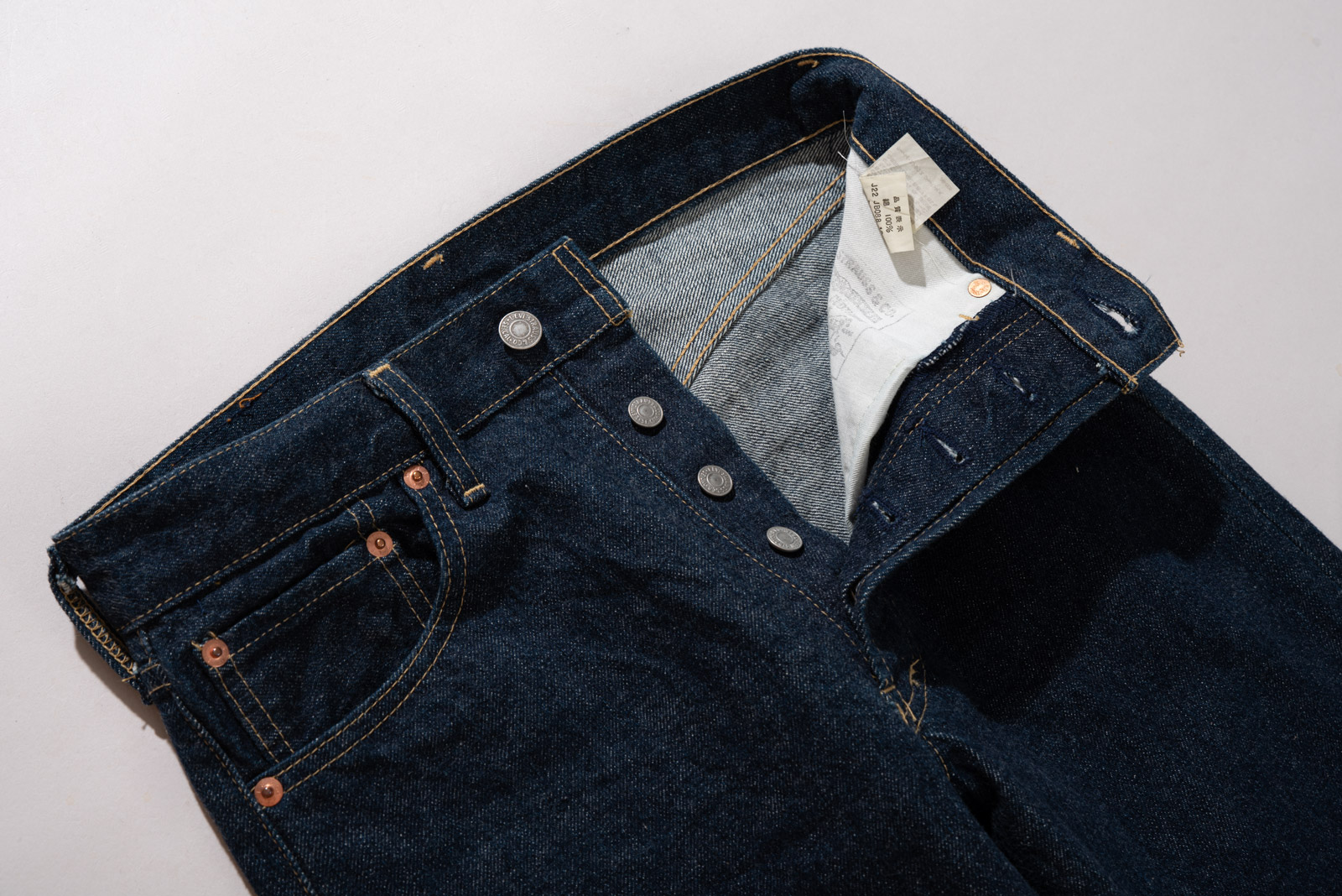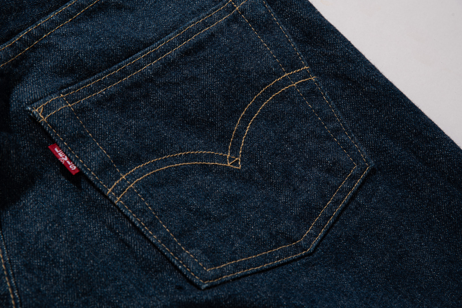 LVC 라인의 특징인 셀비지 원단과 바텍 마감 기술이 있기 이전이라 엉덩이 쪽으로 숨겨 제작된 히든 리벳 등 오리지널 리바이스의 재미를 느낄 수 있는 제품이에요.