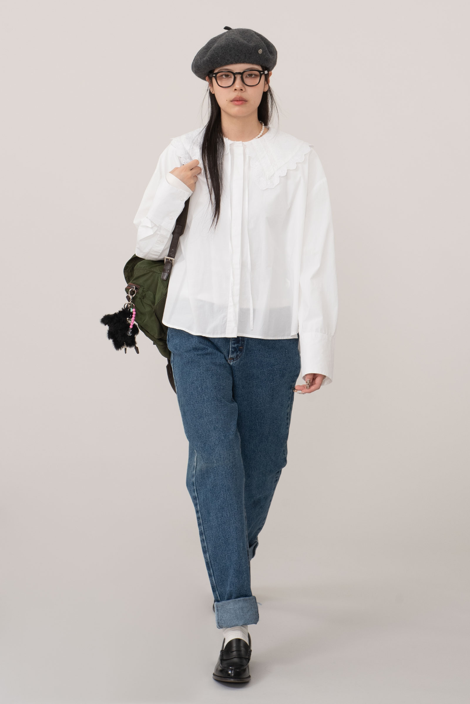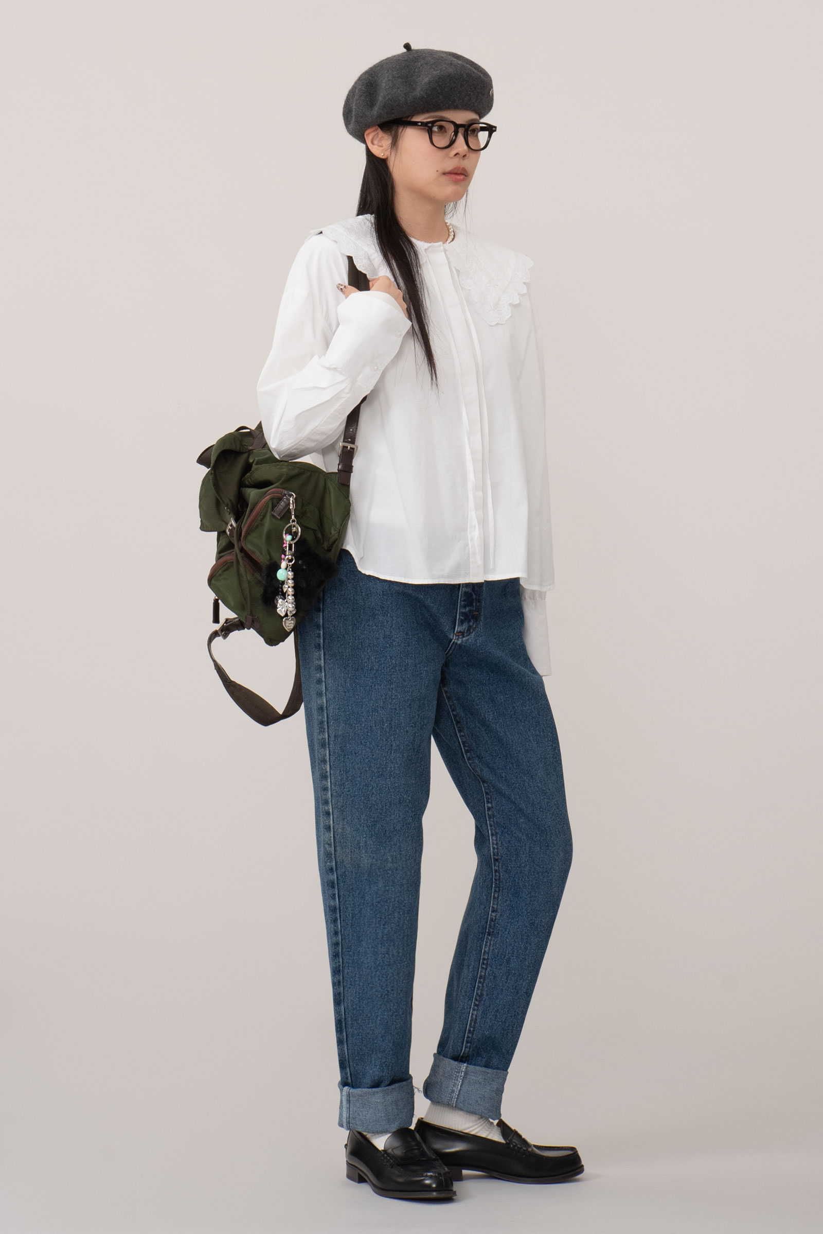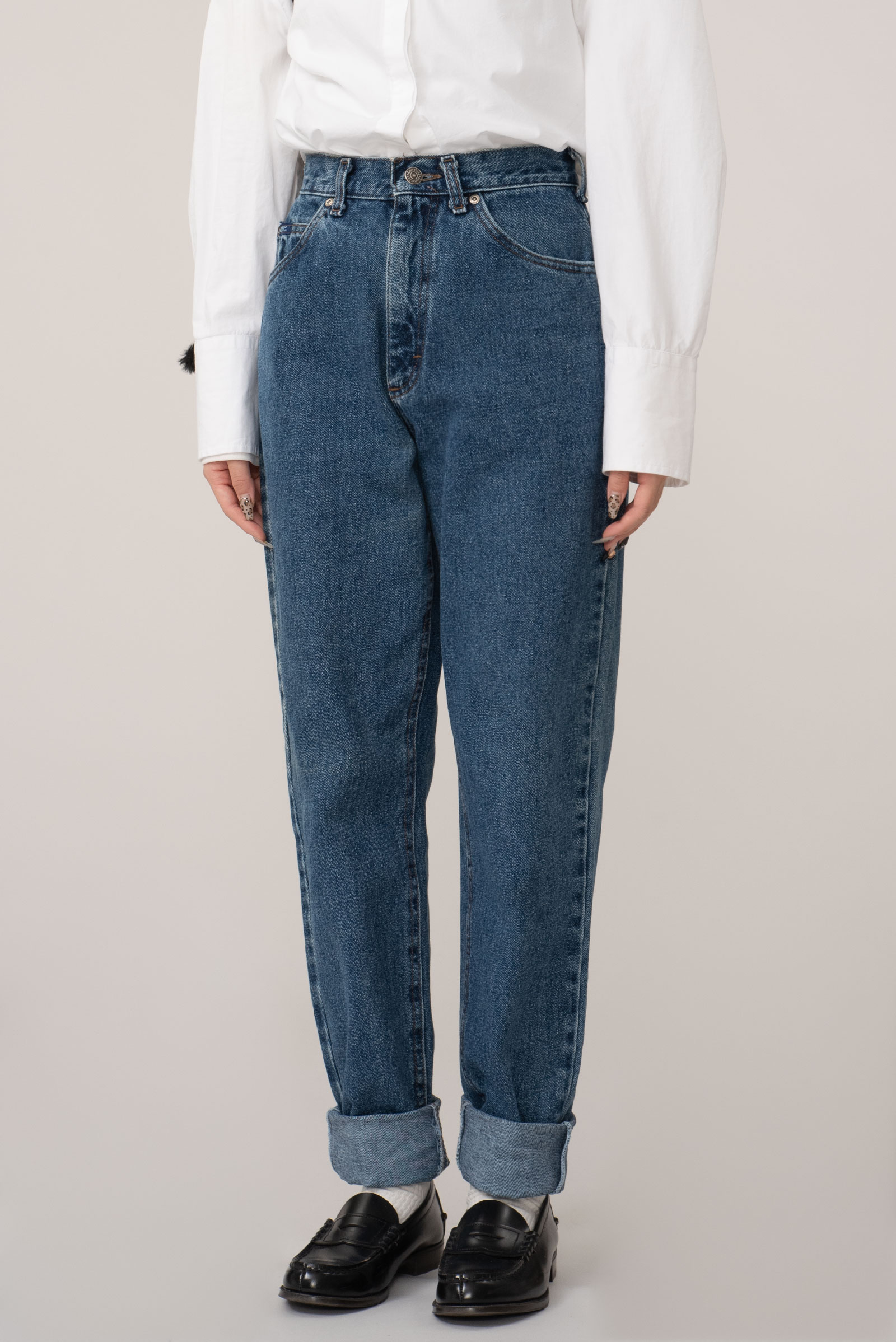 롤업 하여 셔츠나 니트에 매치하시면 좋을 청바지에요.