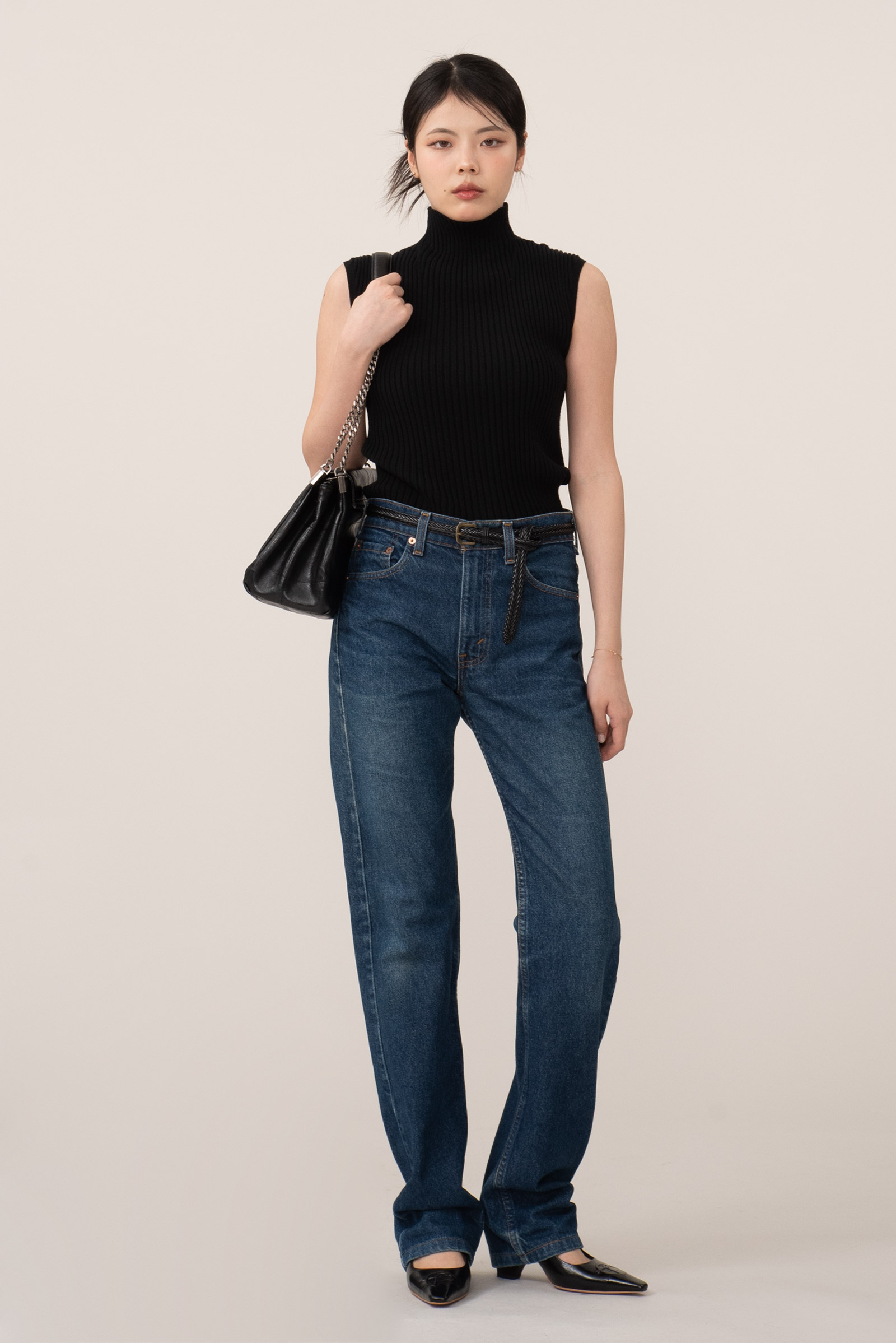 501만큼이나 노멀한 핏과 실루엣을 가지고 있어서 셔츠나 재킷과도 합이 좋고 니트나 크롭 티셔츠 등 아무거나 걸쳐 입어도 멋이 나는 그런 제품이에요.