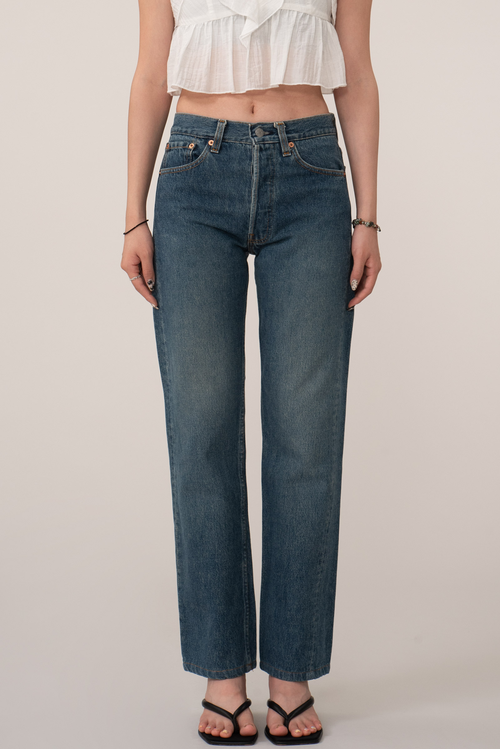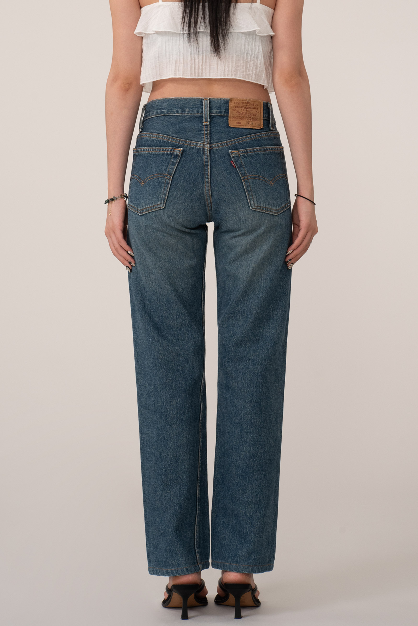 약간 그을린듯한 컬러감, 여성용 빈티지 501의 표본이라고 할 수 있는 실루엣과 사이즈입니다.