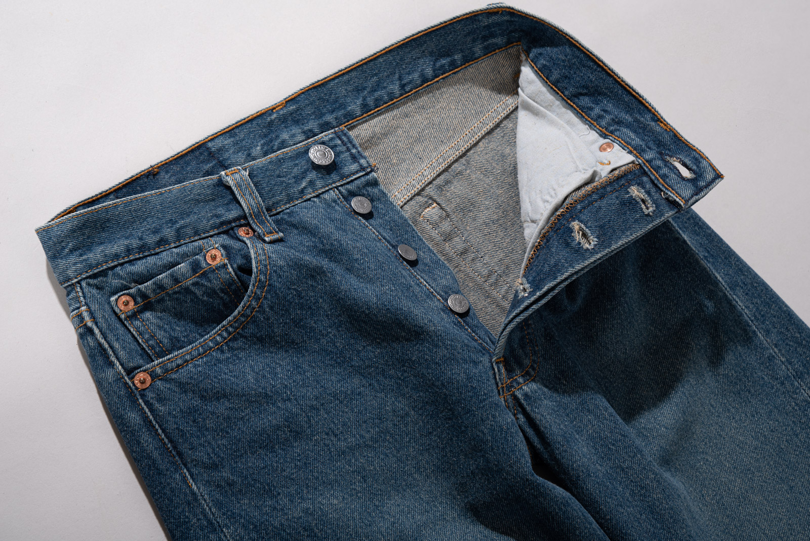 특히 지금의 501과 달리 페이퍼 백 패치, 꼼꼼한 마감과 견고한 리벳이 살아 있는 점이 매력이고 이런 90년대 501의 투박한 핏과 묵직한 소재감, 그리고 세월을 머금은 컬러감은 다양한 트렌드에서 항상 레퍼런스로 활용된답니다.