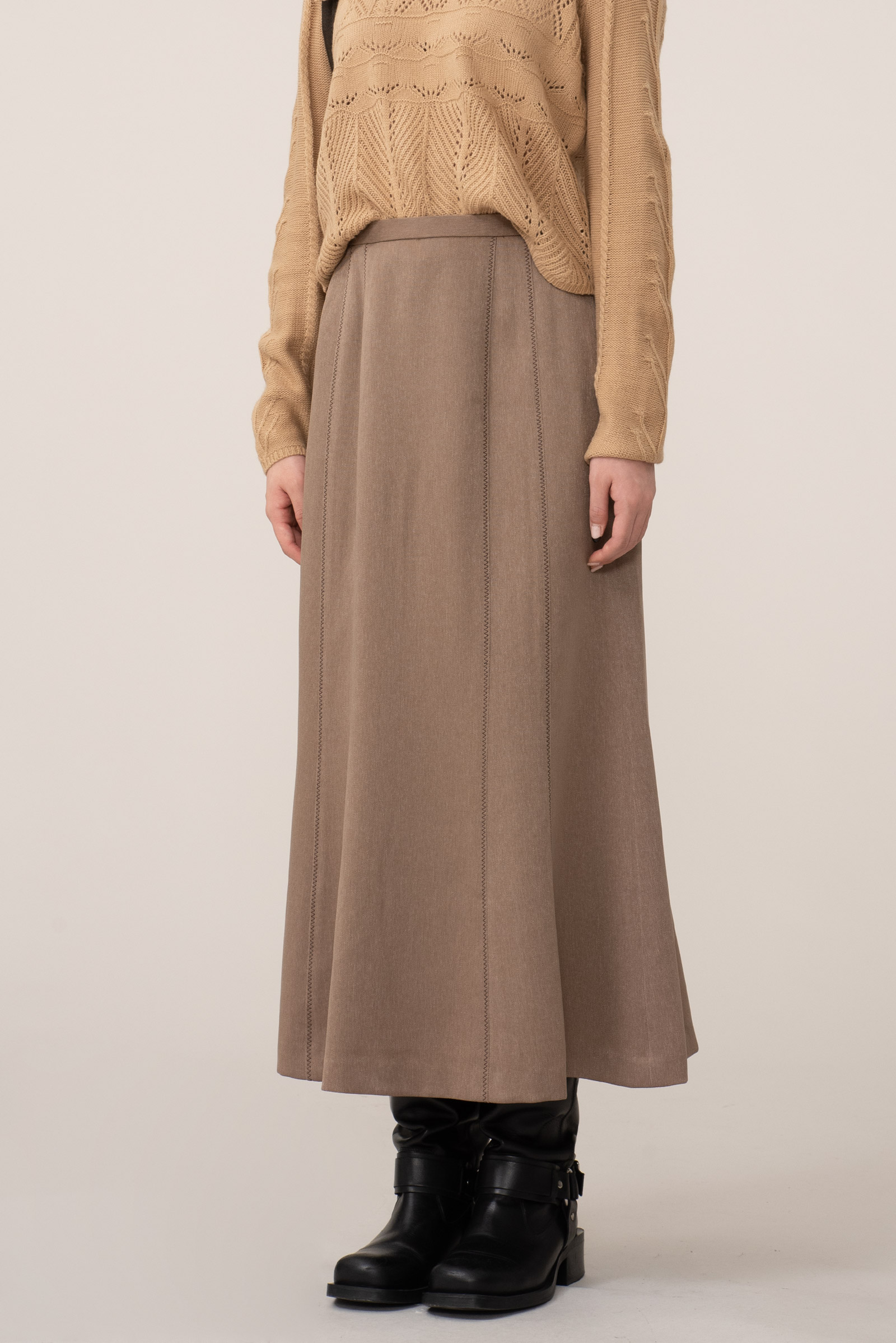 밑단으로 갈수록 자연스럽게 퍼지는 세미 머메이드 핏이에요.
