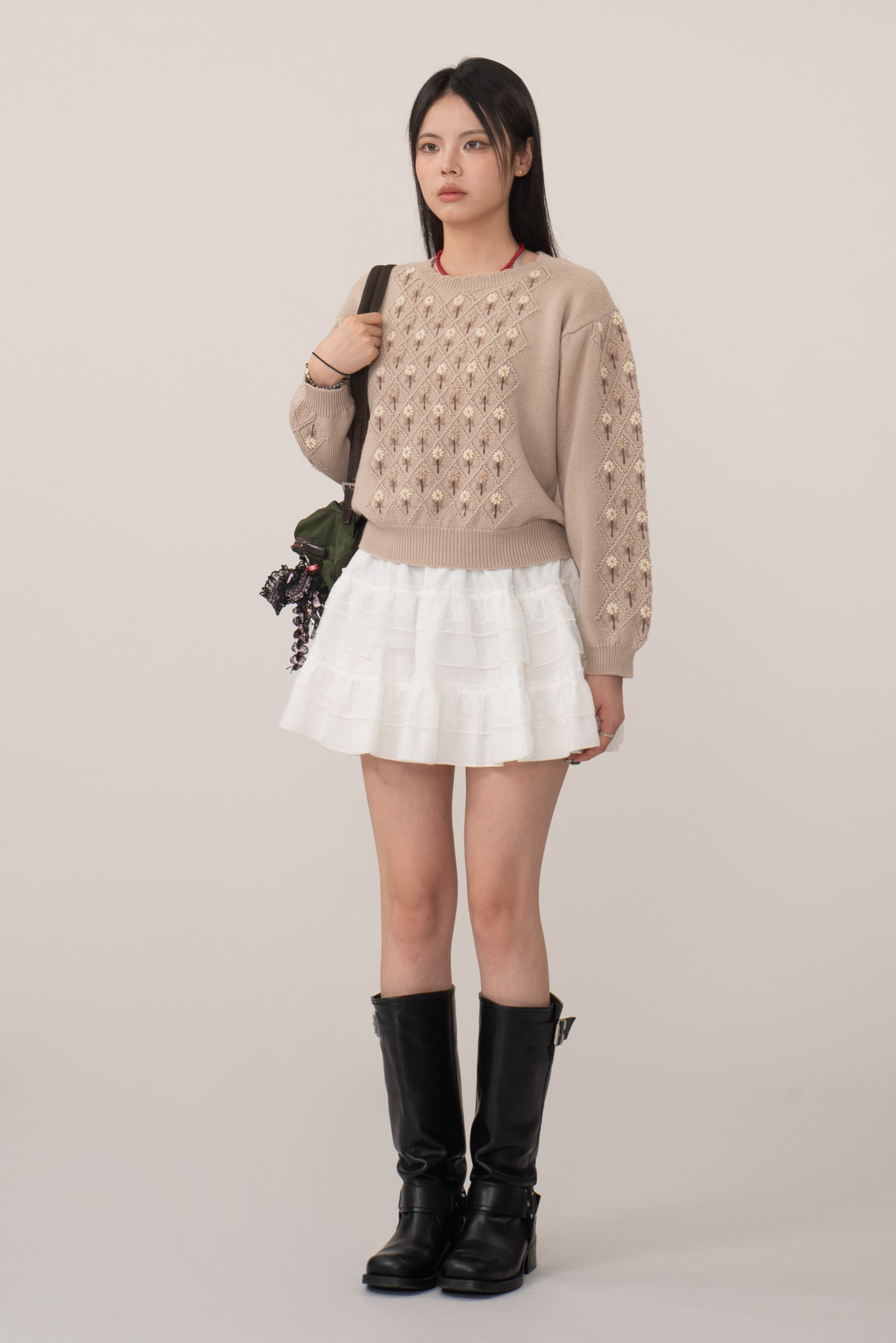 ▫comment - 귀여운 플라워 패턴이 자수된 빈티지 울 니트입니다.