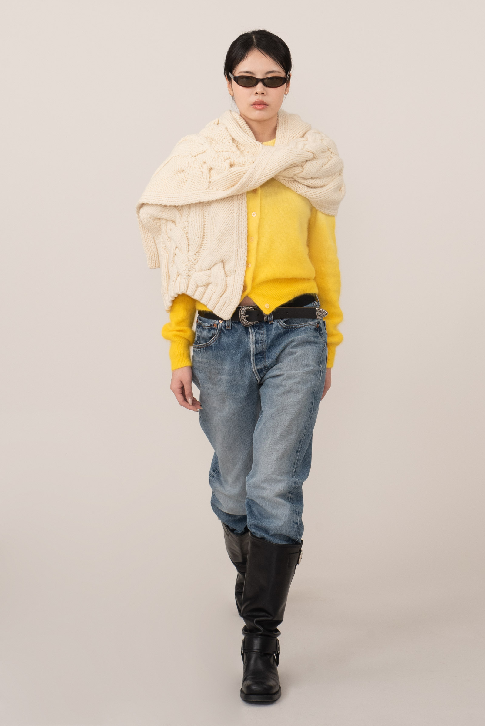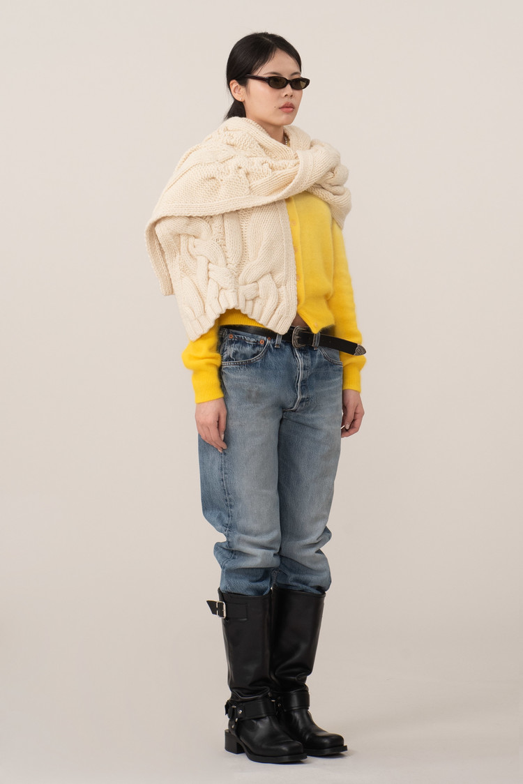 92% 라나 버진 울 사용되었으며 8% 캐시미어 소재로 보드랍고 포근해 숄 또는 머플러로 쓰임이 다양한 제품이에요.