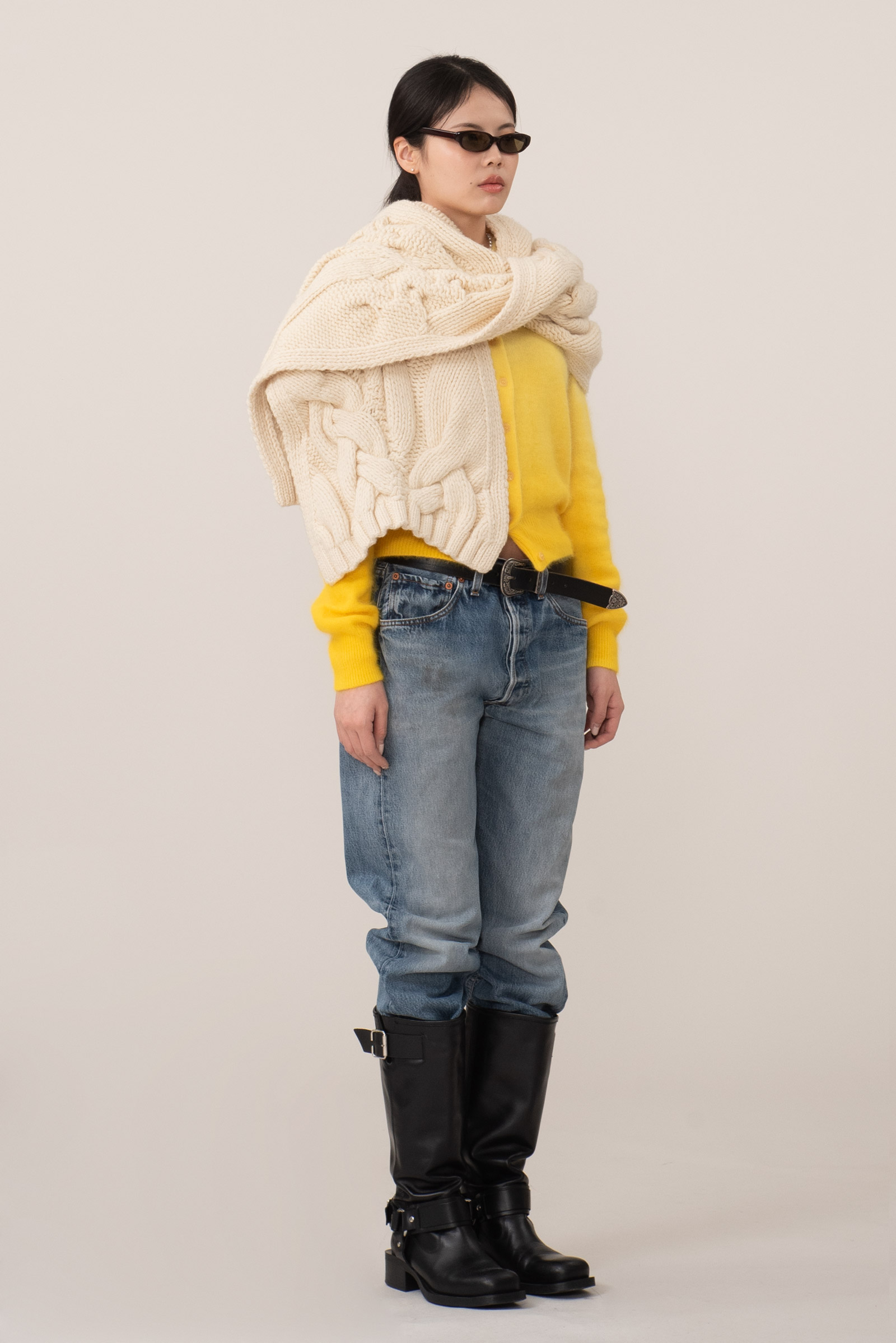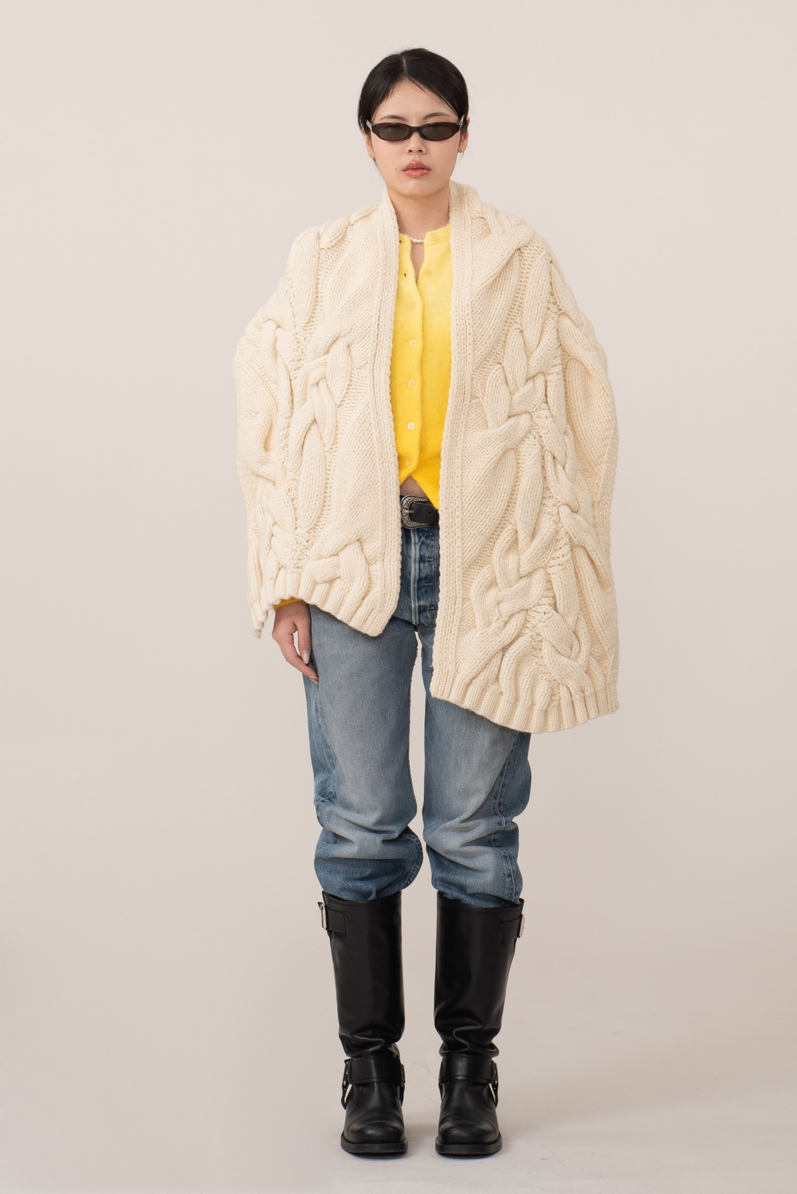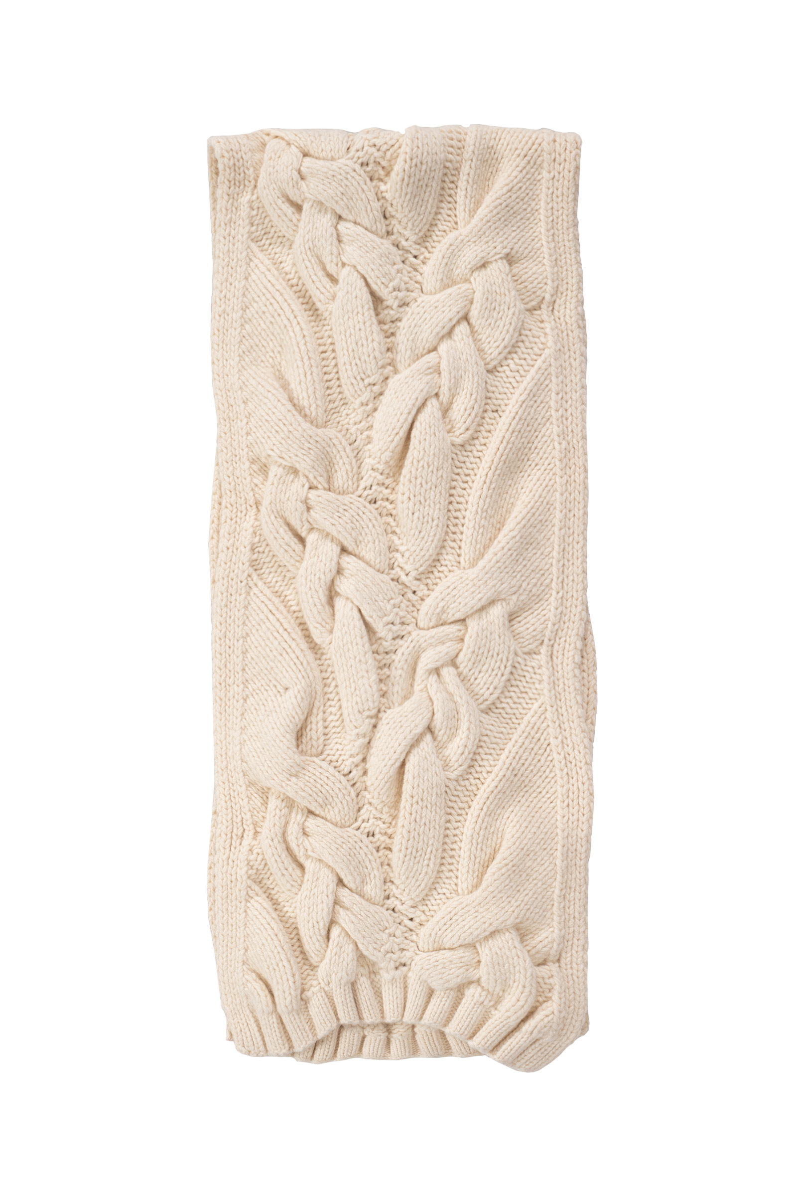 큼지막한 꽈배기 짜임과 널찍한 형태로 무릎담요로 쓰기도 좋고요.