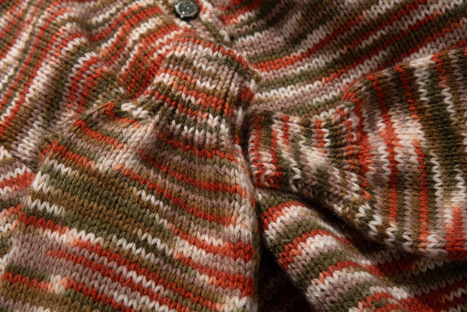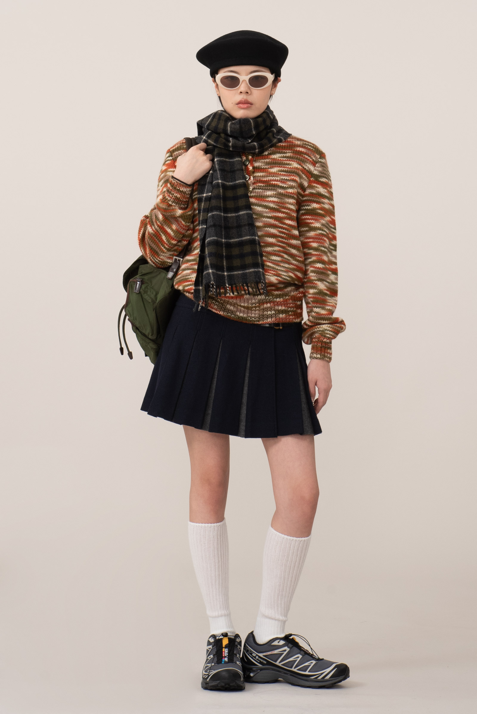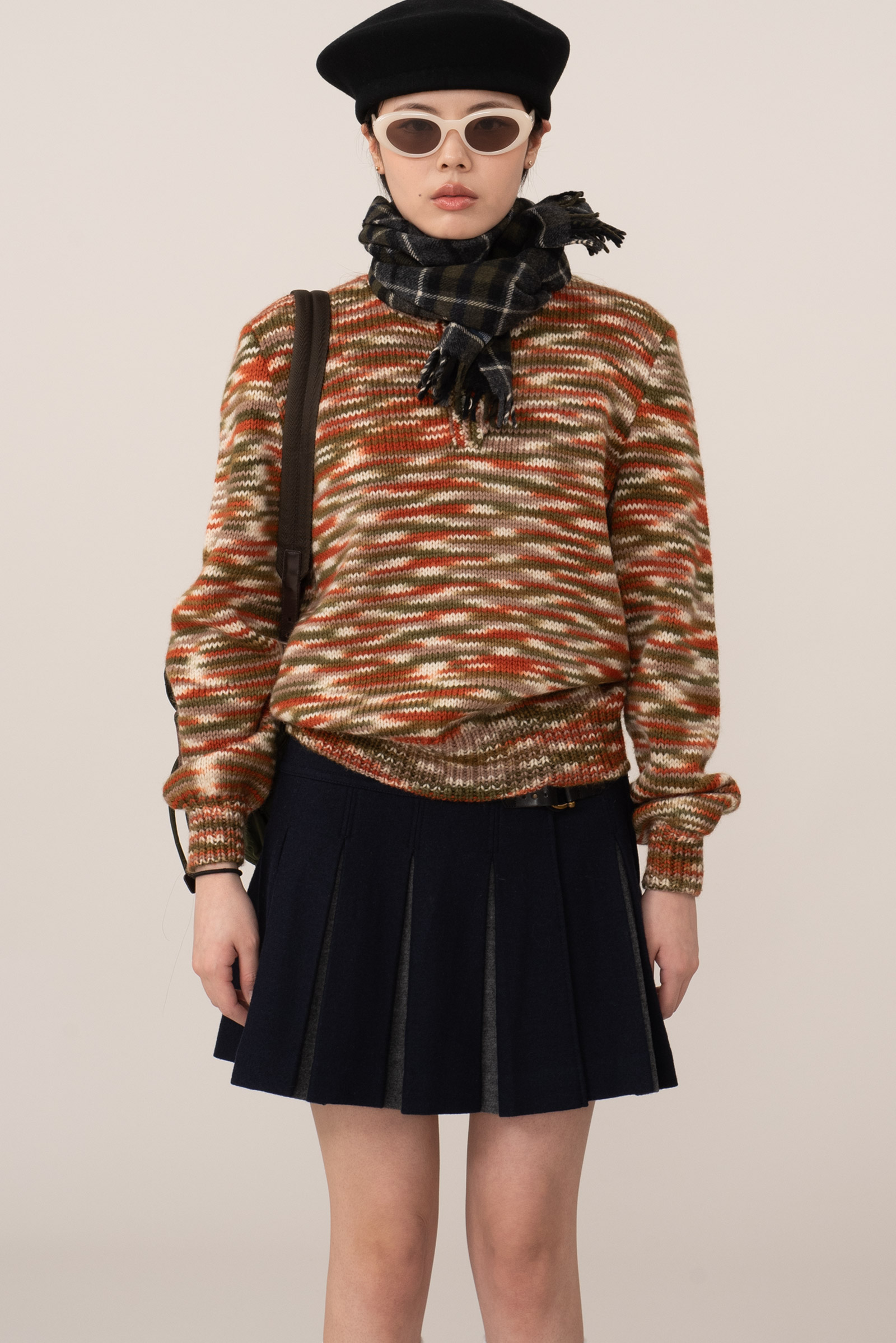 큰 디테일 없이 간결하고 캐주얼한 실루엣으로 유행 없이 두고두고 착용되며 여러 컬러가 섞여 발랄한 느낌과 넥 짜임 디테일이 아주 귀여운 제품이에요.