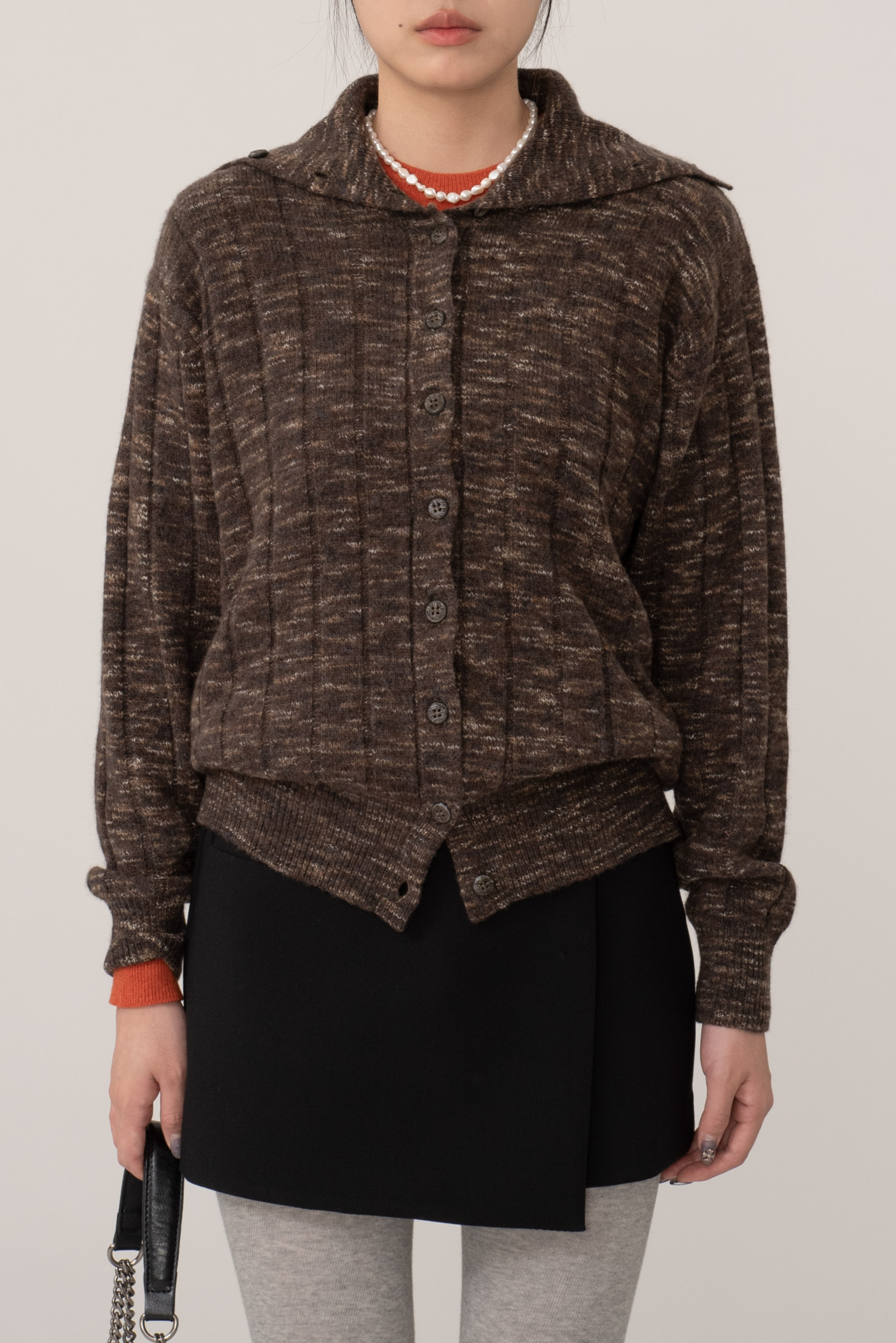 넓은 세일러 카라가 돋보이며 오픈하여 가디건으로 사용해도 좋고 전부 여며 스웨터처럼 착용하기도 좋아 쓰임이 다양해요.