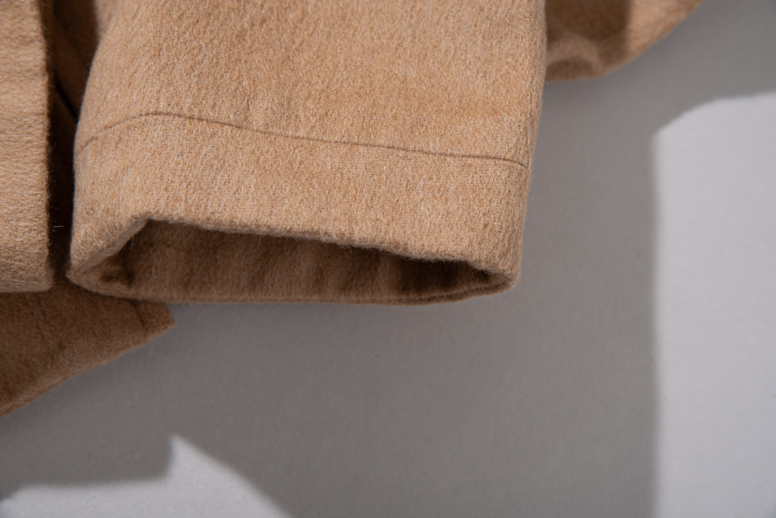 베이지와 라이트 브라운이 섞인 부드러운 컬러, 고급 소재인 앙고라와 캐시미어가 섞여 보드라운 착용감이 일품이며 드라이 마친 상태입니다.