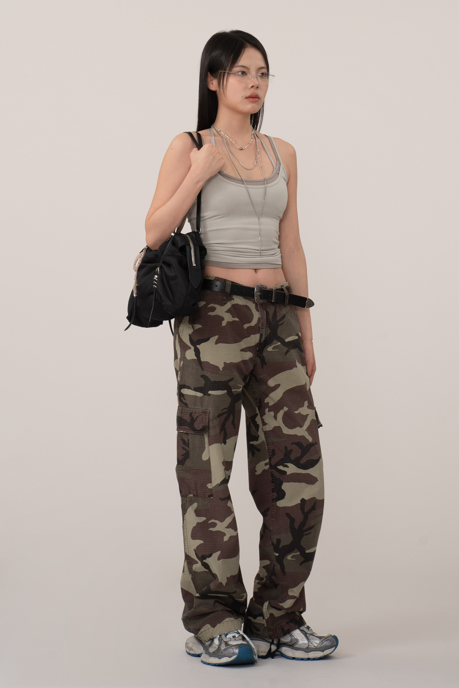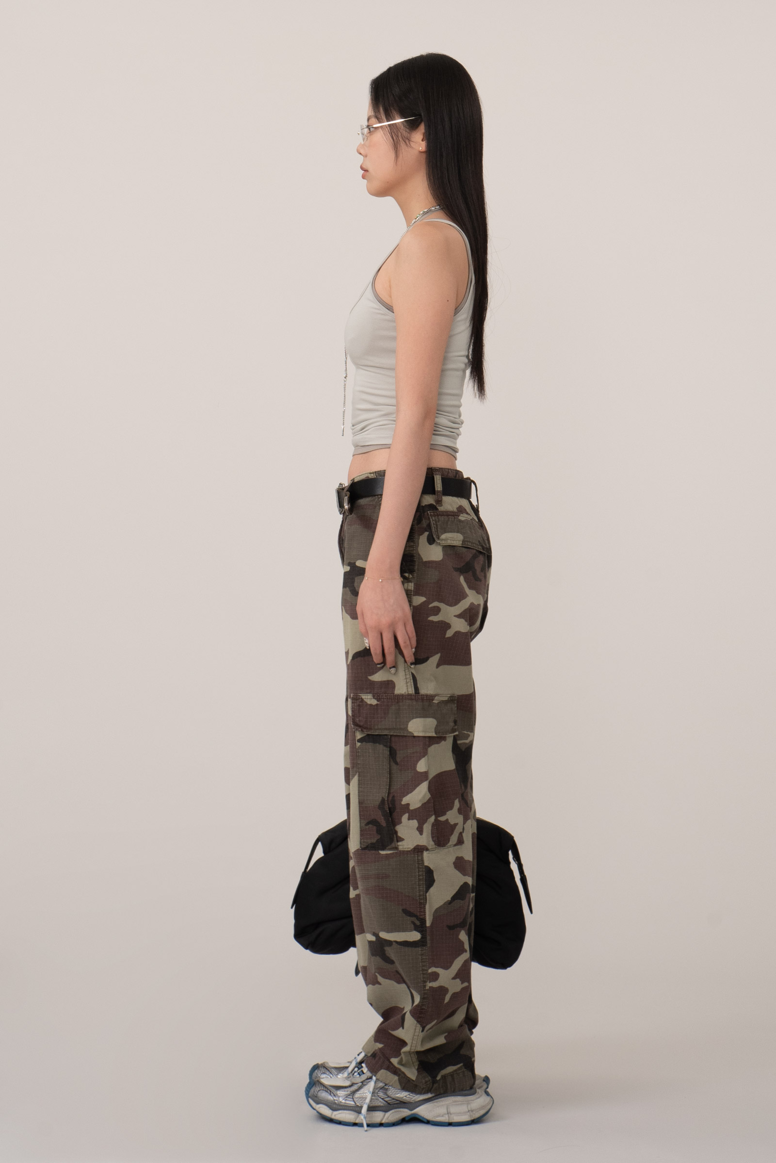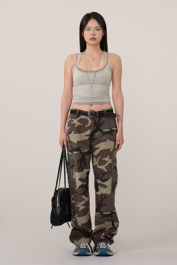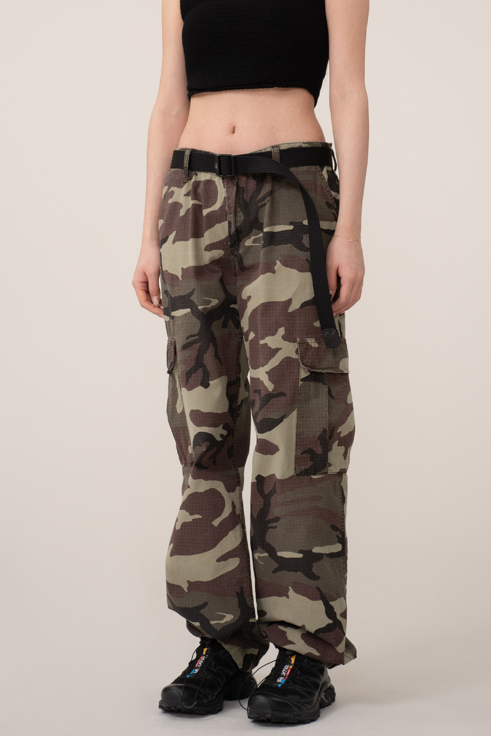 눈에 띄는 카모 패턴에 밑단 조절이 가능한 스트링이 있어 기분에 따라 스타일링이 가능하고 전면 메인 포켓 외 사이드와 후면의 카고 포켓 등 수납과 가능성 모두 만족이 되는 모델이죠.