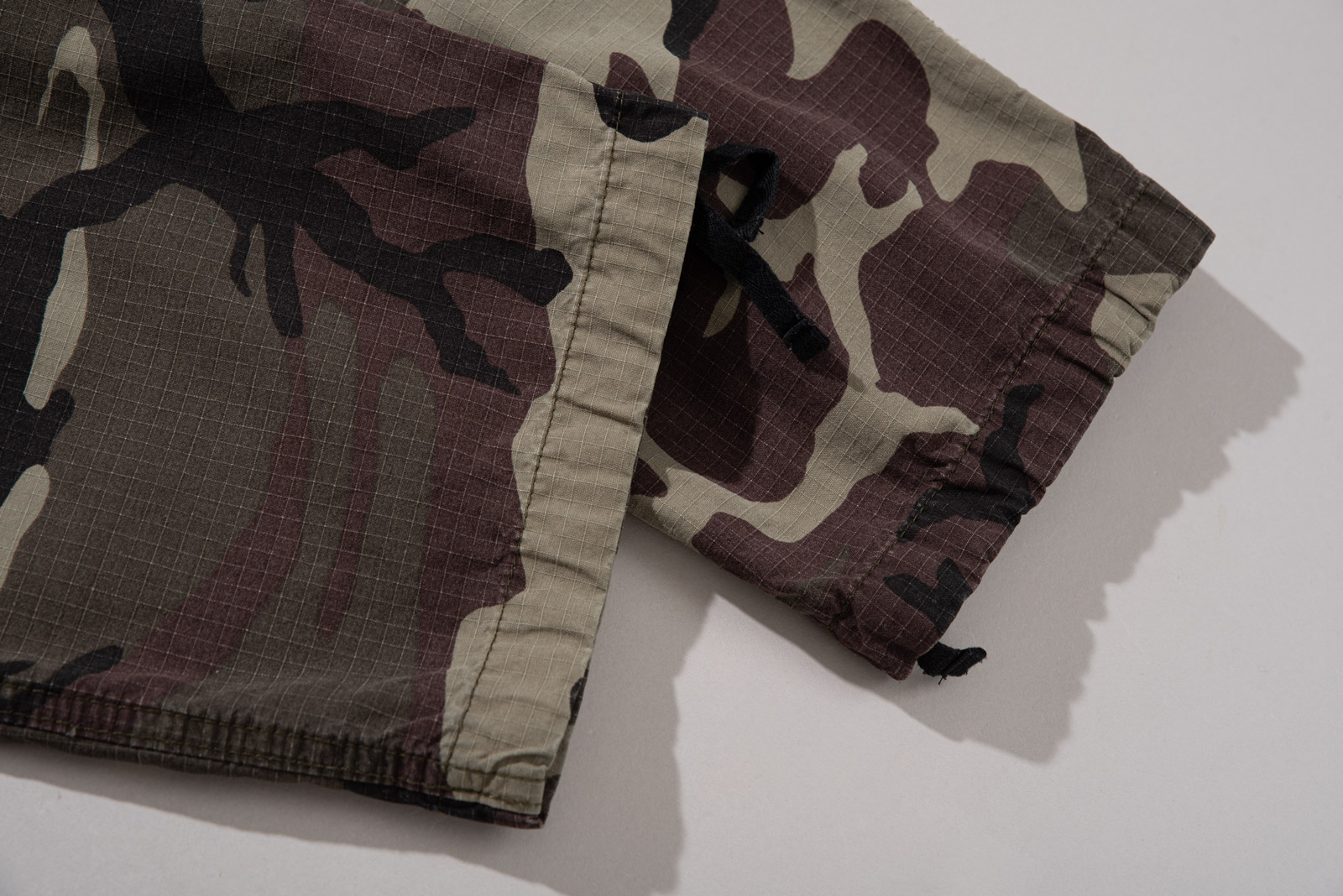 내구성이 높은 립스탑 소재, 특징으로는 작은 격자 조직이고 얇지만 격자 조직 덕분에 데미지에 강하며 편안한 착용감이랍니다.