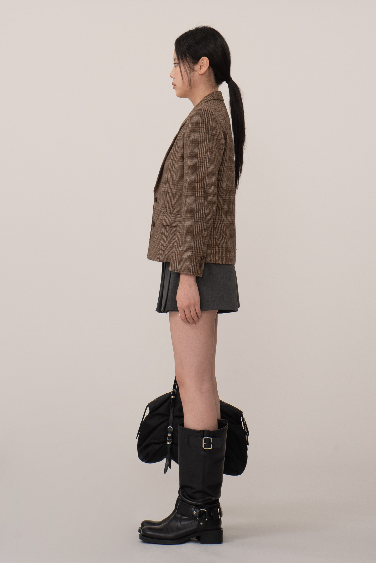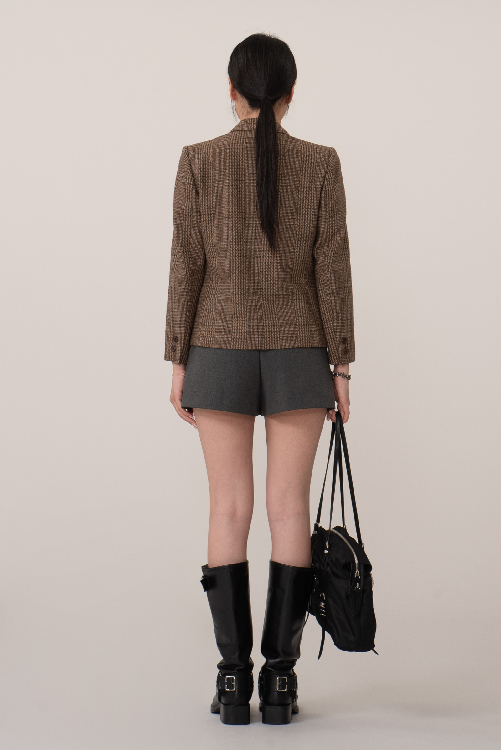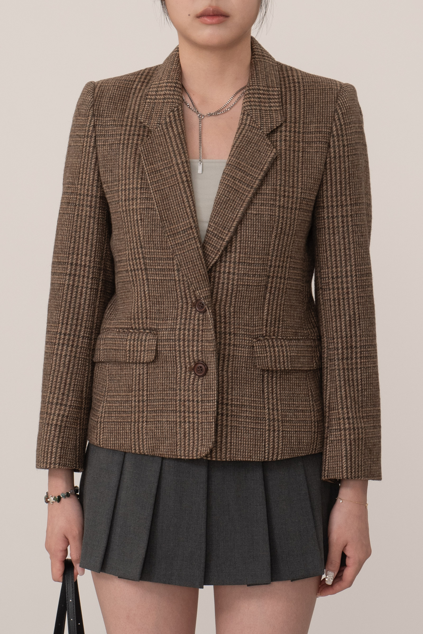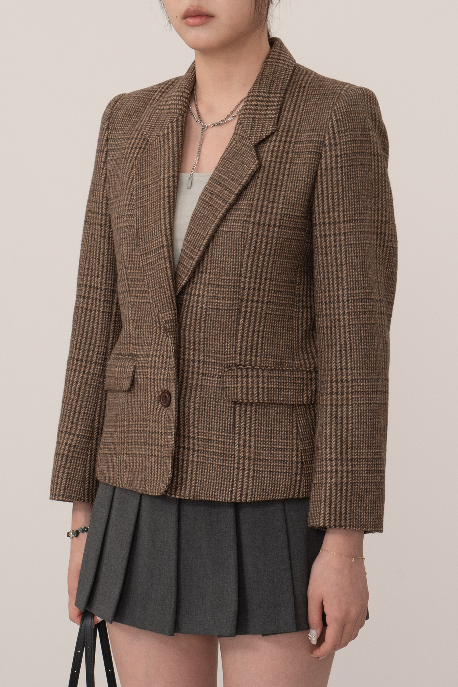 브라운 톤의 체크 패턴은 다양한 코디에 자연스럽게 어울리며 포멀한 스타일부터 캐주얼 믹스 매치까지 폭넓게 활용 가능하답니다.