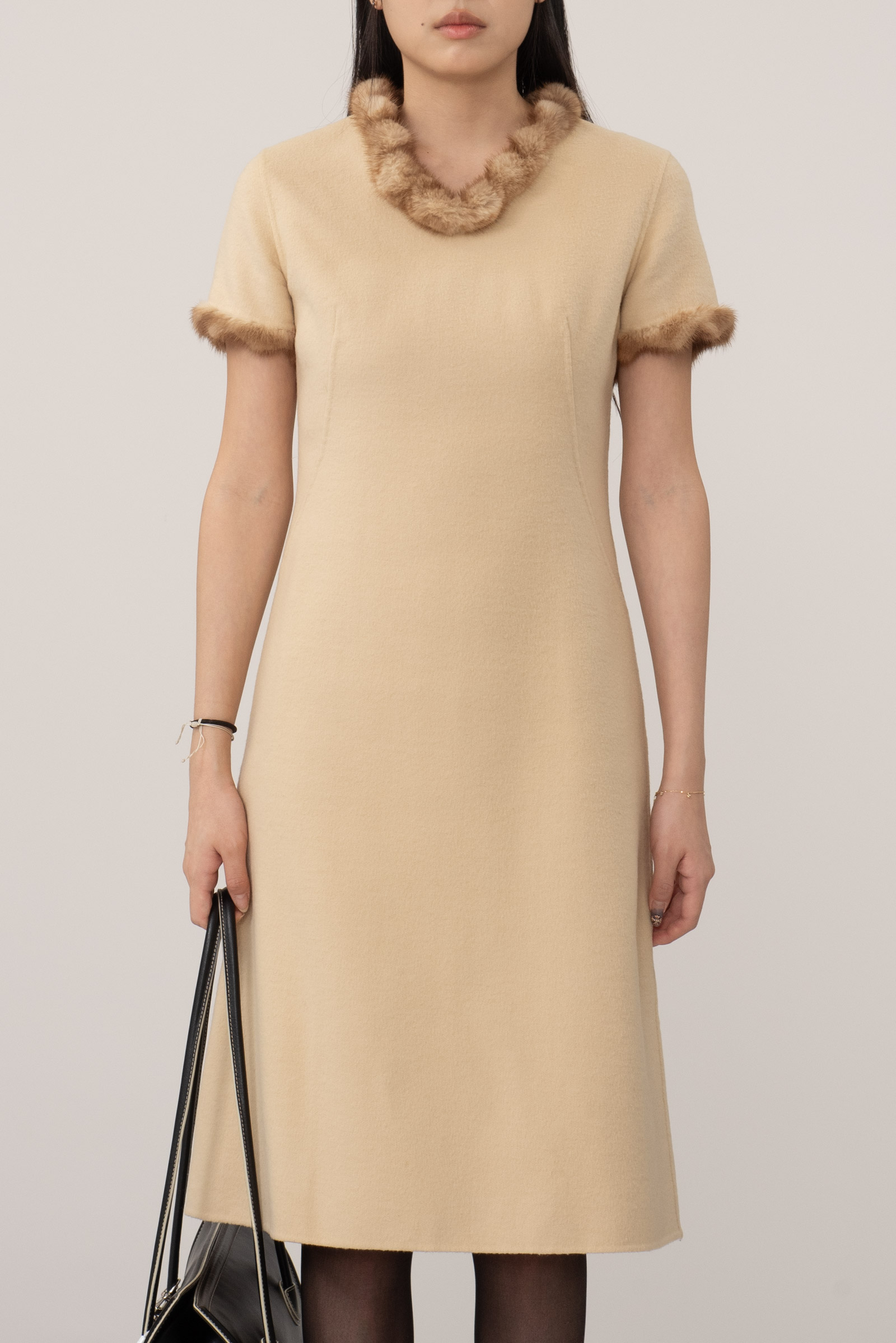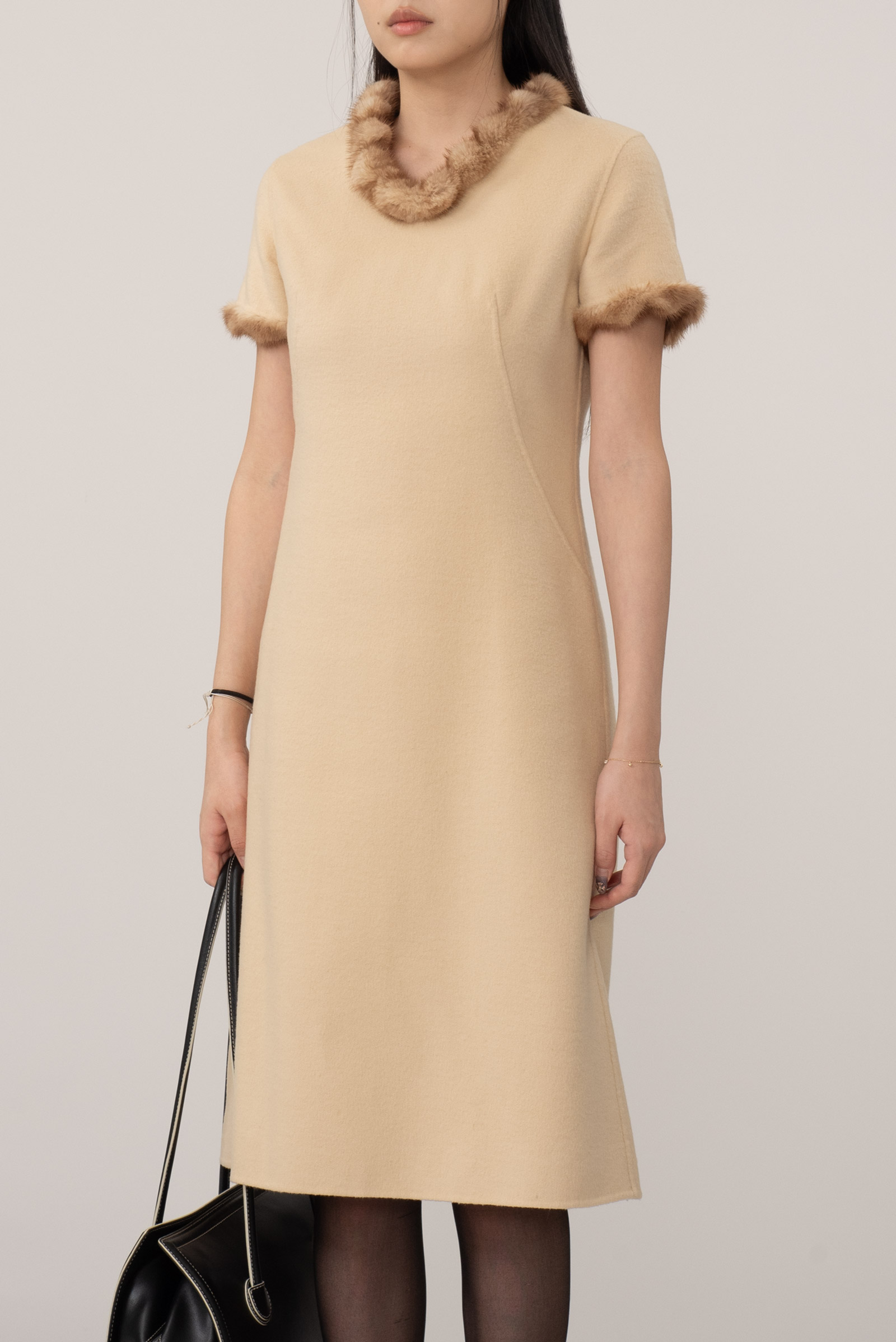 ▫comment - 섬유의 보석이라 불릴 만큼 값비싸고 고급스러운 소재인 캐시미어와 울, 그리고 밍크 디테일로 제작된 빈티지 원피스입니다.