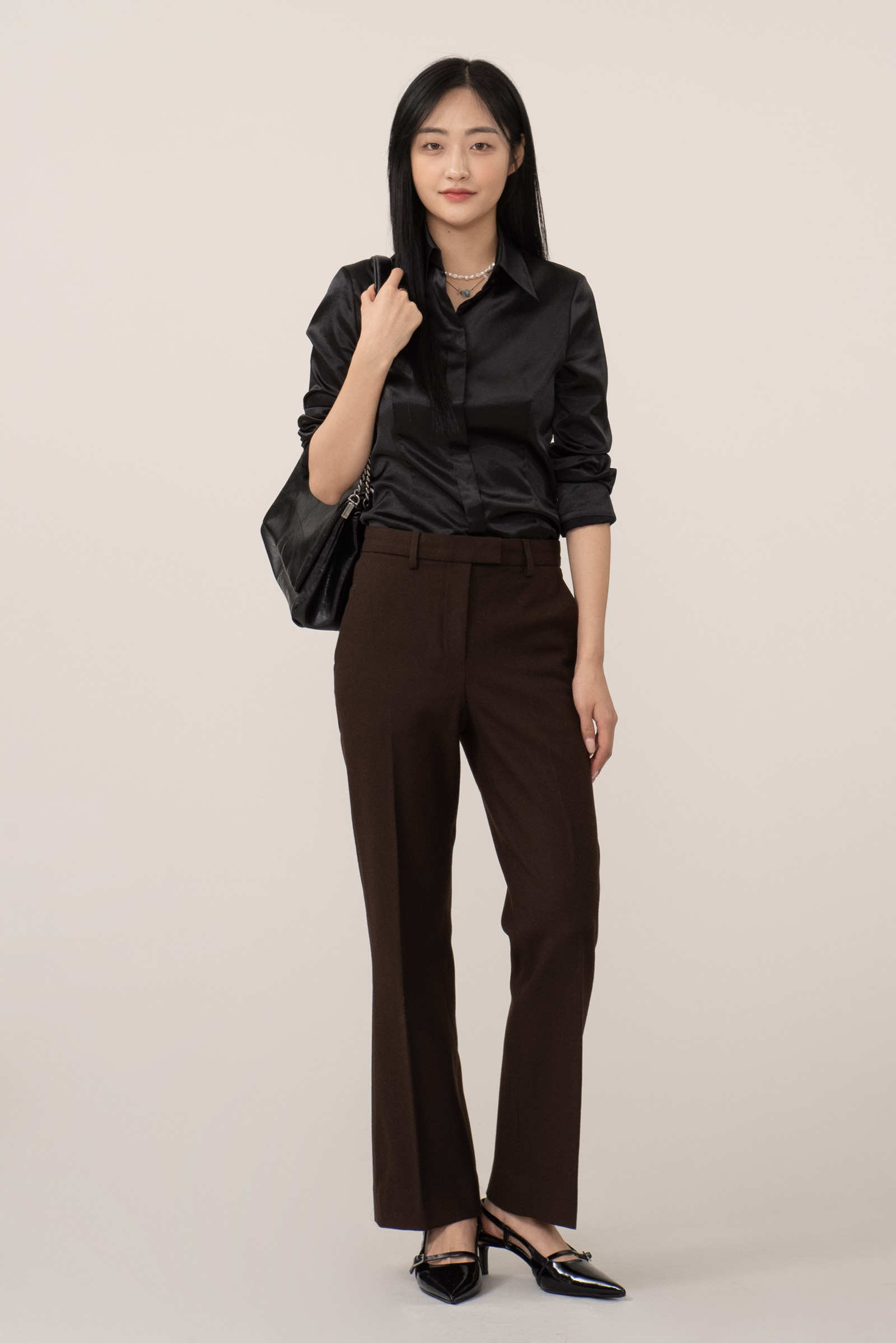 고급스럽고 차분한 밤색 컬러, 도톰하고 밀도 높은 원단 사용되었네요.