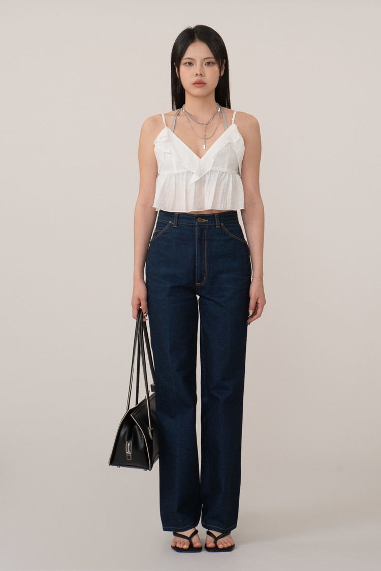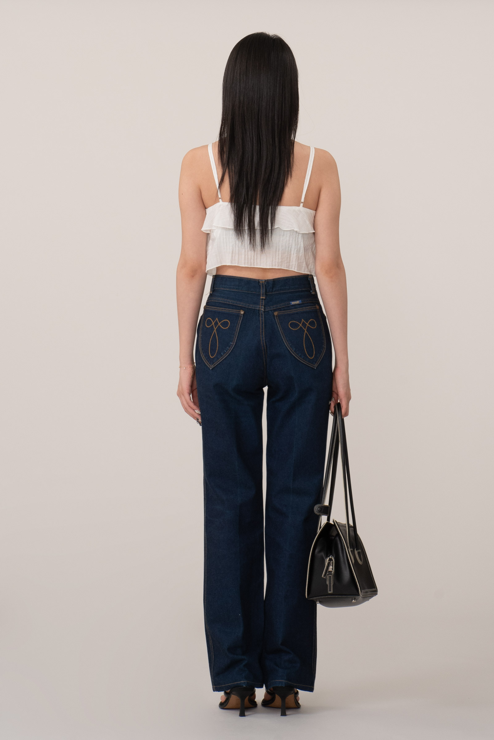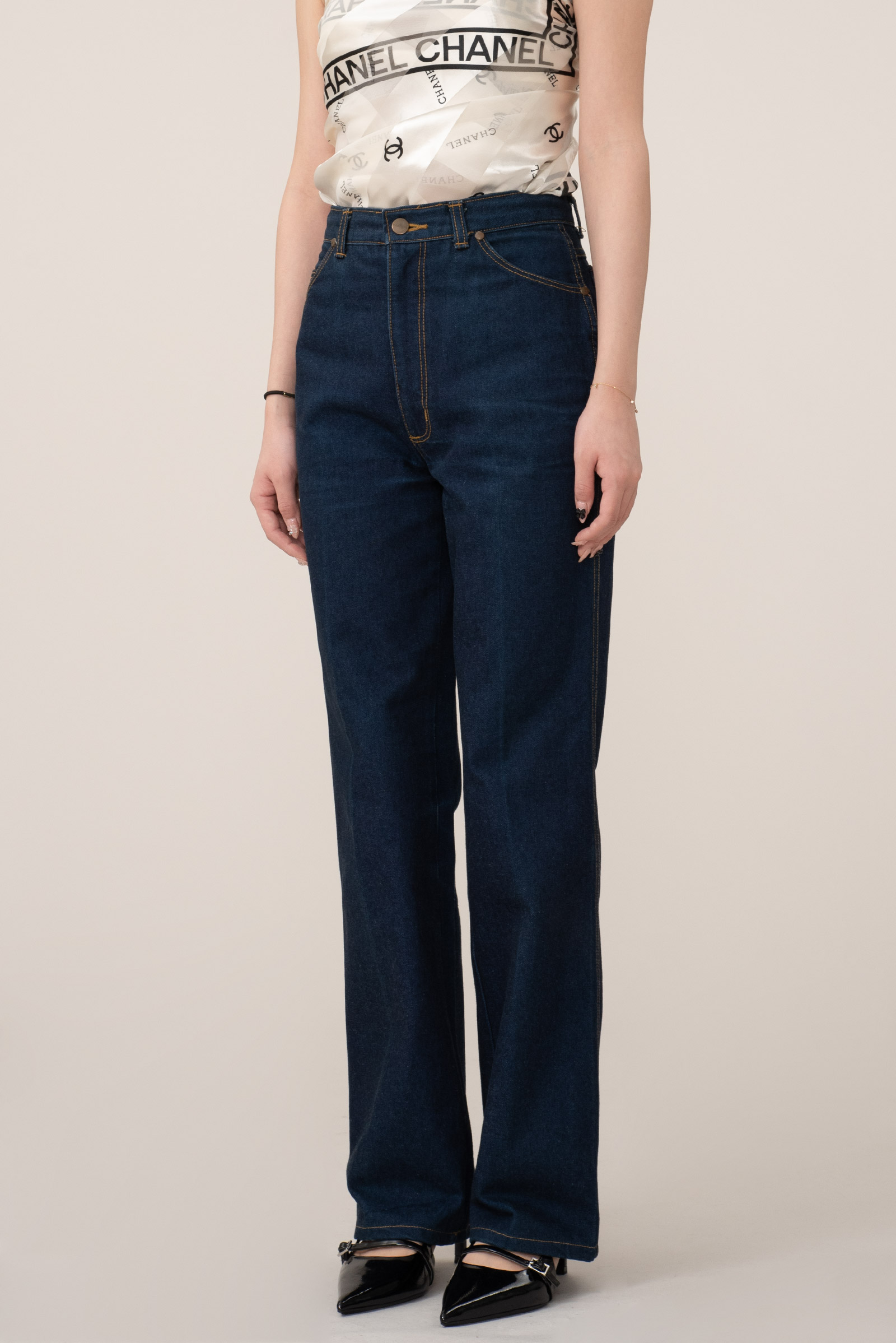 진청 컬러에 하이웨이스트, 밑단으로 갈수록 넓어지는 벨 바텀 실루엣으로 카우보이나 디스코 문화에 큰 영향을 끼쳤던 랭글러만의 아이덴티티를 그대로 즐기기 좋으며 자유분방하면서도 세련된 제품이라 현 시류에도 잘 어울리는 제품이 아닐까 합니다.