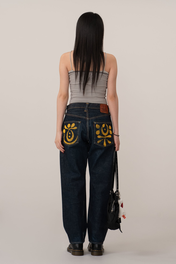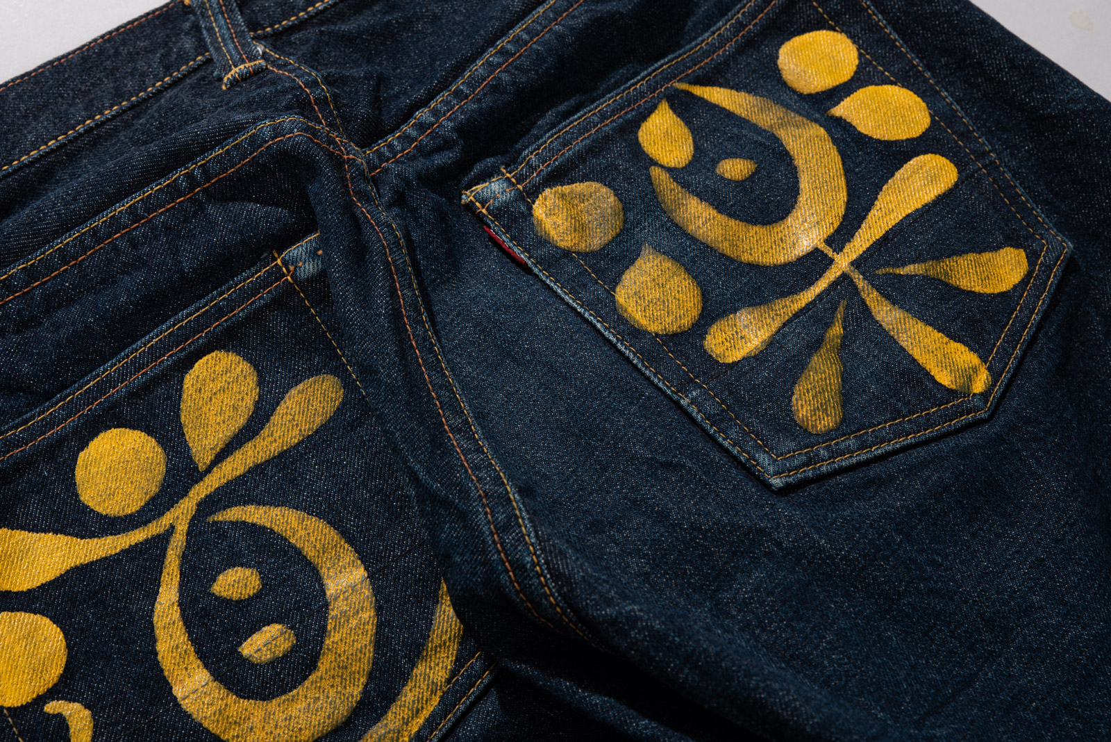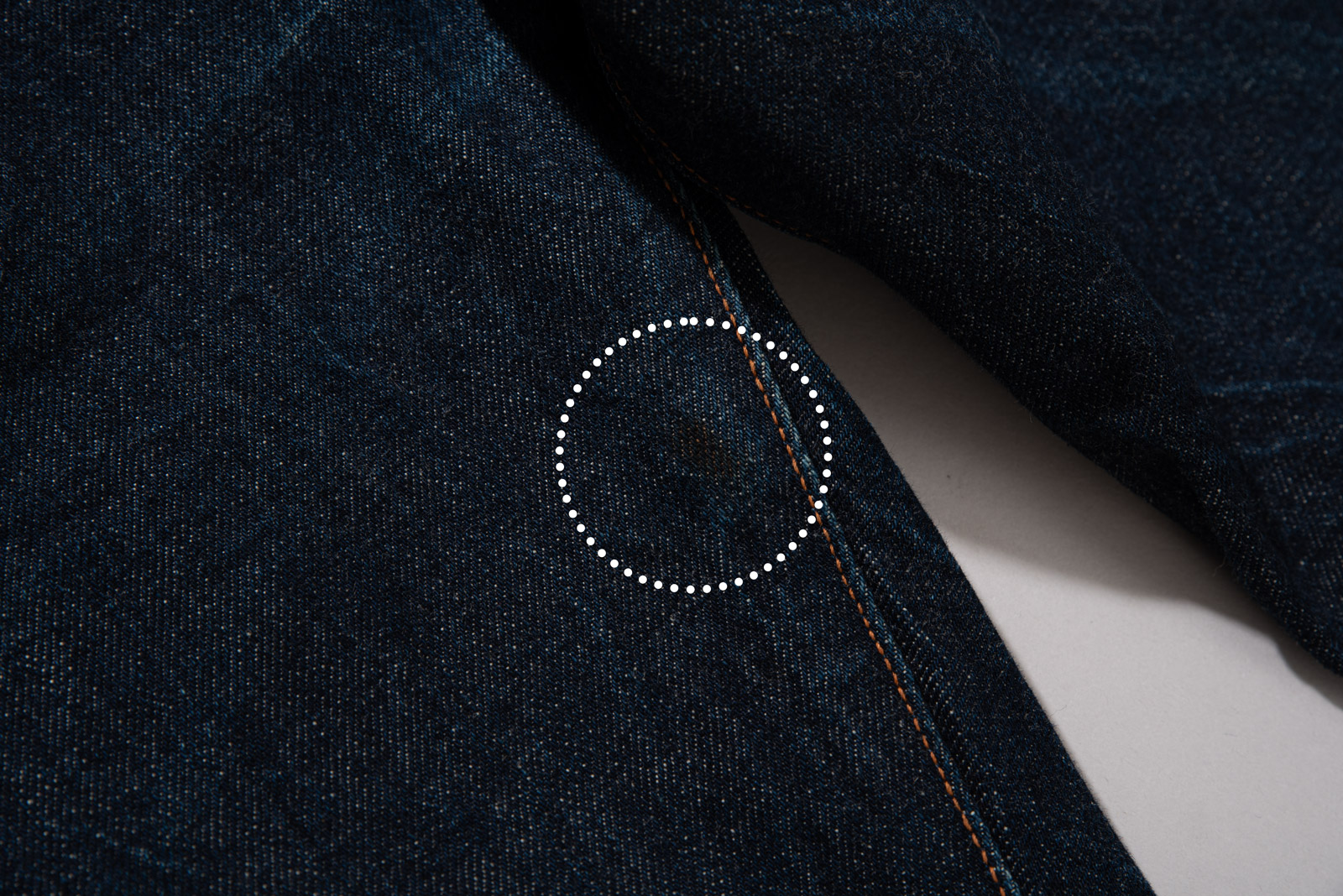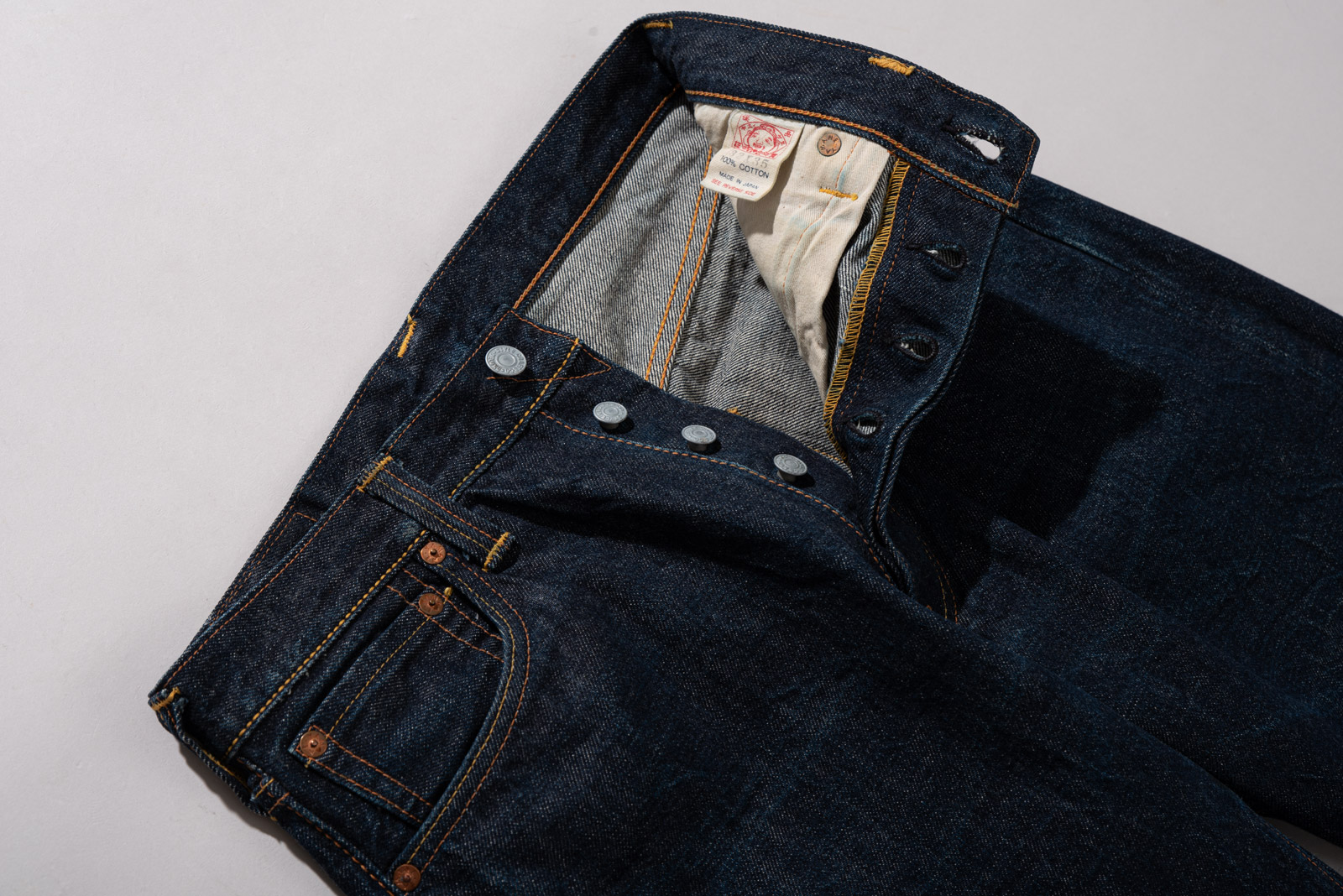 12mm의 얇은 셀비지 폭과 두 번은 없는 데드스톡 급 컨디션, 오리지널 모델답게 최상급 데님 원단 사용되어 러프하고 박력 있는 텍스처와 백 포켓의 커다란 도, 락 일명 취미라는 의미의 한자어 프린팅은 굉장히 희소한 개체입니다.