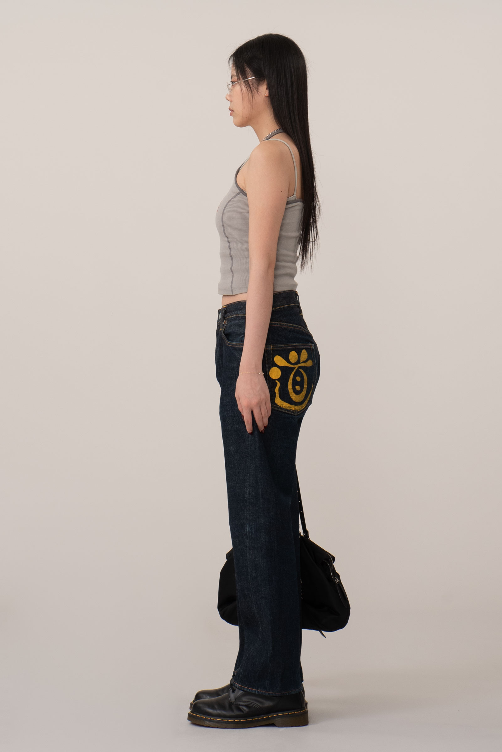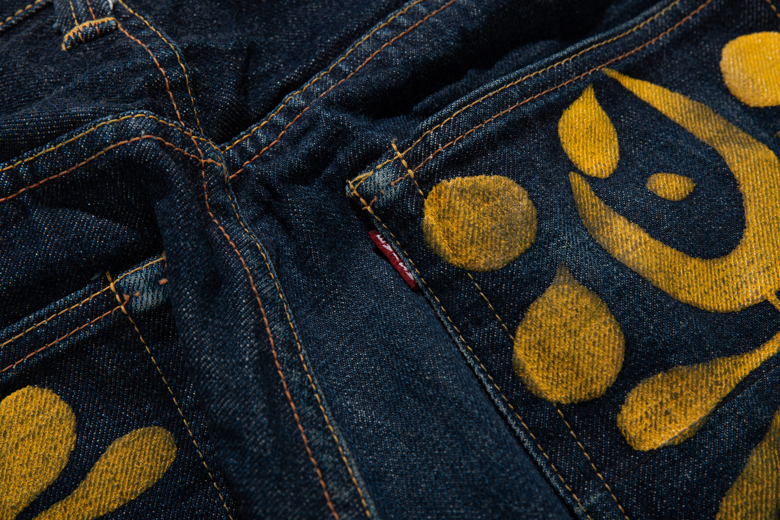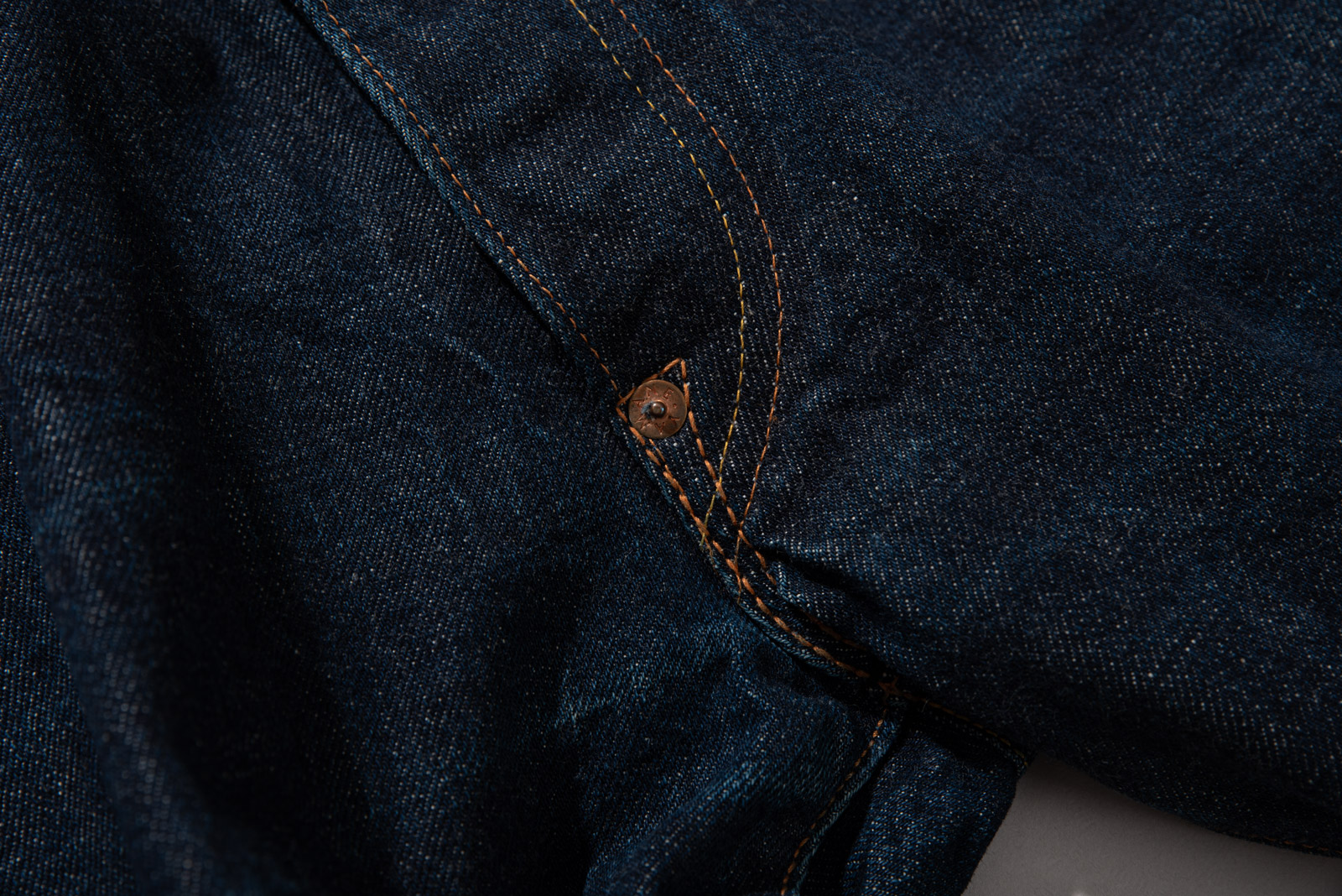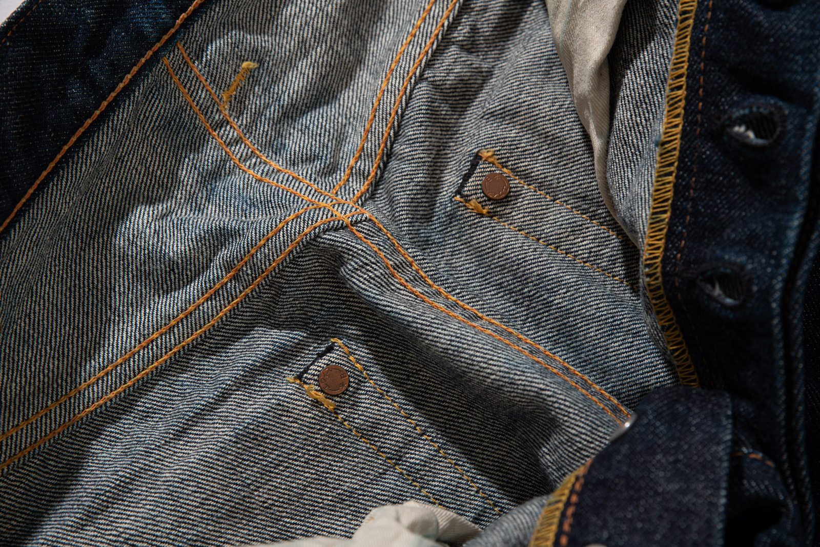 12mm의 얇은 셀비지 폭과 두 번은 없는 데드스톡 급 컨디션, 오리지널 모델답게 최상급 데님 원단 사용되어 러프하고 박력 있는 텍스처와 백 포켓의 커다란 도, 락 일명 취미라는 의미의 한자어 프린팅은 굉장히 희소한 개체입니다.