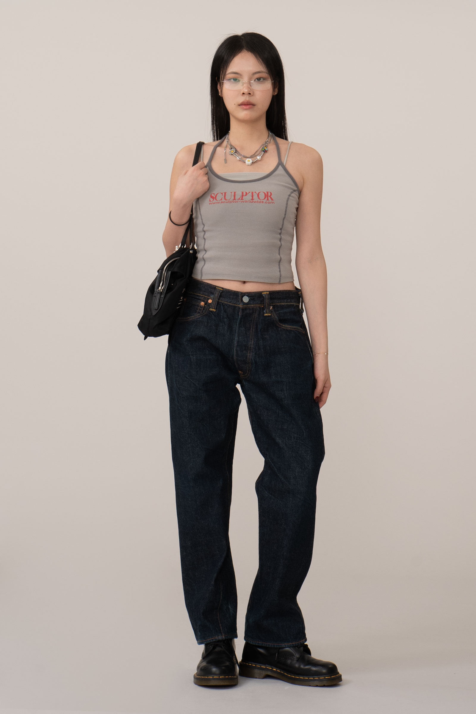 자유분방하고 개성 있는 무드가 일품이며 실측으로는 28인치 정도, 26 착용하는 모델은 로우 라이즈로 편안하게 걸쳐 착용하였습니다.