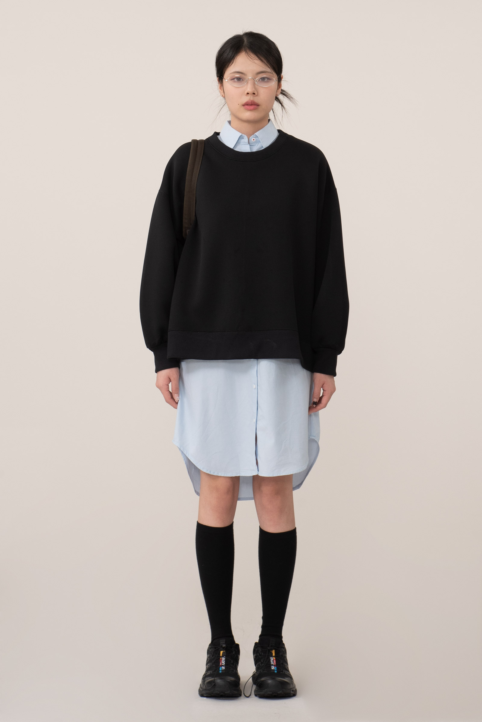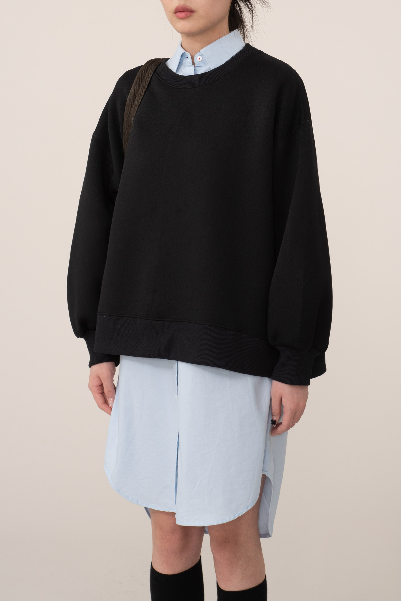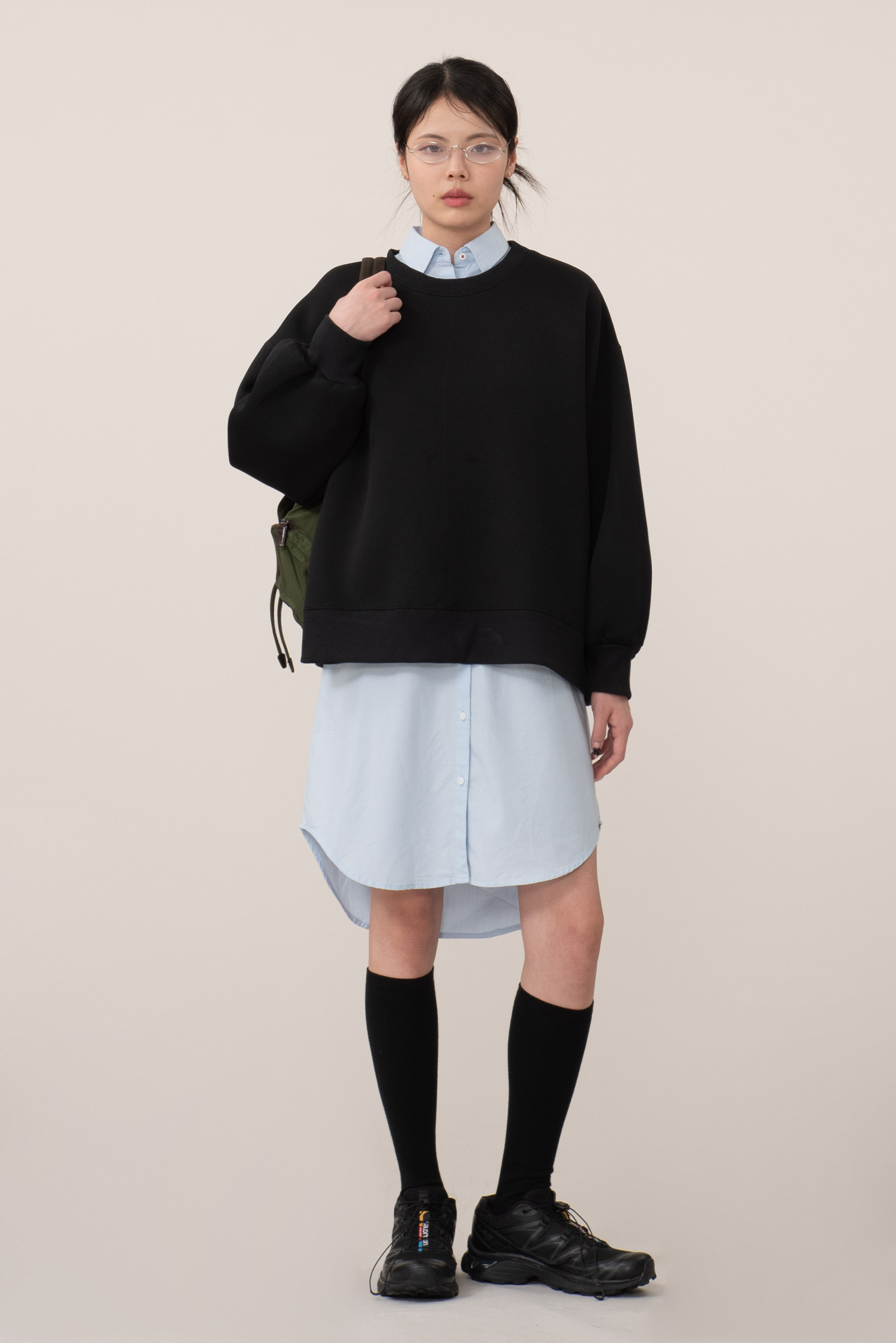품에 비해 기장은 짧고 기장에 비해 품과 암홀이 넓어 귀엽고 아방한 핏 연출된답니다.