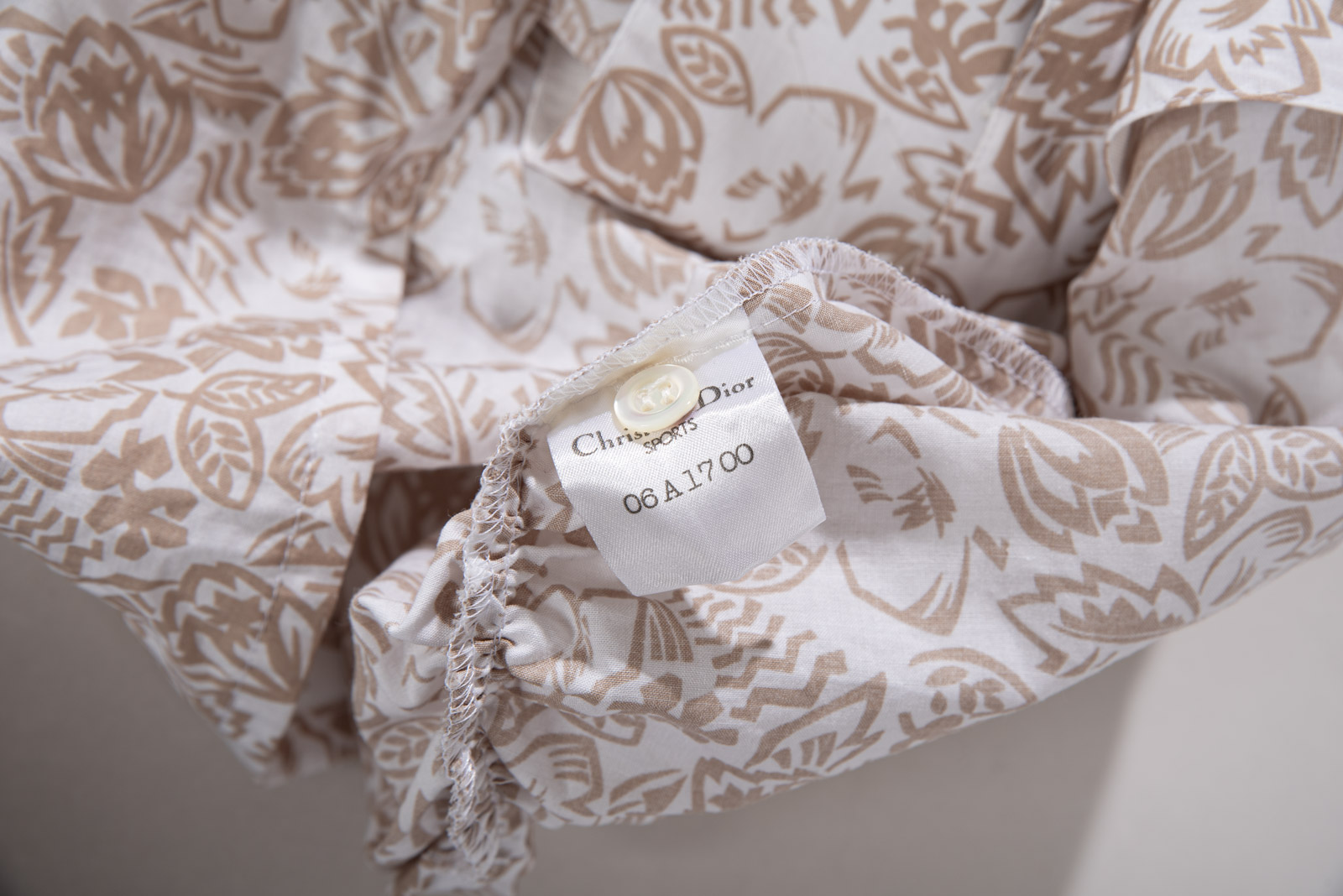 어깨에 가벼운 패드가 있고 전면 올드 디올 심볼이 눈에 띄며 허리 밑단에 약간의 셔링이 잡혀있어요.
