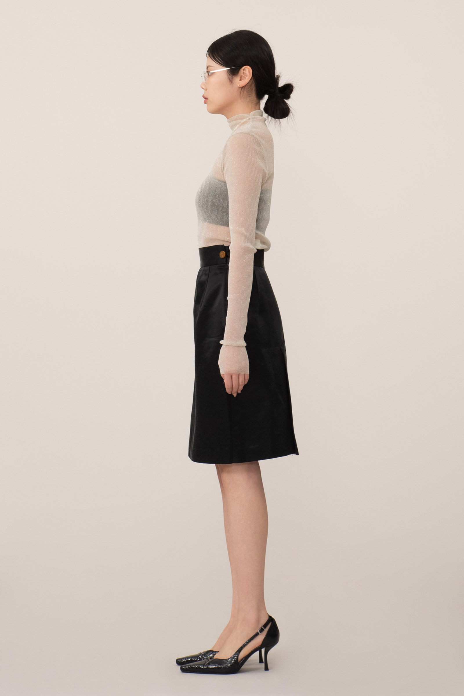 큰 디테일 없이 허리와 힙의 굴곡을 강조며 실루엣 자체로 포인트가 되어 굉장히 유려한 바디 라인 연출되네요.