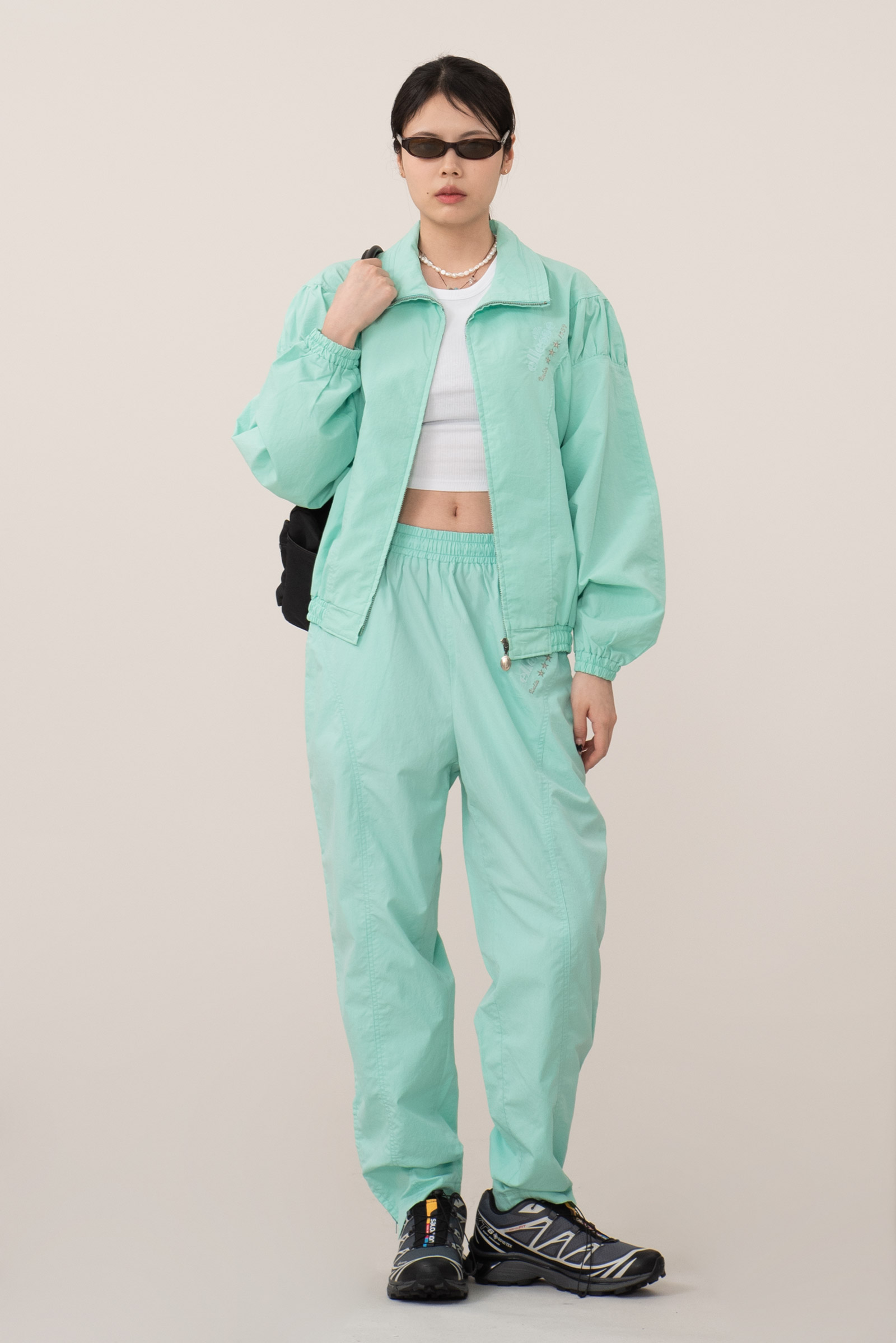 폴리와 코튼이 섞여 가볍고 편안한 착용감이 일품이며 눈에 띄는 민트 컬러로 굉장히 포인트 되는 제품이랍니다.