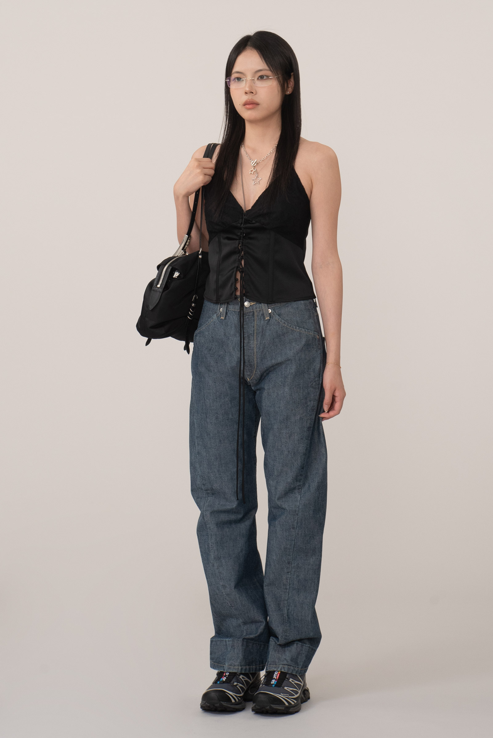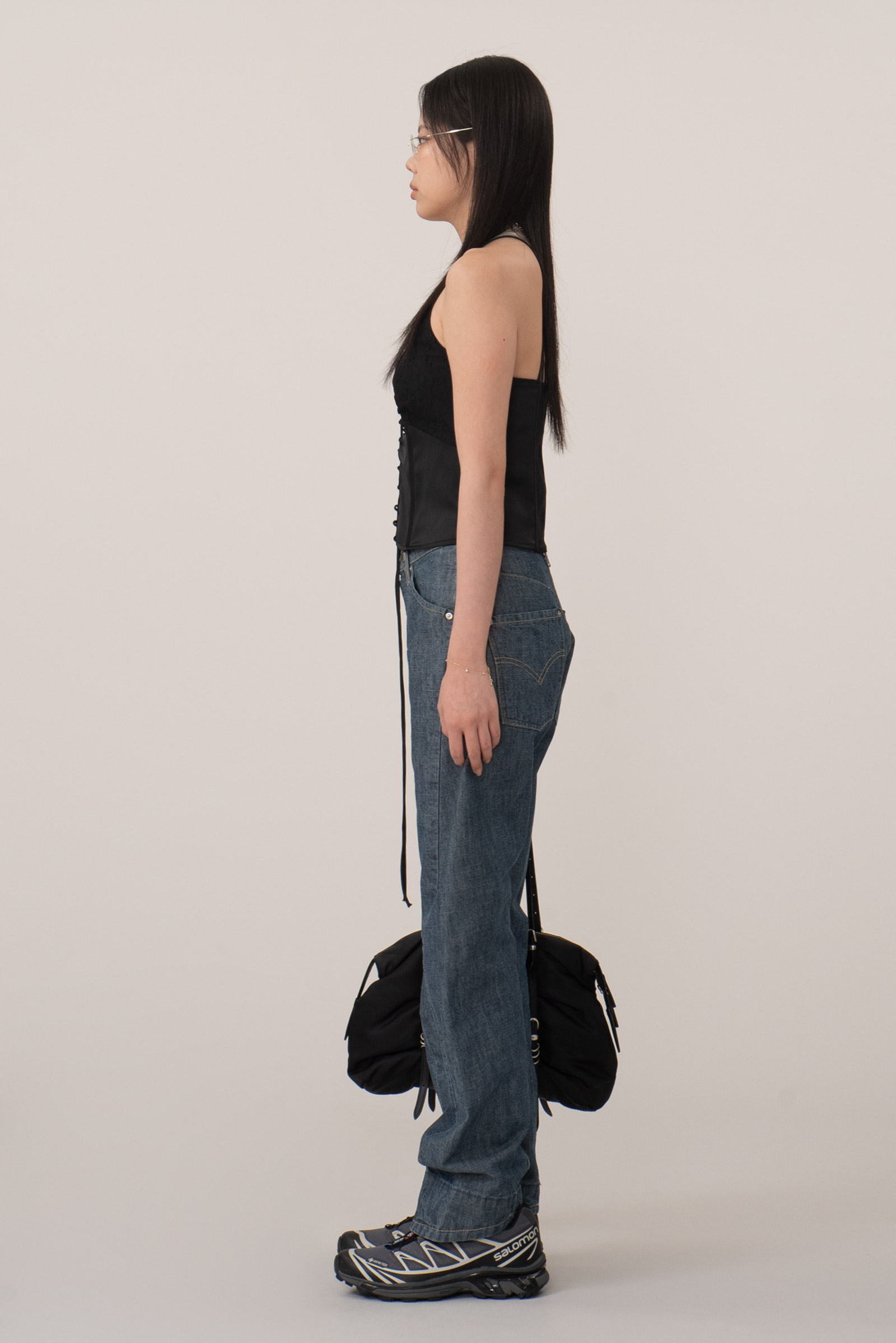 힙이 일자로 주룩 떨어지는 실루엣이라 여성분들은 평소에 착용하시는 사이즈 보다 약간 크게 입으셔야 뒤태가 이뻐요.