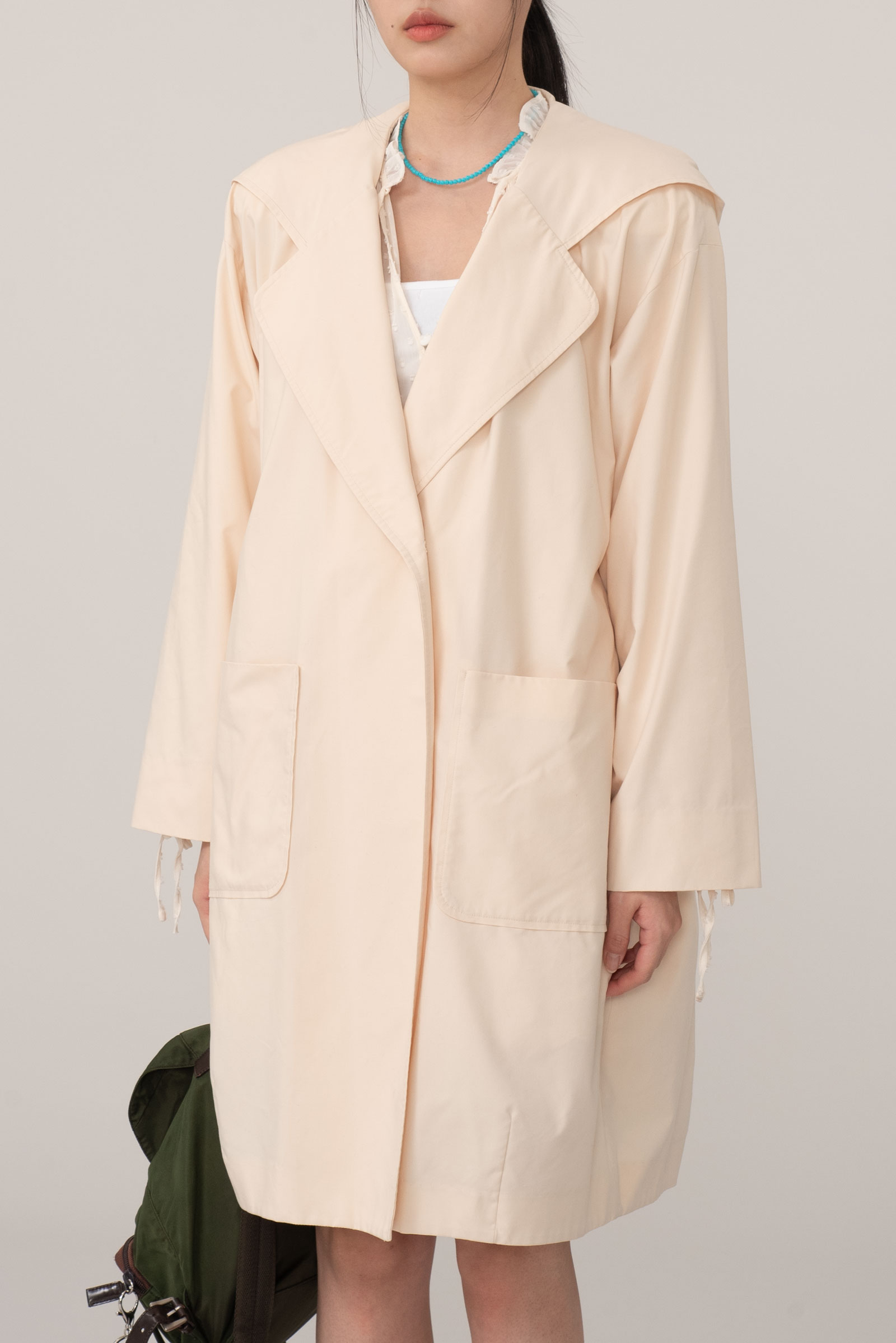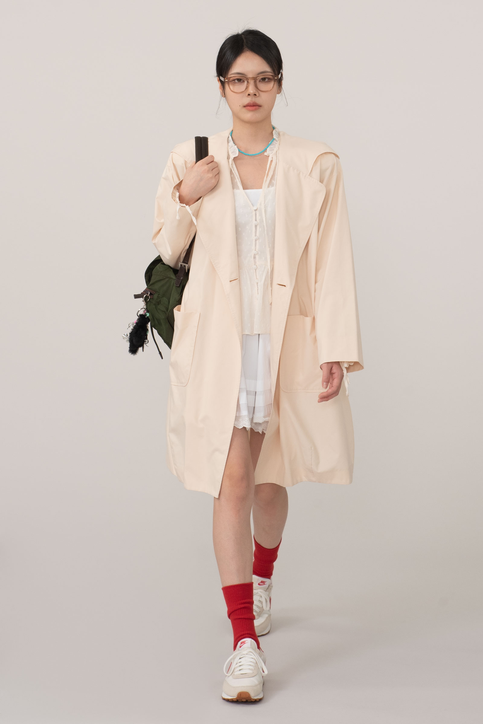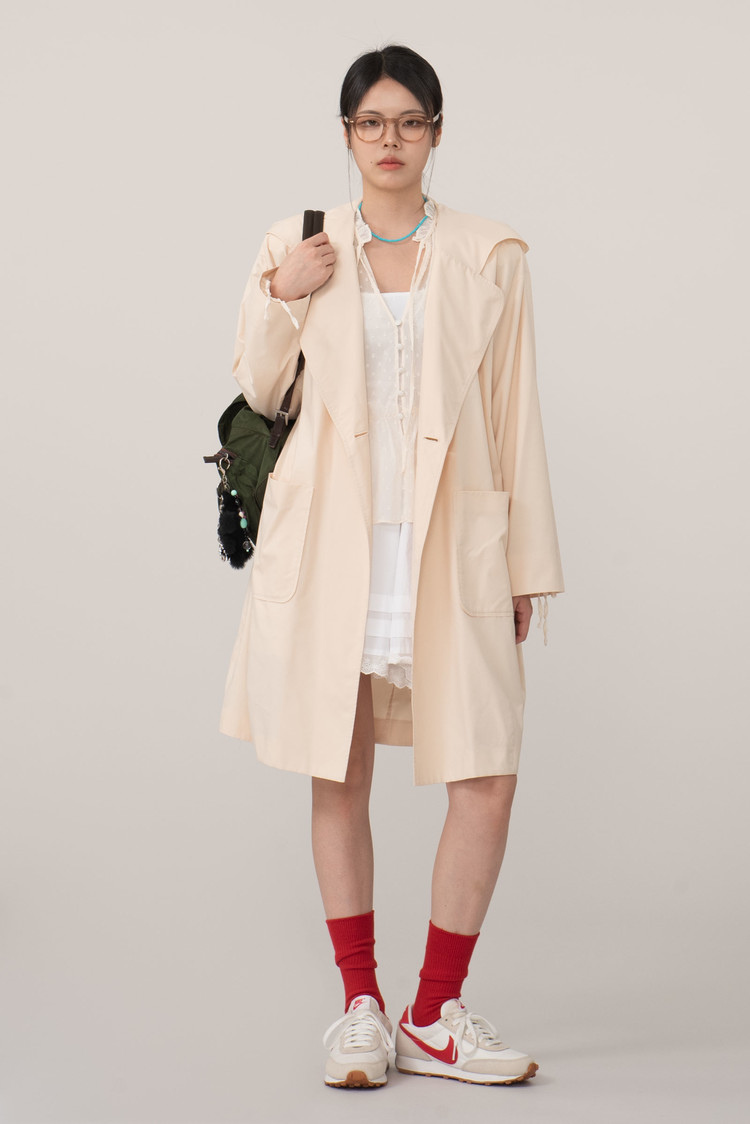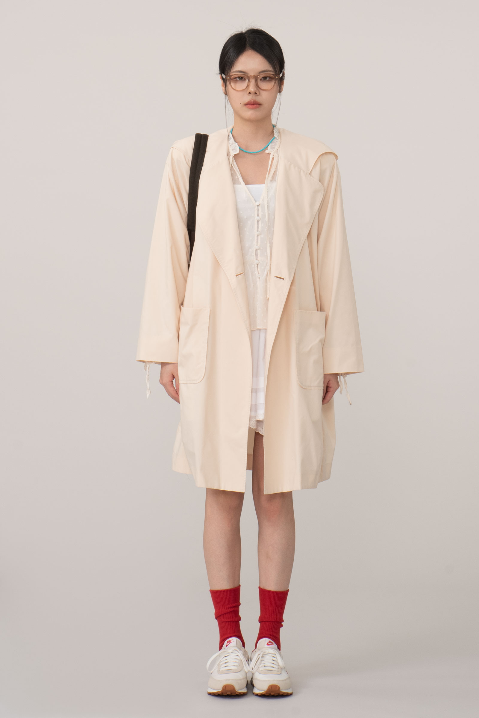 넉넉한 품에 편안하게 걸치기 좋은 얇고 가벼운 소재, 커다란 후드와 넓은 카라가 이어져 더블 트렌치 느낌이 나고요.