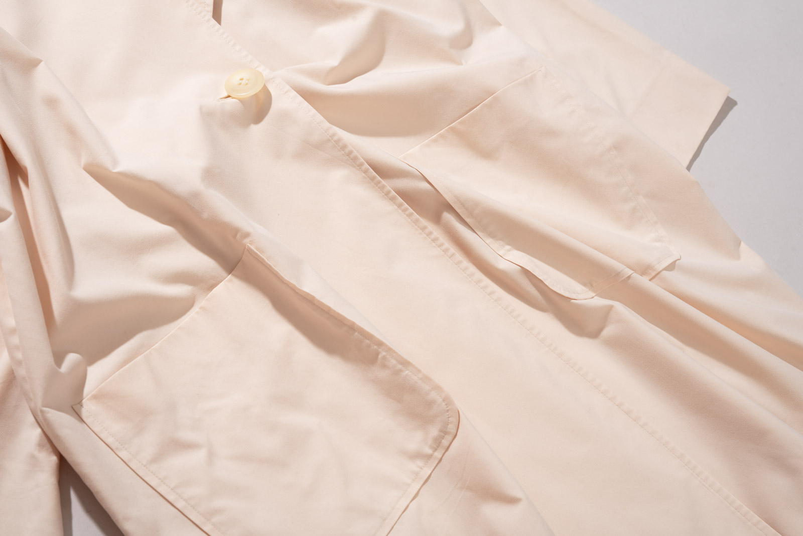 코튼에 폴리가 섞여 보들보들한 텍스쳐, 따뜻한 아이보리 컬러에 간절기 착용되기 좋은 아주 얇은 형태의 코트인데요.
