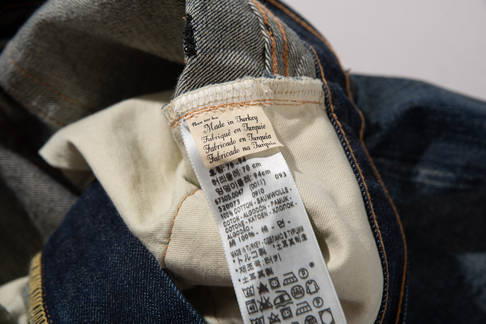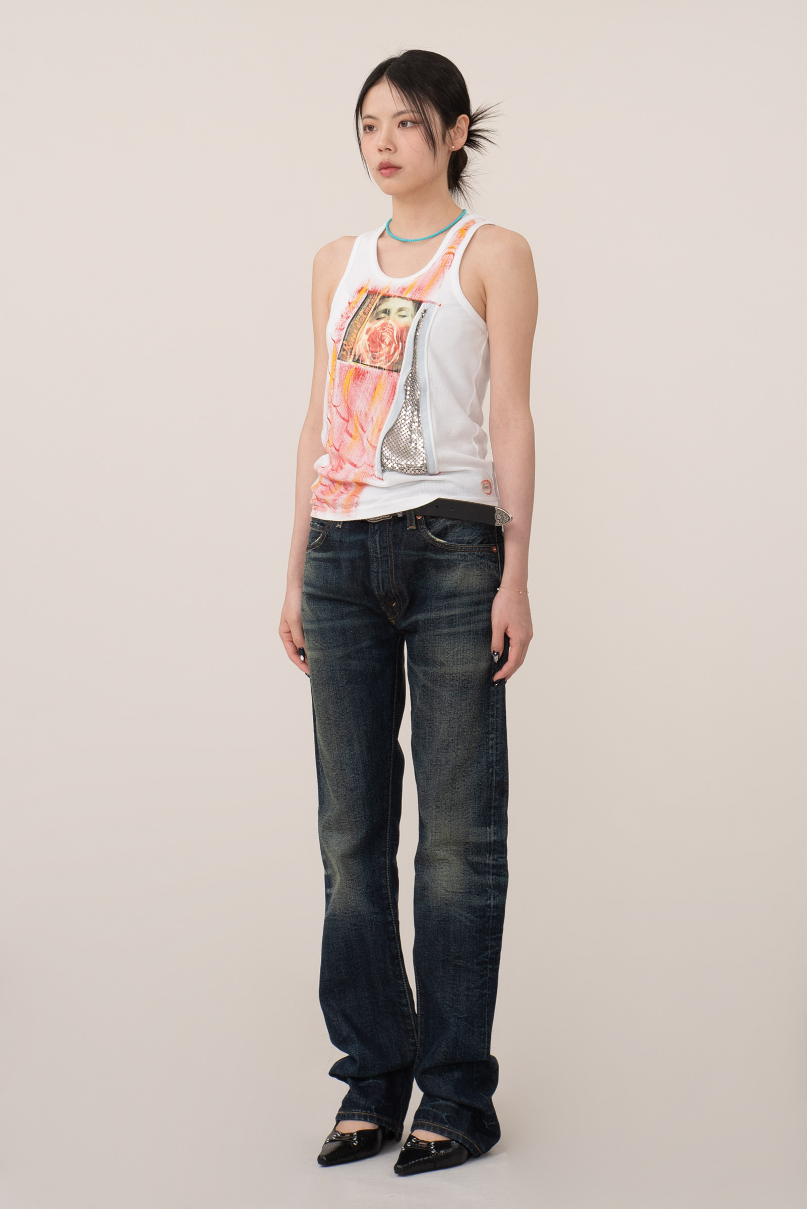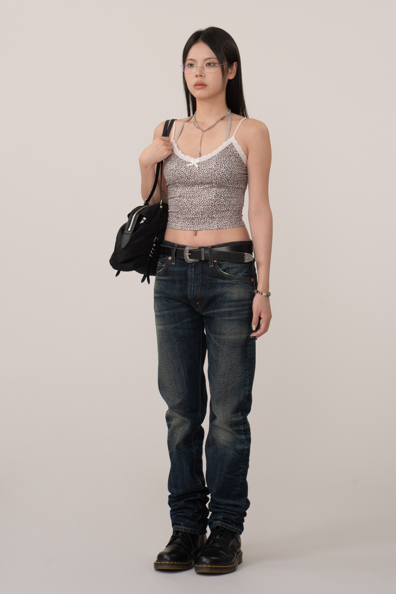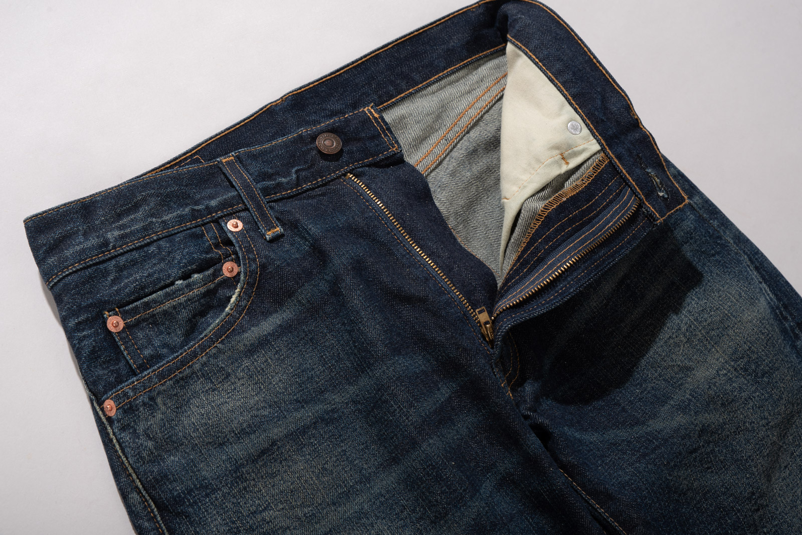 진한 베이스에 자연스러운 주름 워싱과 함께 페이딩이 인상적이며 밑단 체인 스티치, 레드 셀비지 실 사양 등 디테일에서 다양한 재미를 느끼실 수 있는 모델이랍니다.