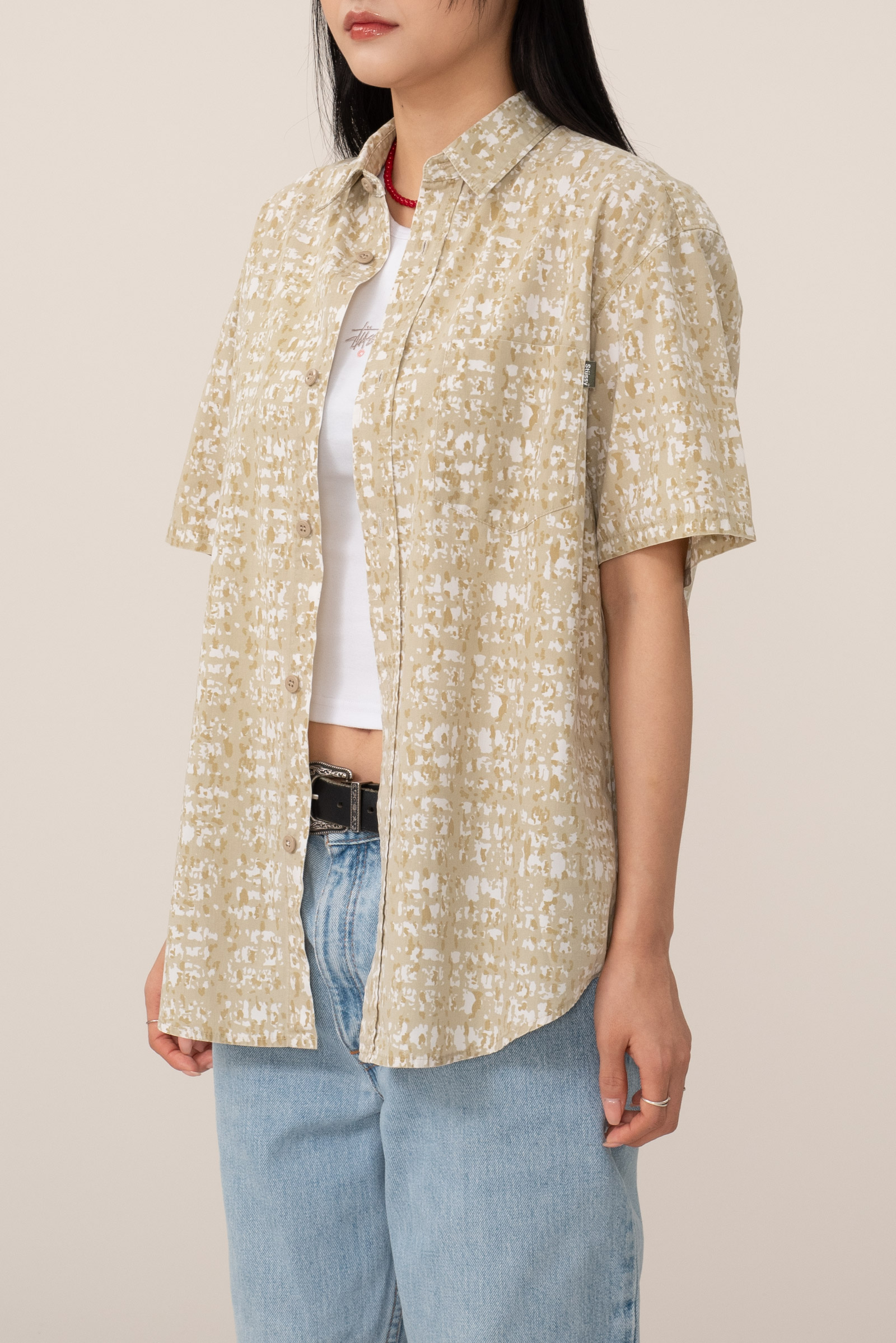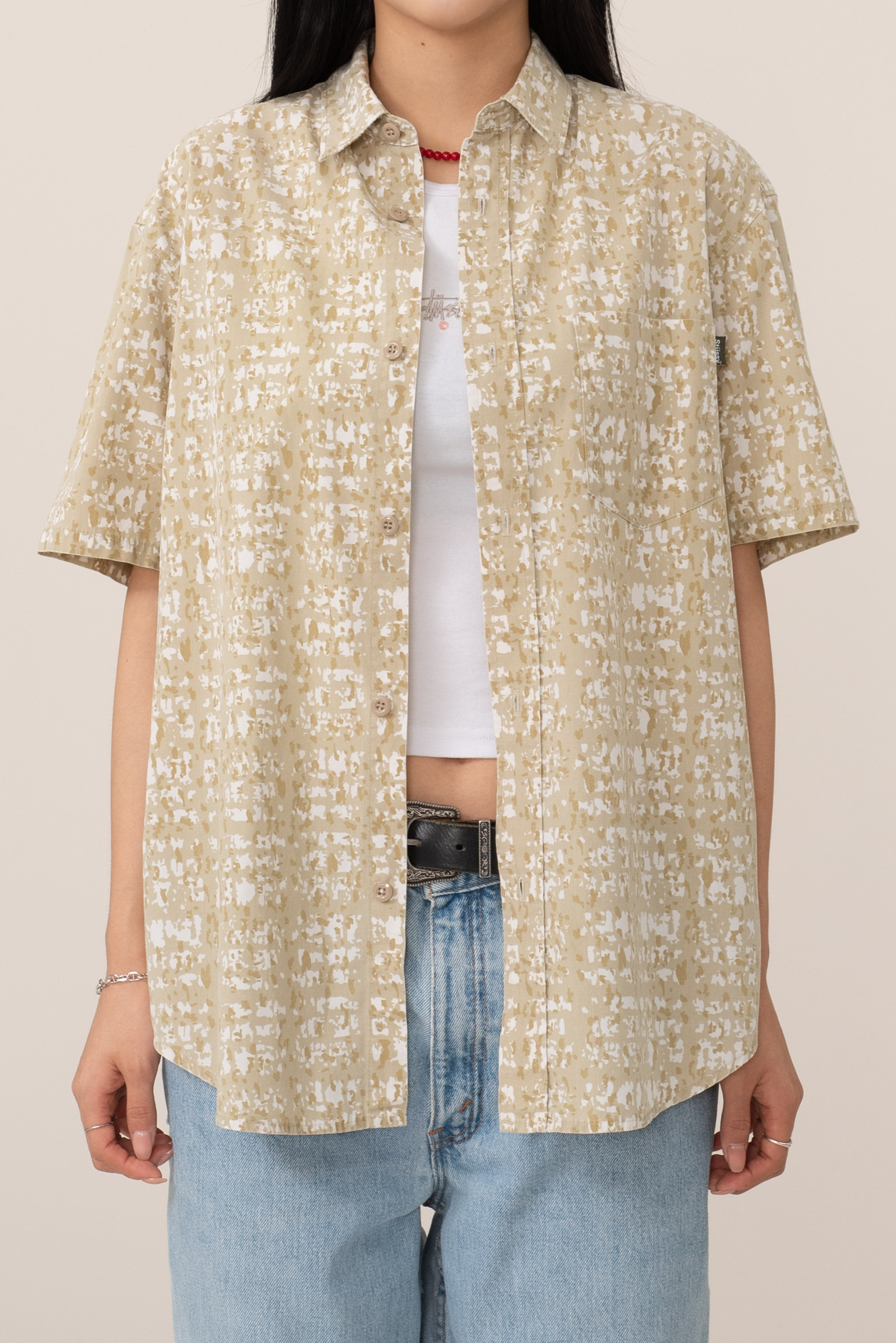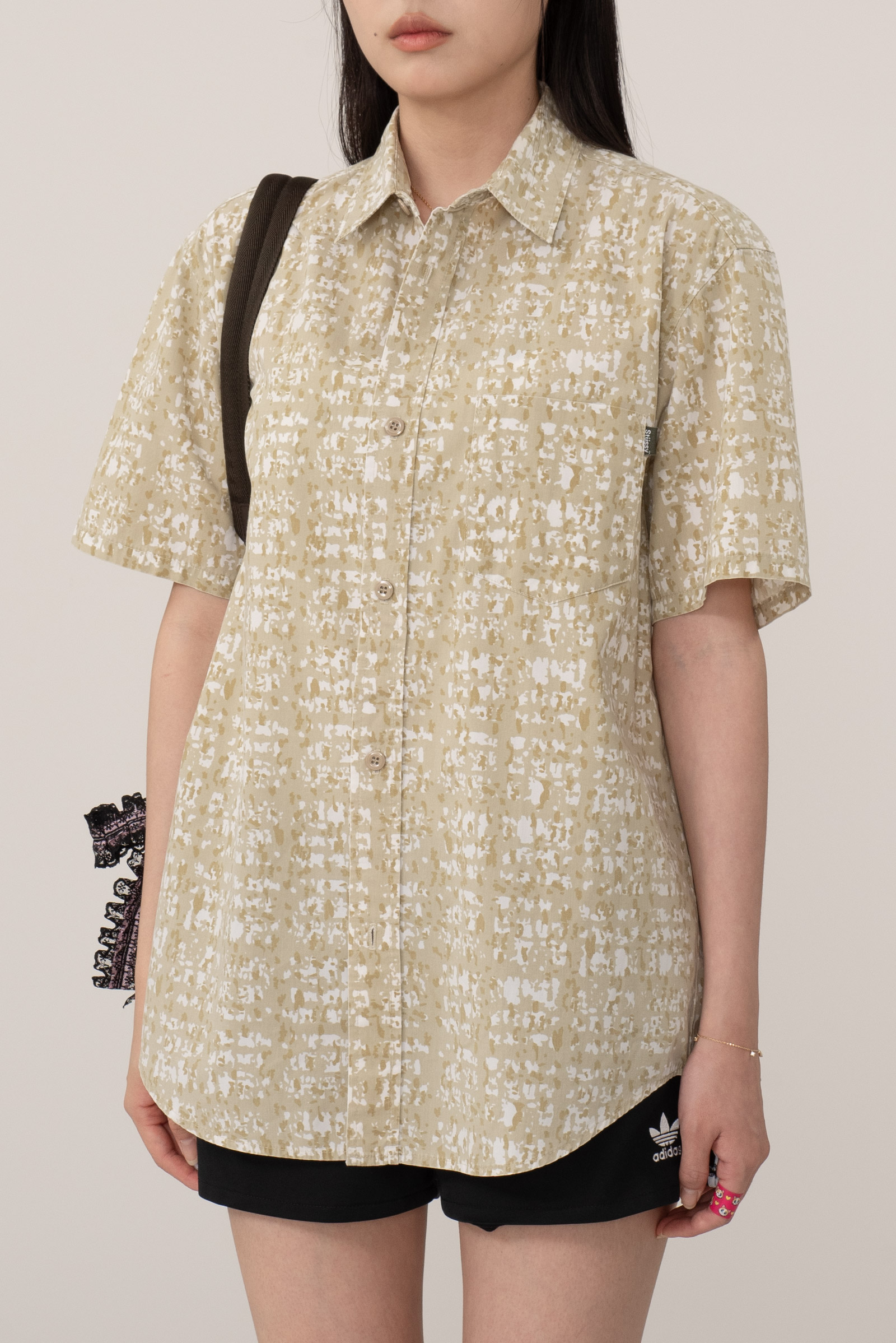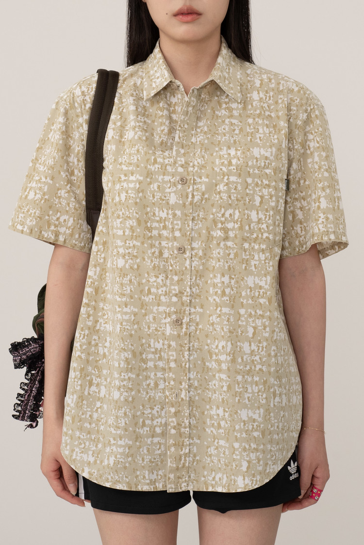 작은 카모 패턴에 부드러운 베이지 컬러, 투박하지만 기본에 충실한 피스로 포켓 옆 스투시 탭 외 큰 디테일은 없네요.