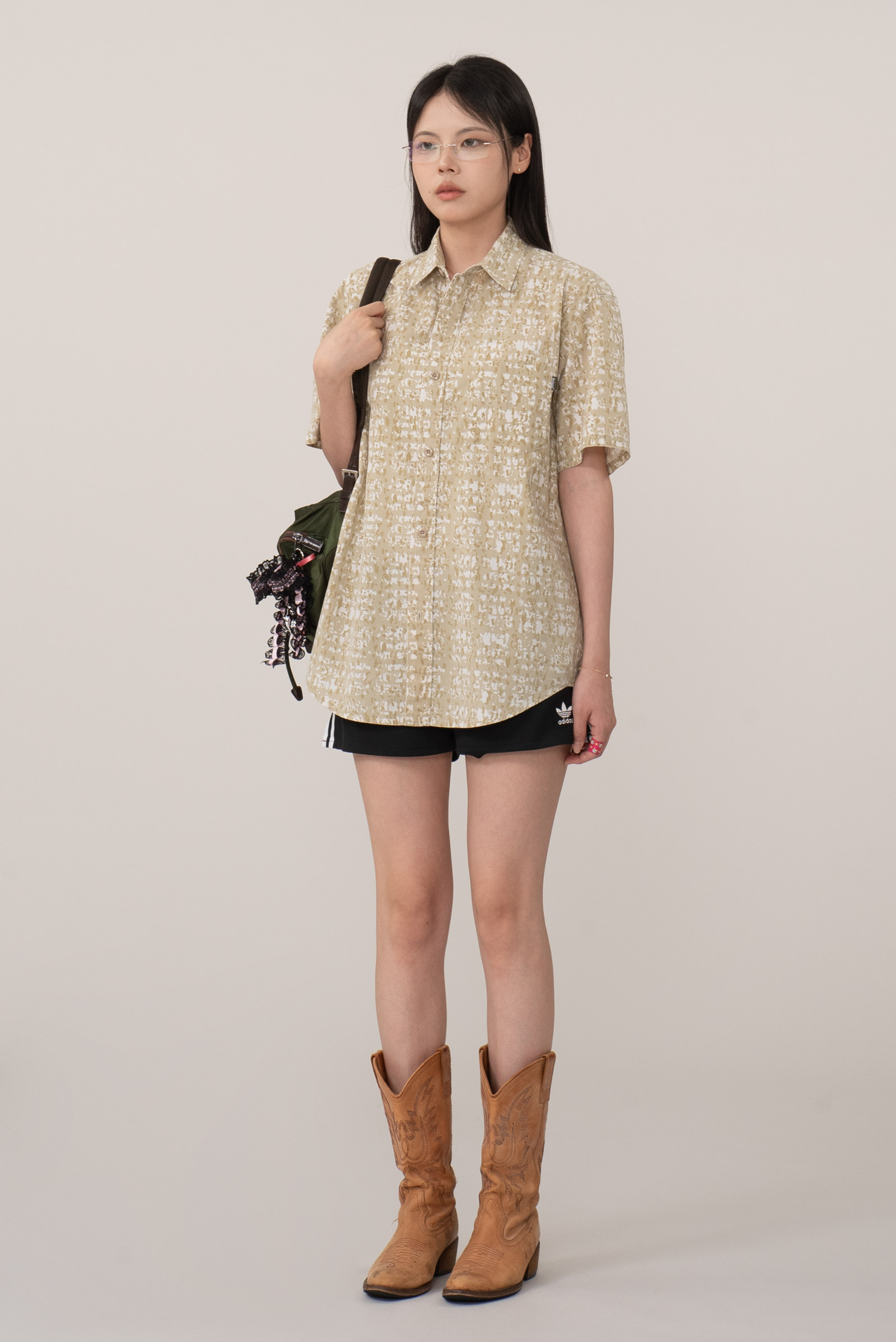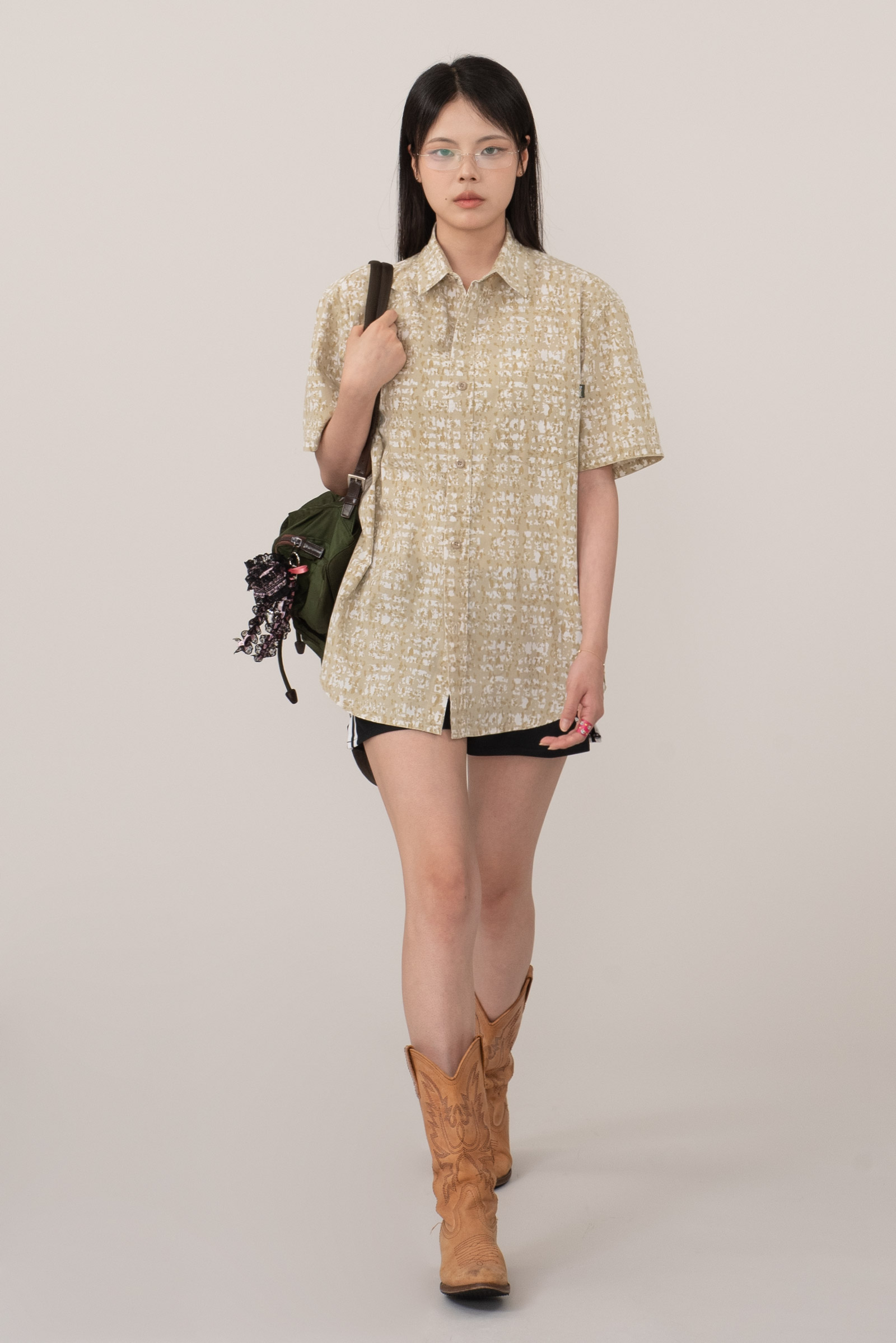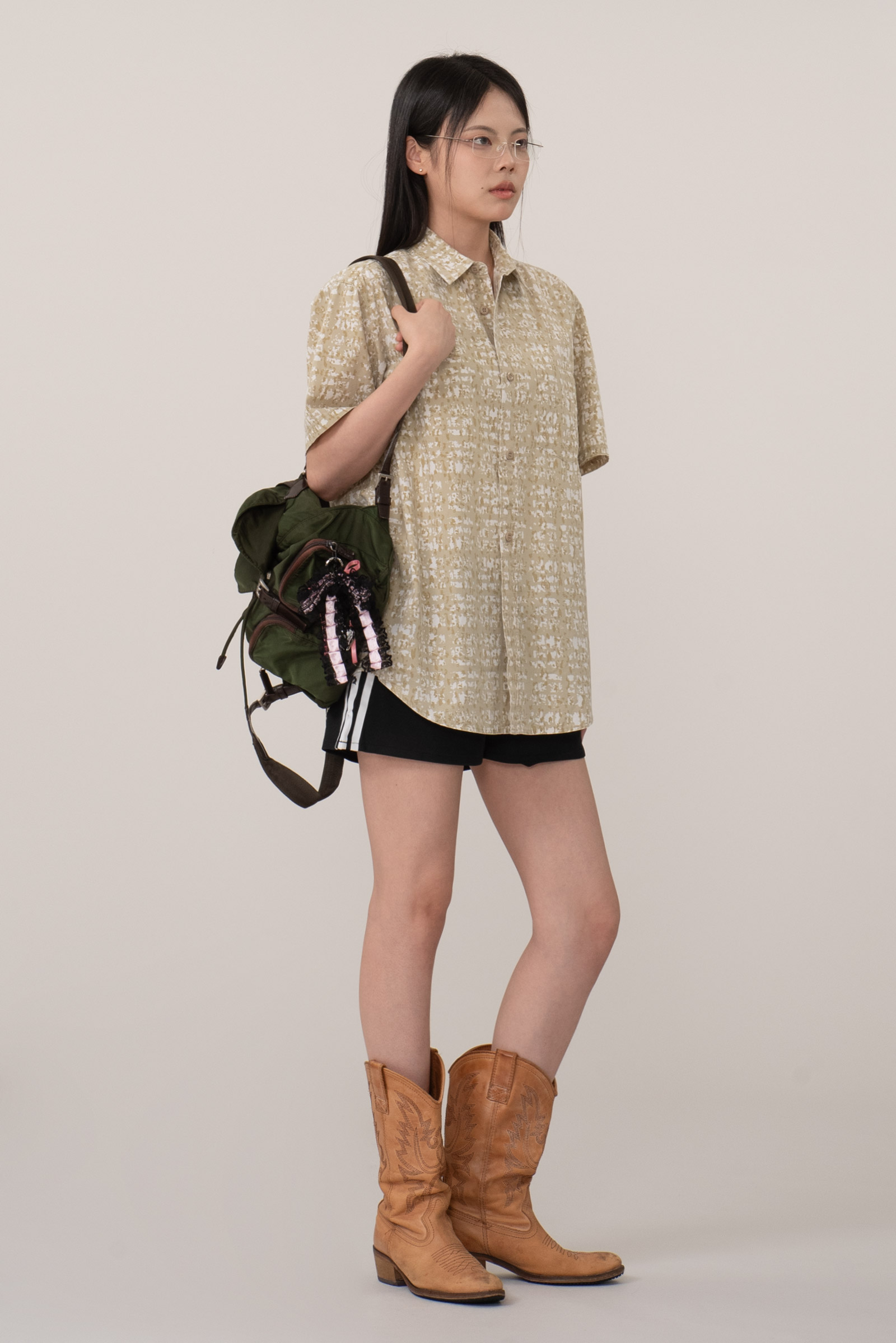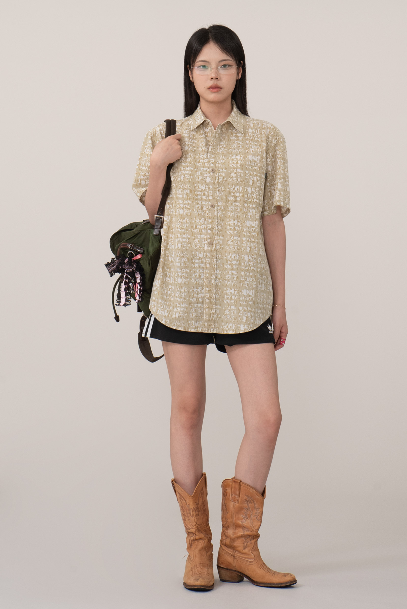 작은 카모 패턴에 부드러운 베이지 컬러, 투박하지만 기본에 충실한 피스로 포켓 옆 스투시 탭 외 큰 디테일은 없네요.