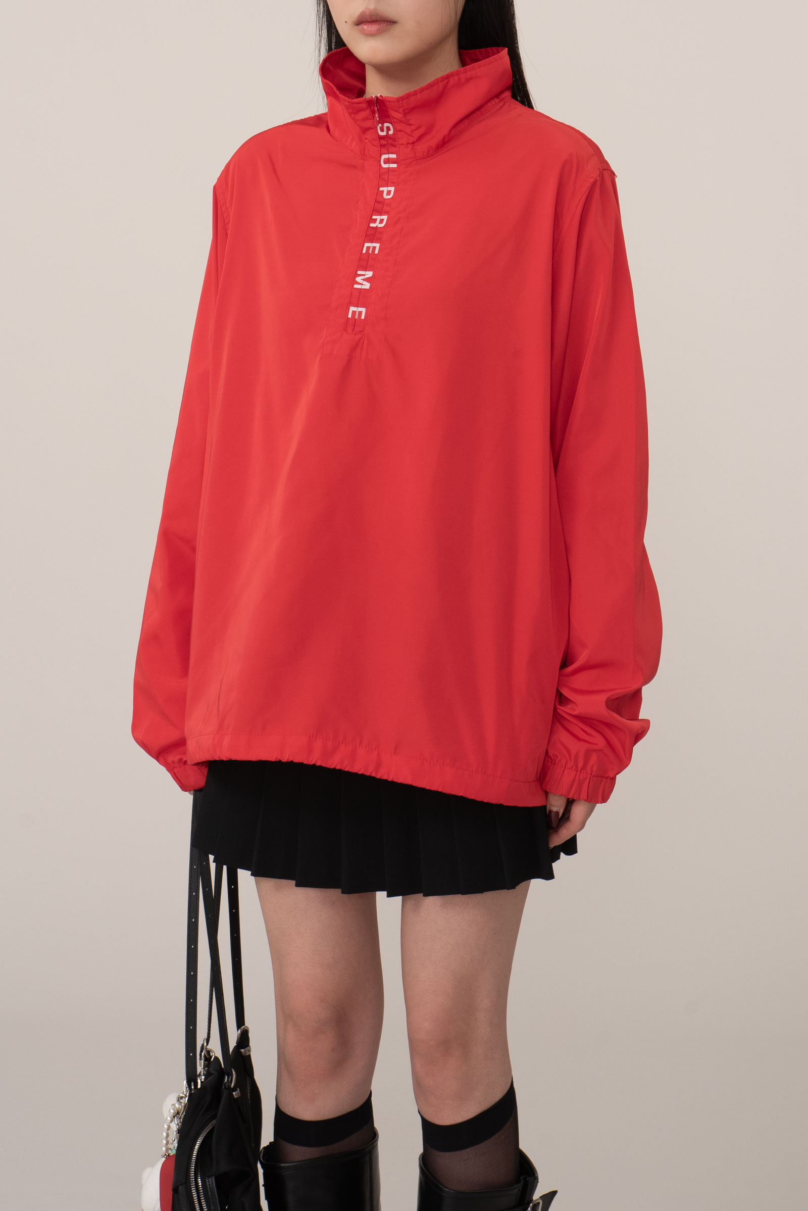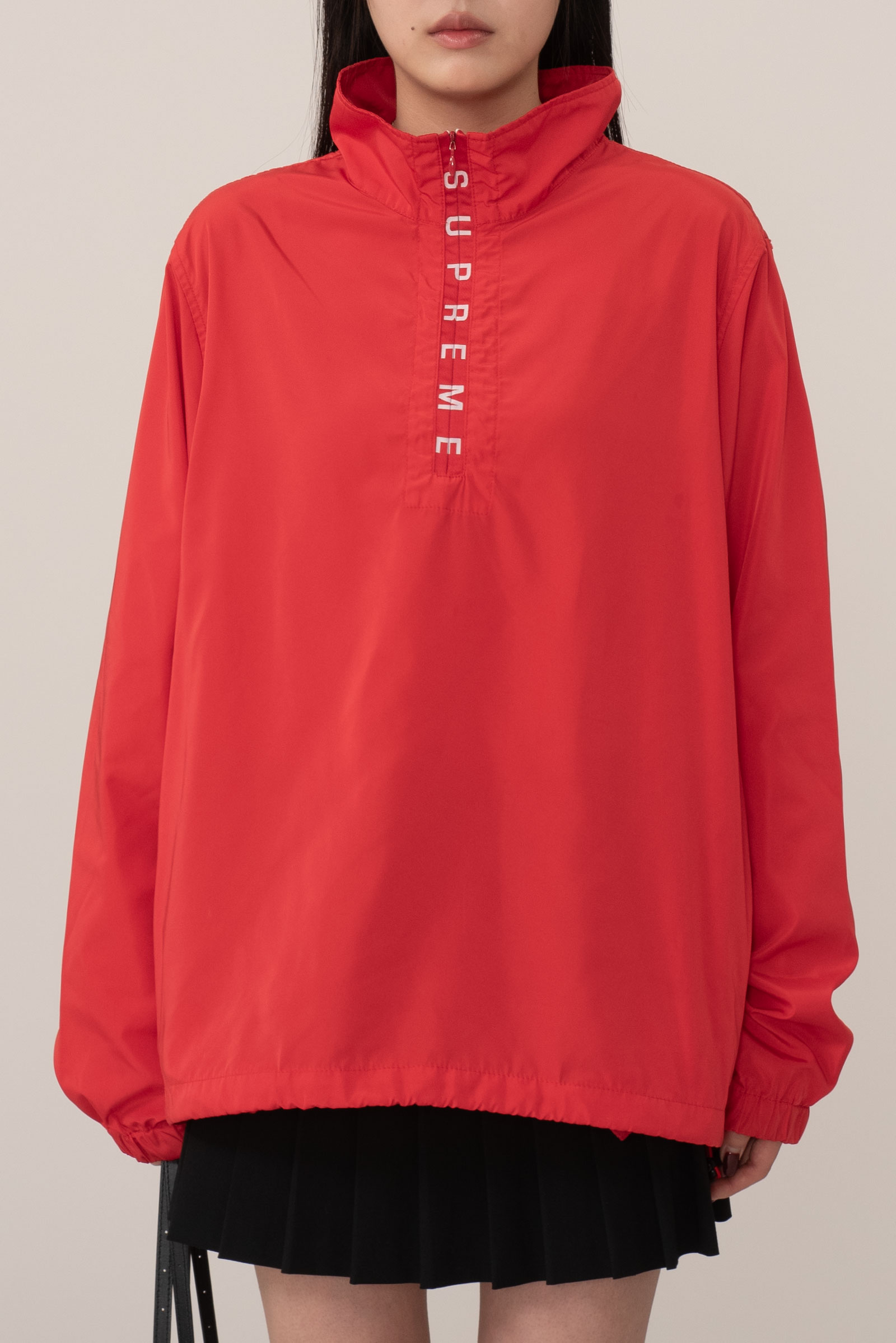 오늘 소개해 드리는 제품은 지퍼에 로고 플레이가 들어간 풀오버 윈드브레이커에요.