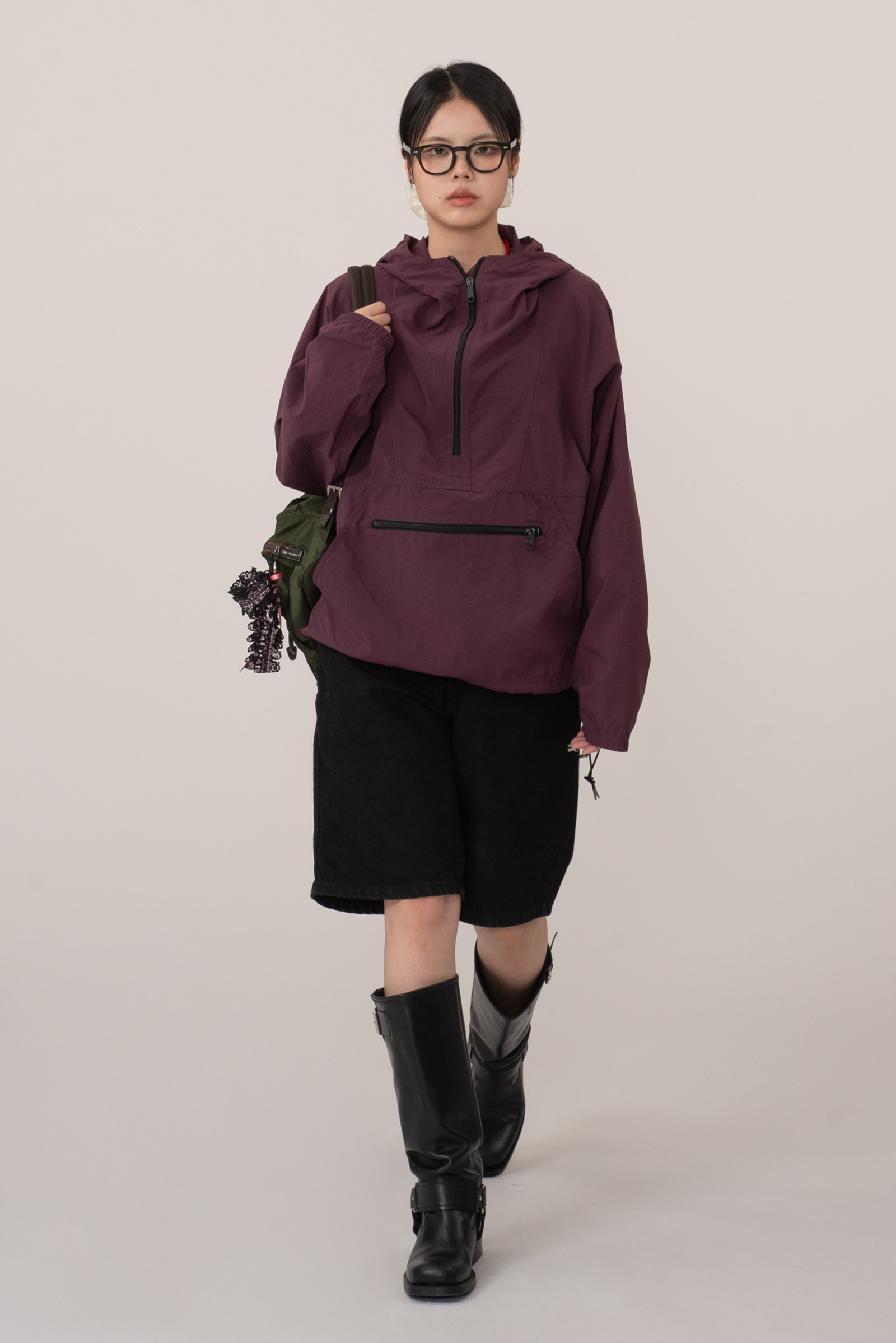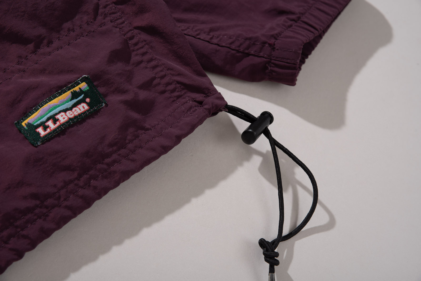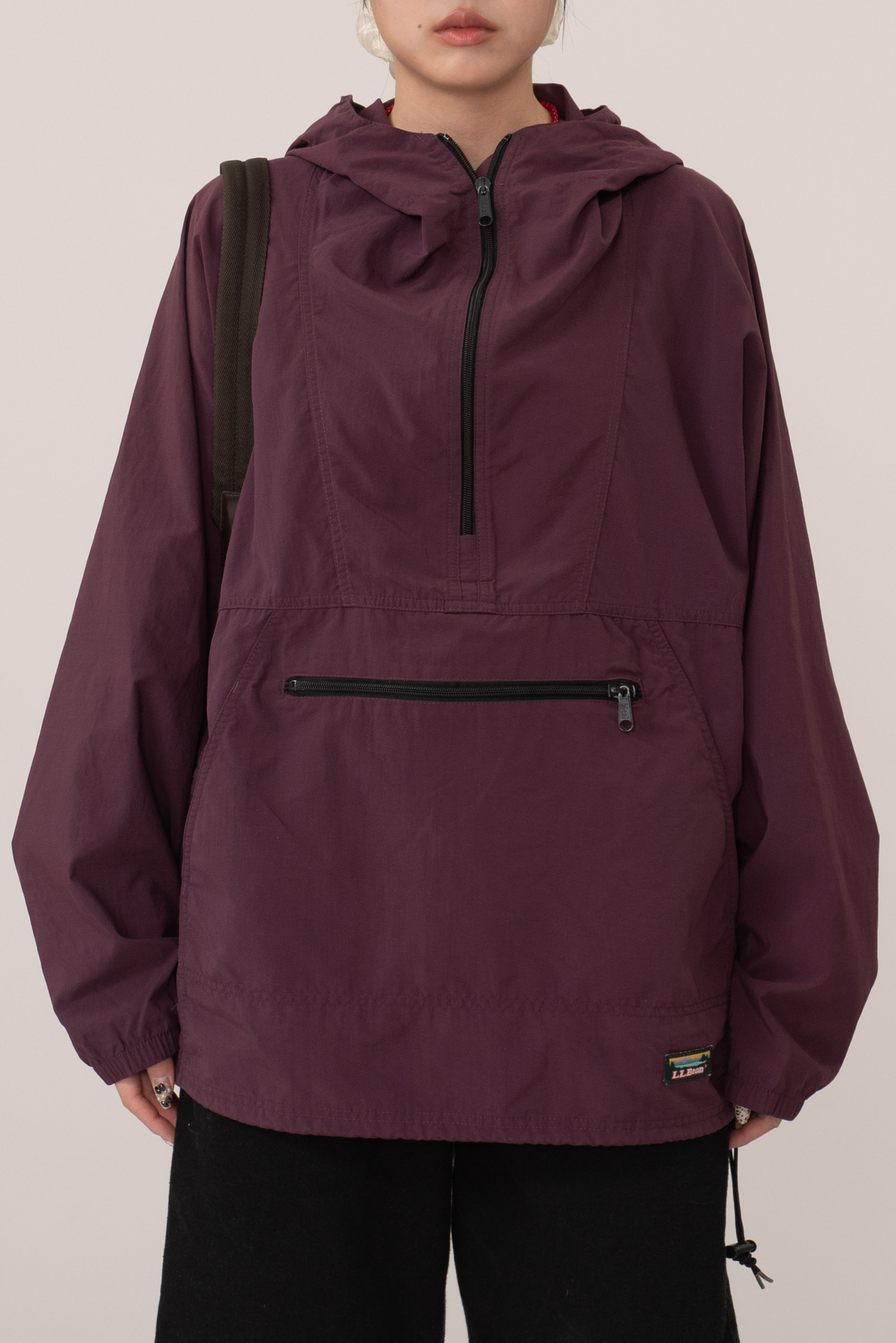 차분한 컬러에 패커블 복부 주머니, 하단의 엘엘빈 패치와 스트링이 돋보이는 간결한 아이템이네요.