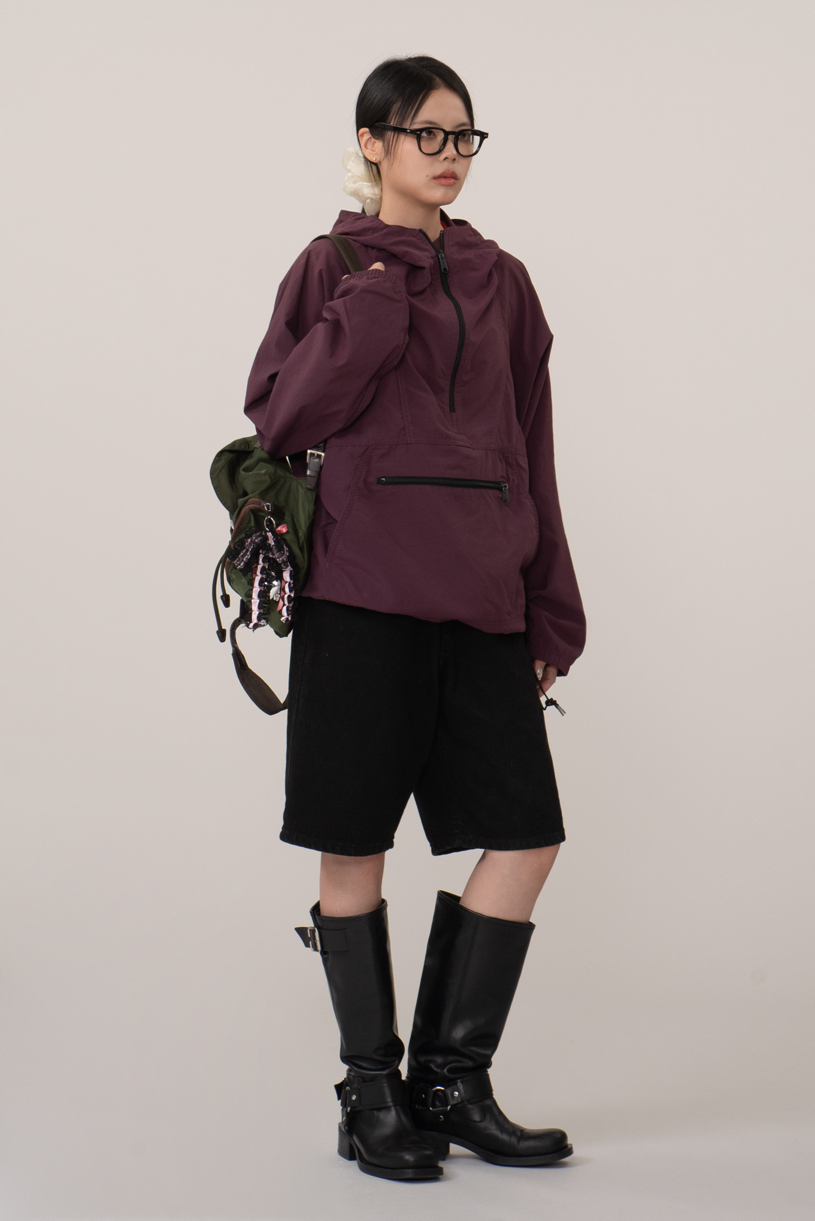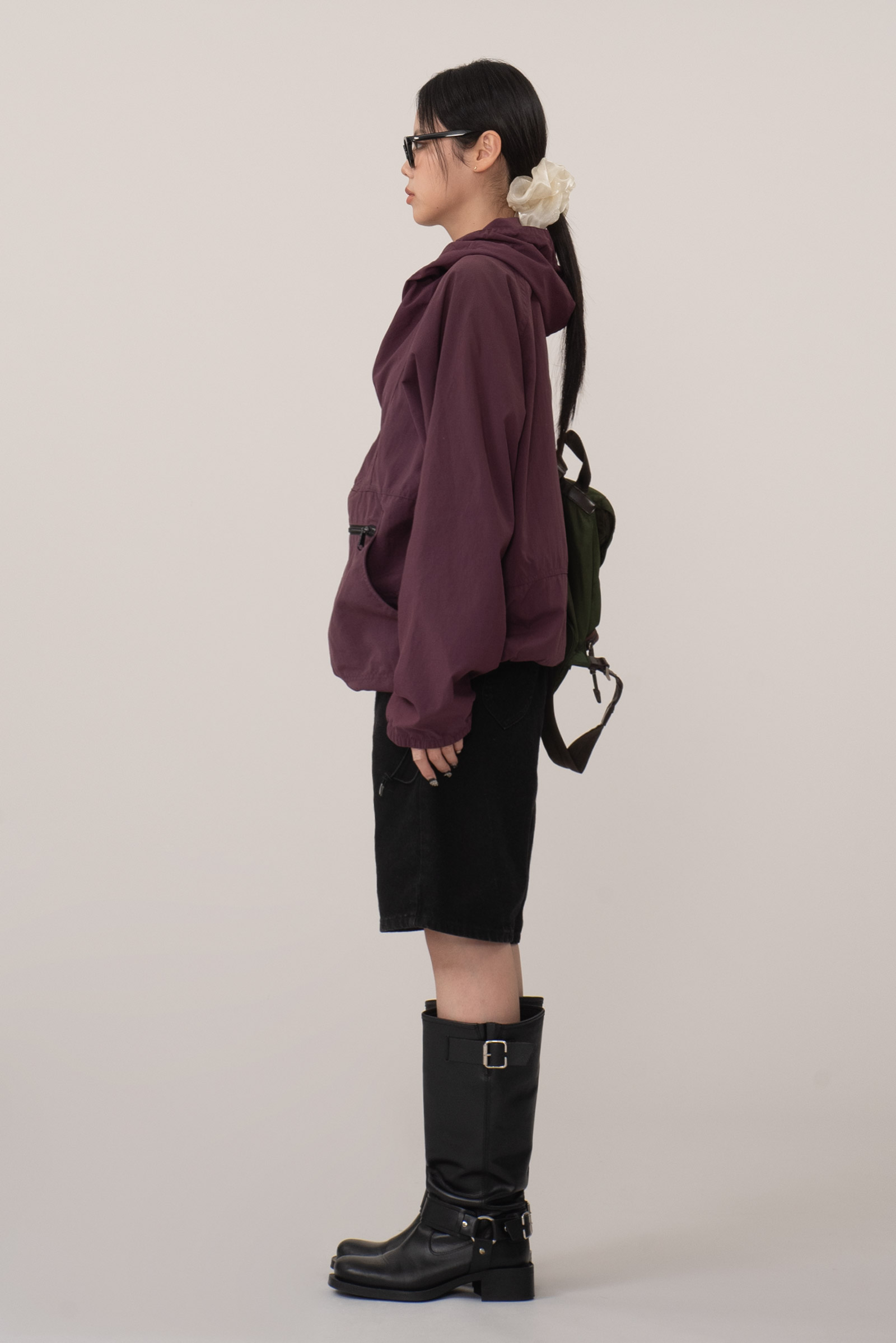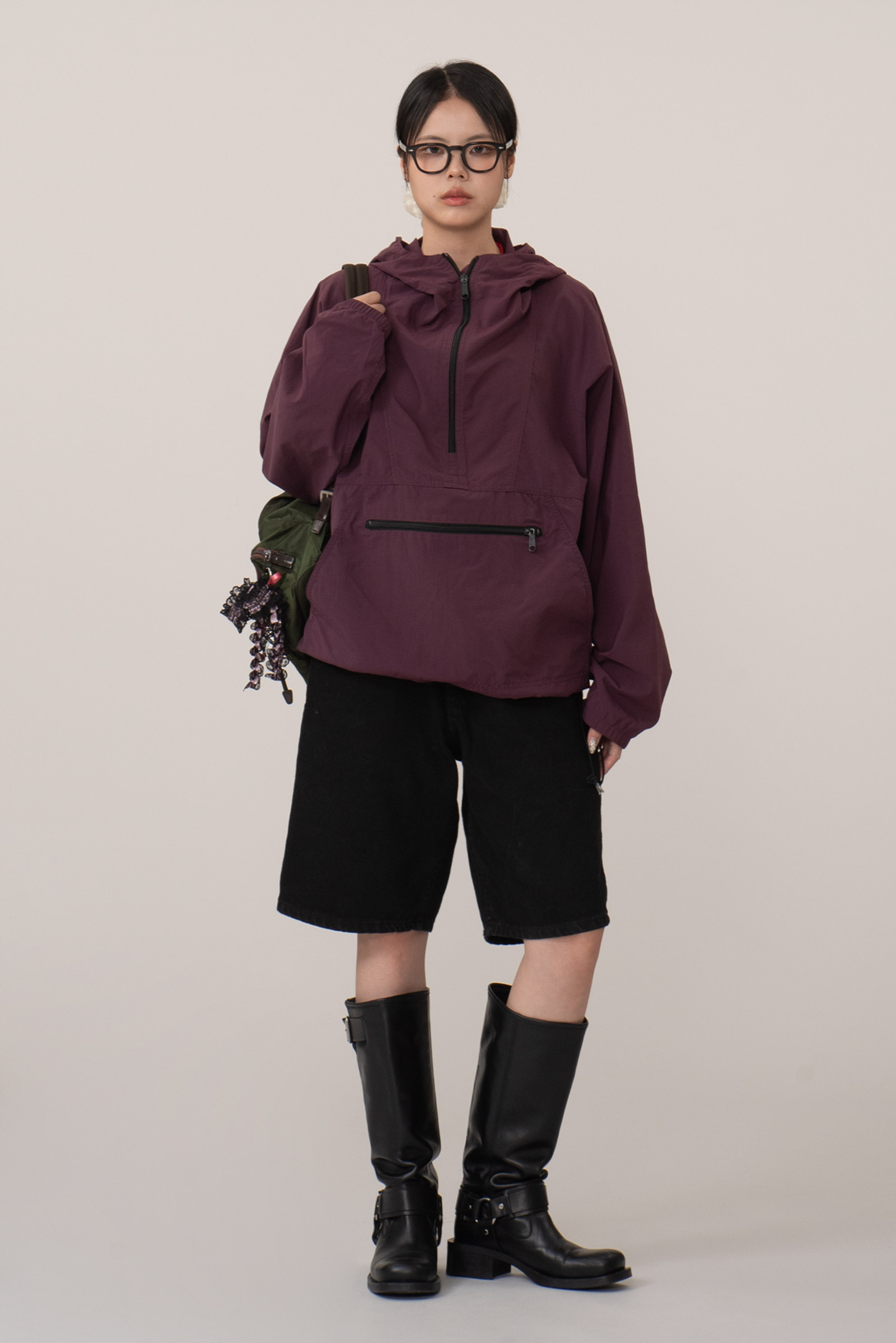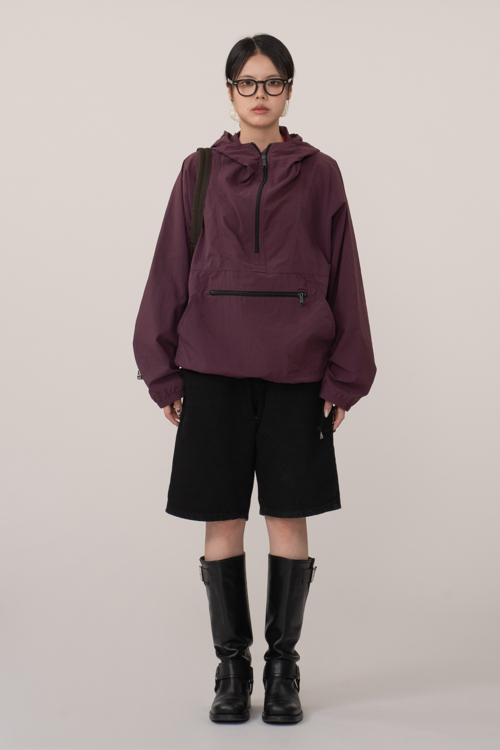 차분한 컬러에 패커블 복부 주머니, 하단의 엘엘빈 패치와 스트링이 돋보이는 간결한 아이템이네요.